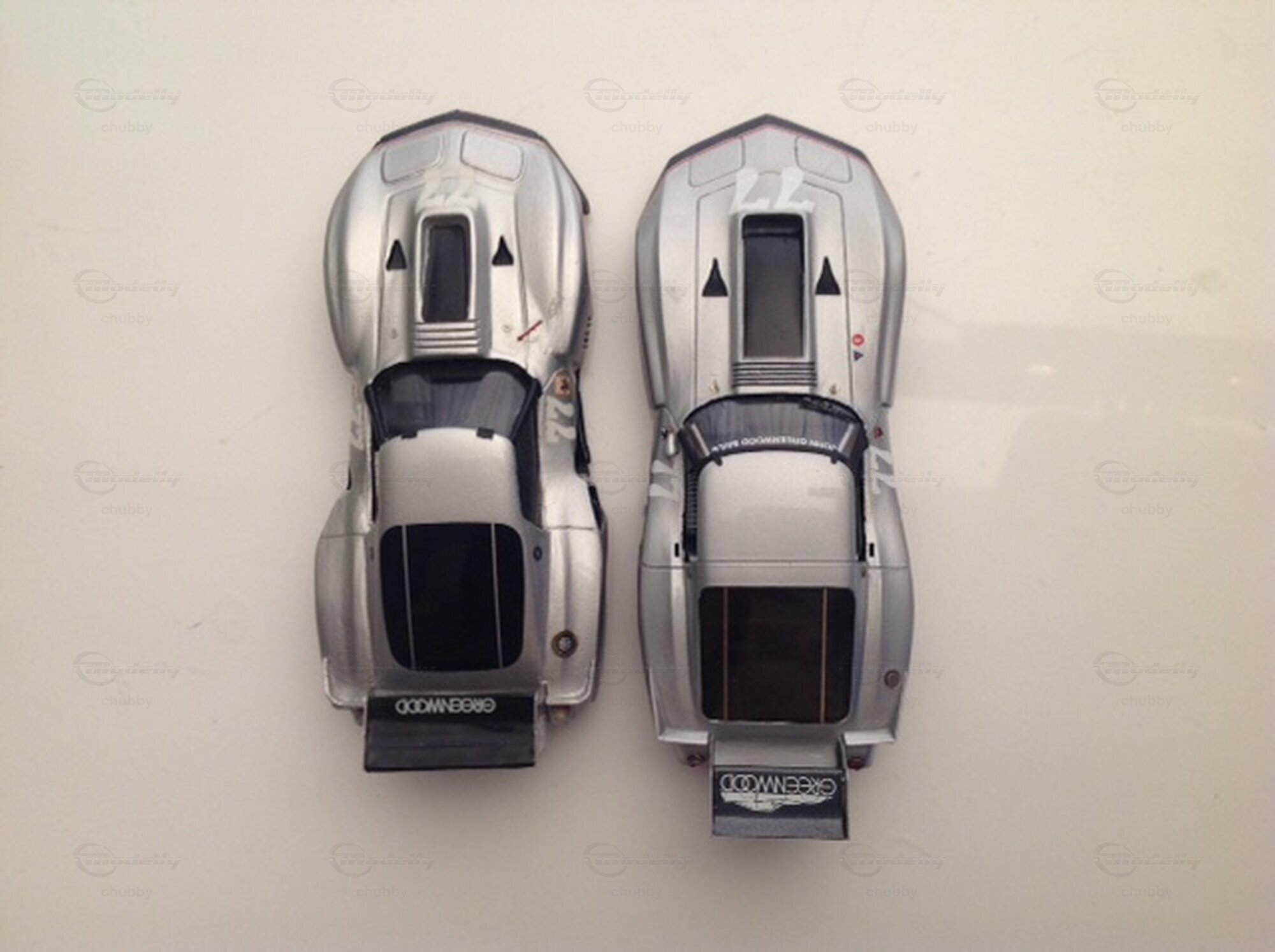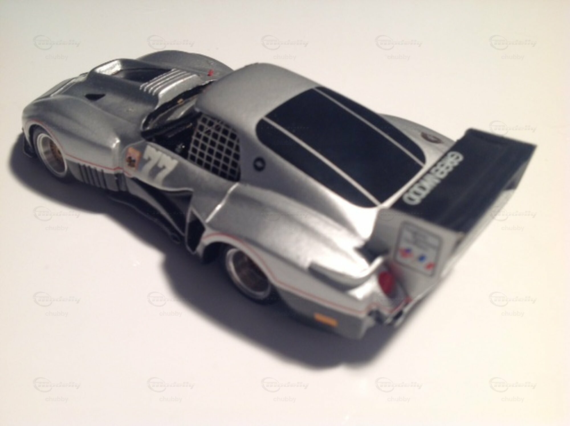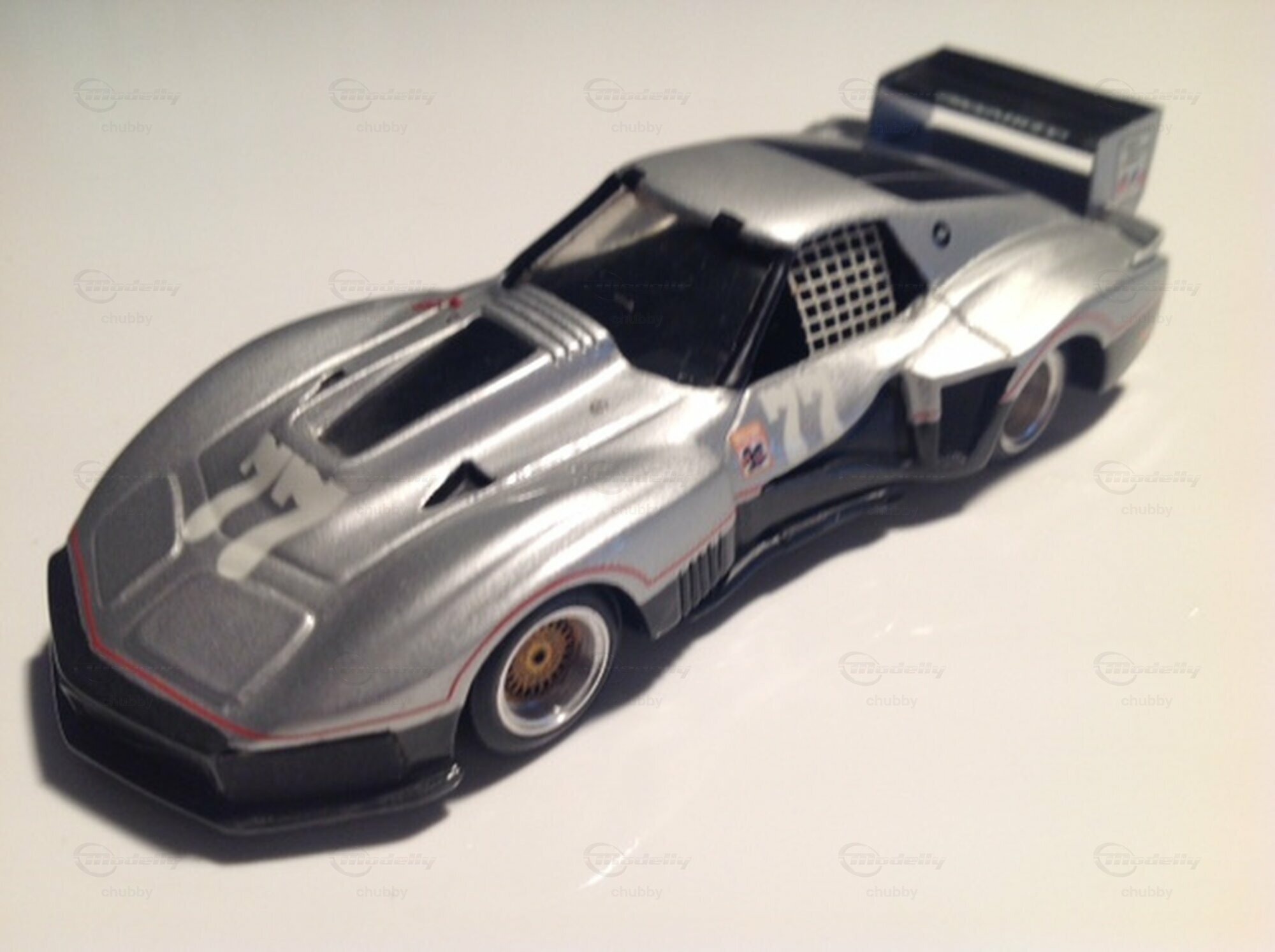 Auch John Greenwood selbst fuhr natürlich eine "tubular frame"-Vette, und zwar in Grau-Schwarz und mit der Nummer 77, so wie 1977 in Watkins Glen. Dieses Modell von Arena ist im Vergleich zu den anderen dieses Typus zu kurz geraten. Bei den neuen grau-schwarzen Varianten, welche neulich hinzukamen, wurde dieser Fehler korrigiert (s. drittes Bild).
