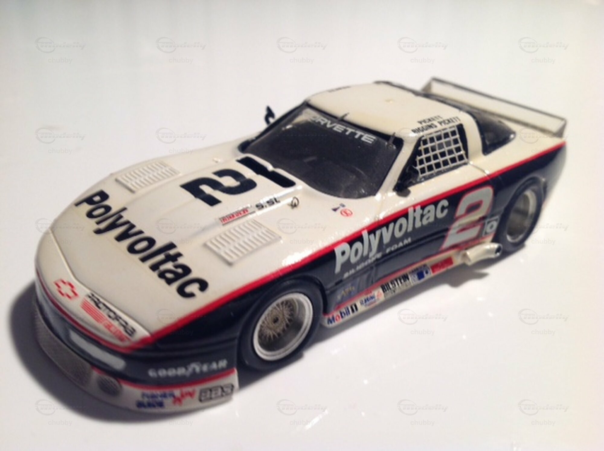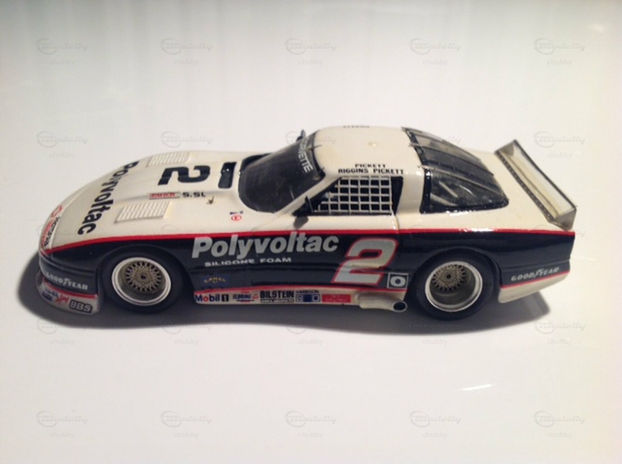 Wuchtig kommen die drei Modelle von stark verbreiterten C4 Renncoupés daher, welche Teil meiner Sammlung sind. Das weiss-schwarze Auto mit der Nummer 2 wurde 1988 vom Team Pickett/Riggins in Daytona und neben dem Schwesterauto mit der Nummer 5 auch bei diversen Trans Am Rennen gefahren.