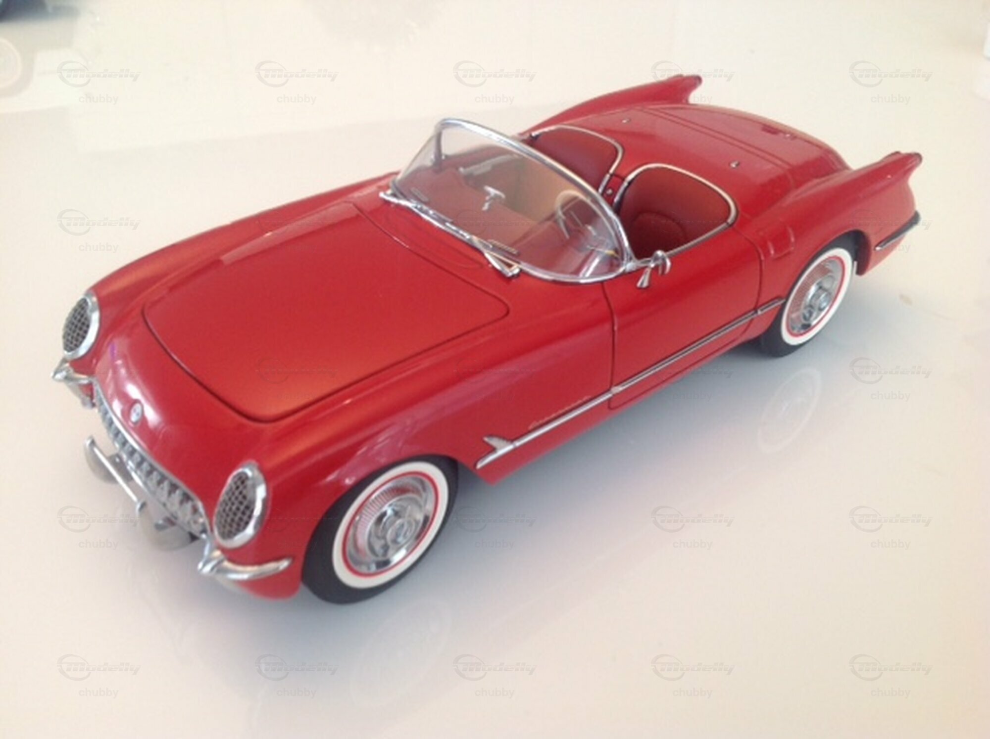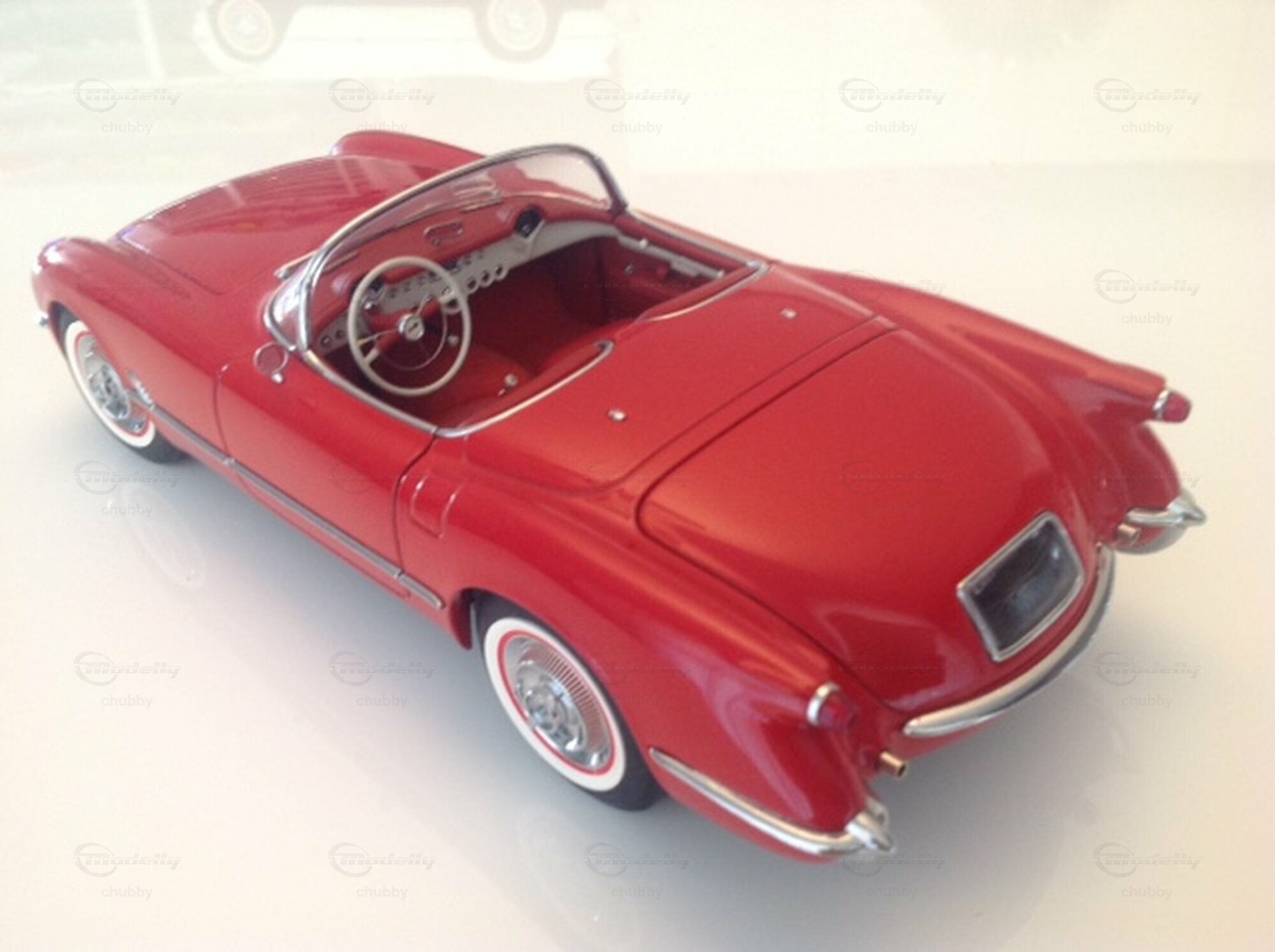 Hier das Modell von AUTOart eines roten Cabriolets des Jahres 1954, immer noch mit dem Blue-Flame-Motor.