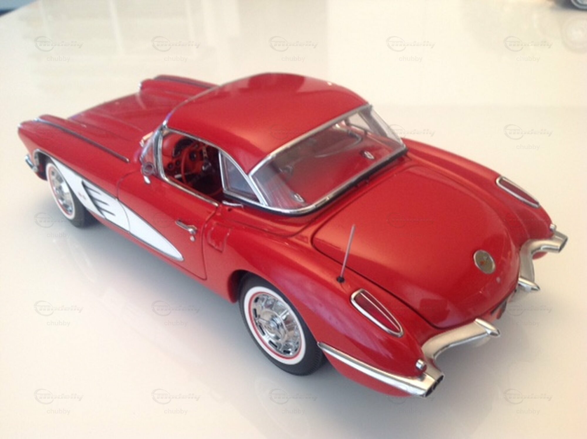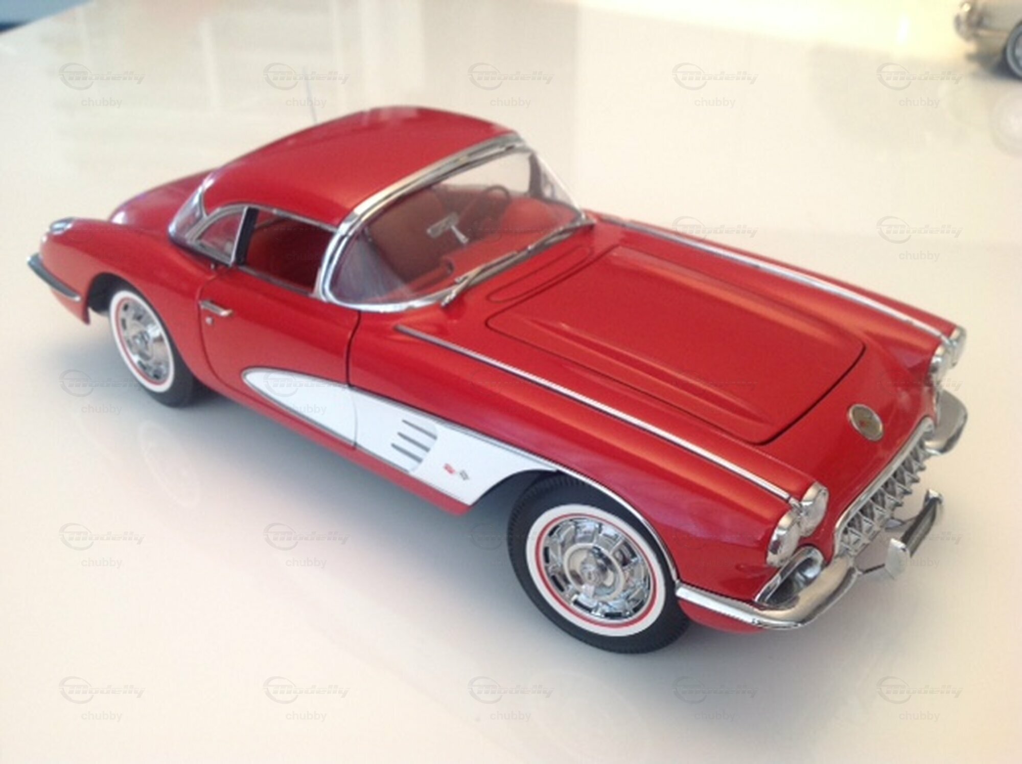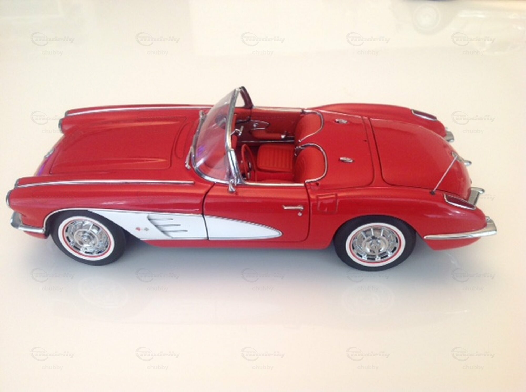 Dasselbe C1 1959er Cabrio von AUTOart in rot-weisser Lackierung macht deutlich mehr her als als das schwarz-weisse. Die Liebhaber-Preise der AUTOart-Modelle sind übrigens bei den Jahrgängen 1958 bis 1962 deutlich mehr gestiegen als bei jenen der Jahre 1953 und 1954.
