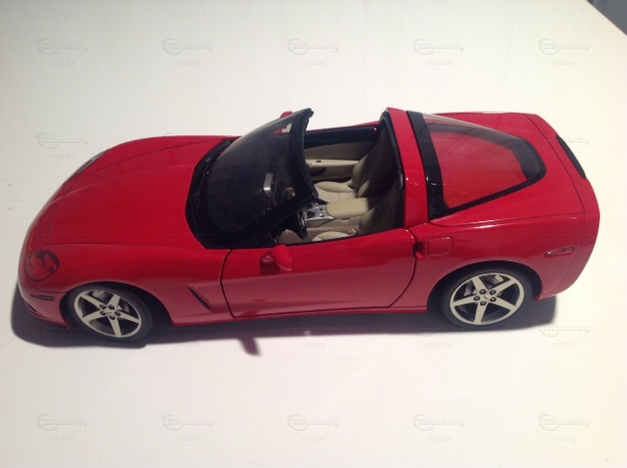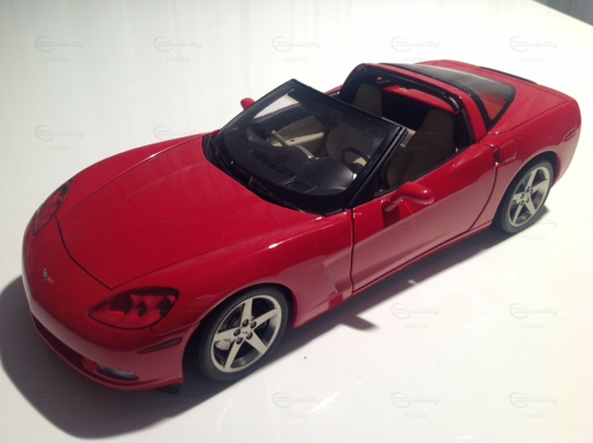 Hier ein rotes C6 C oupé von AUTOart. Das Targa-Dach liegt unter der Heckscheibe.