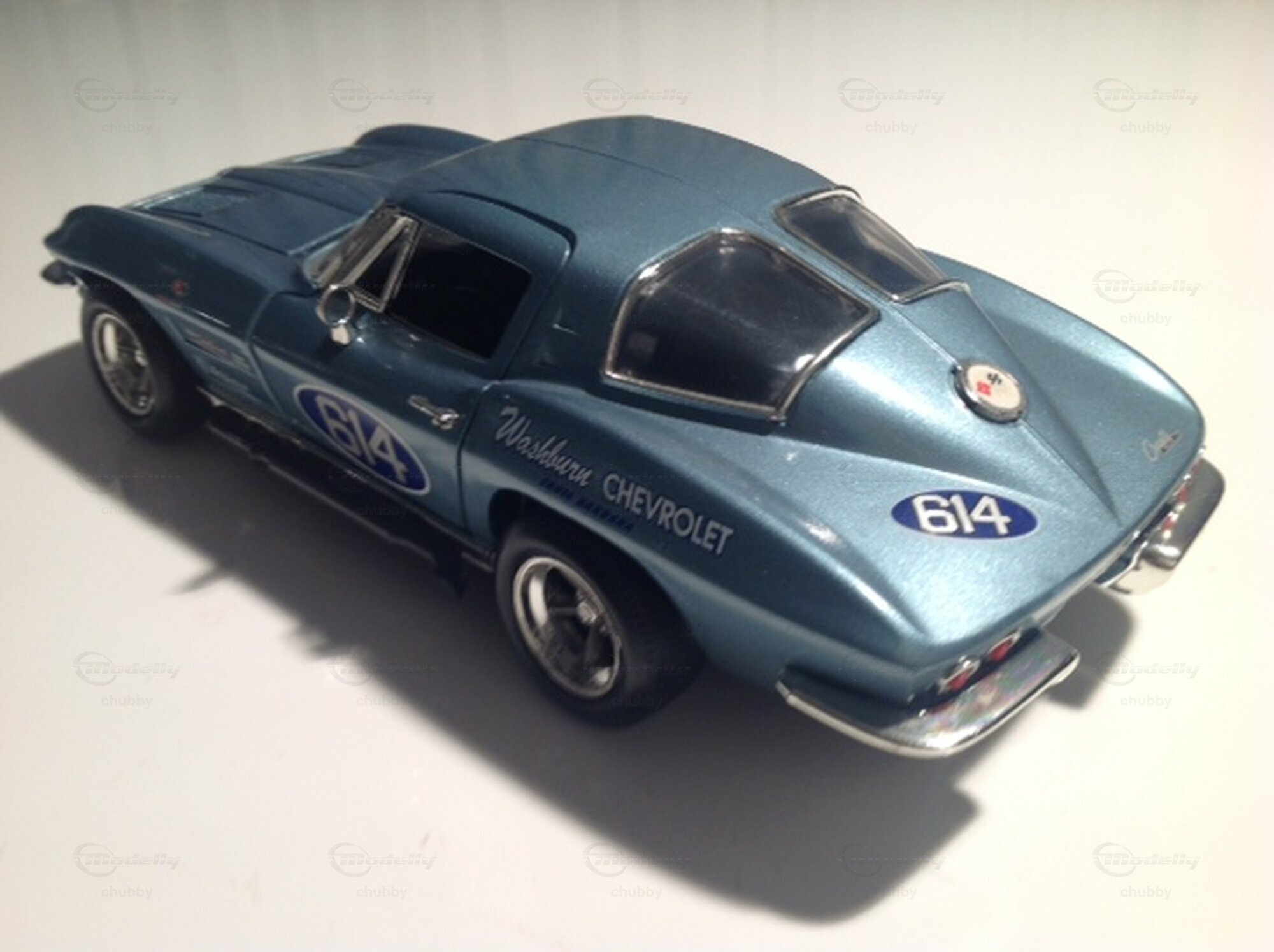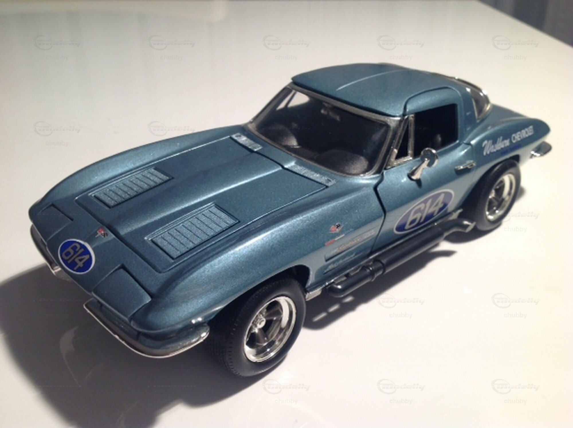 In der Generation C2 konnte ich mich nicht entscheiden. Was zählt mehr, die historische Bedeutung des Autos oder die Beliebtheit eines selten gewordenen Modells oder dessen Qualität oder Schönheit? In diesem Fall kommen die Schönheit und die Qualität zuletzt zum Zuge. Dies ist das 1963er C2 Z06 "Washburn"-Coupé mit der Rennnummer 614. Wie wohl alle b4deutenden Z06-Remmautos jenes Jahres hatte das Fahrzeug einen stark vergrösserten, in den Innenraum reichenden (solche Covetten werden unter Fachleuten auch heute noch "Tanker" genannt. Bob Bondurant fuhr mit diesem Auto in den USA recht erfolgreich Rennen, und zwar war damals das Auto ohne vordere und hintere Stossstangen auf den Strecken unterwegs. Im darauffolgende n Jahr wechselte der talentierte Bondurant zu Shelby bzw. Cobra, wo er grosse Erfolge einfuhr (sogar einen in der Schweiz beim Bergrennen Sierre-Montana , wo ich als Zuschauer anwesend war. Die prominente Corvette Split Window #614 fuhr dann im Strassenverkehr weiter, und zwar mit Stossstangen. Das selten gewordene Modell von Ertl gilt noch heute unter 1:18 Corvette-Sammlern als eines der "Must haves".