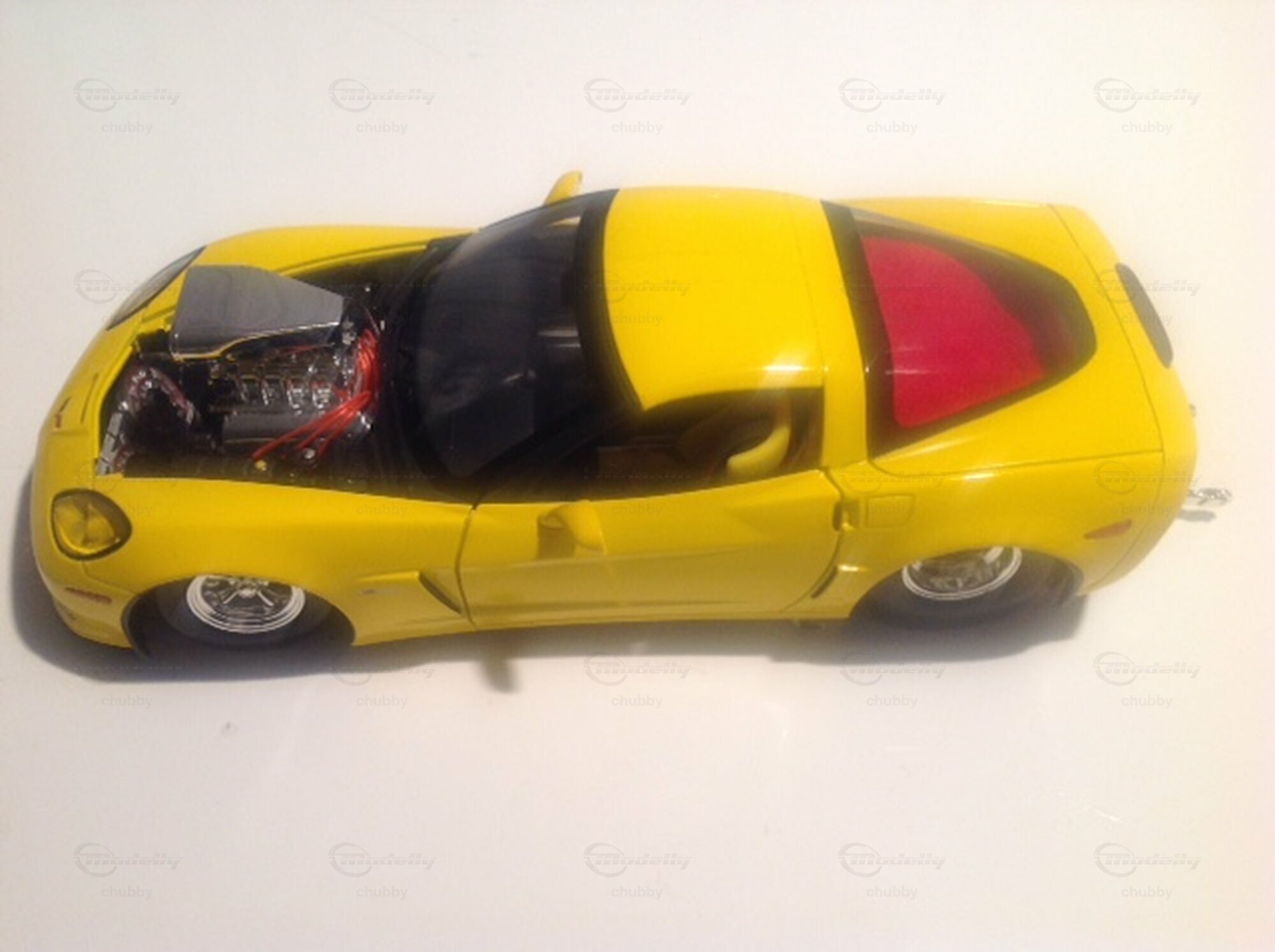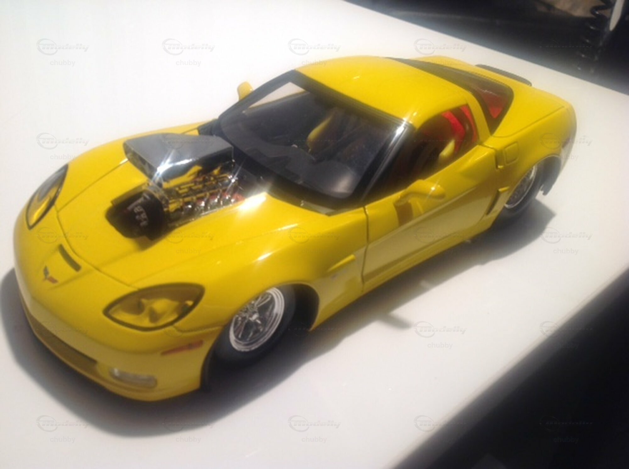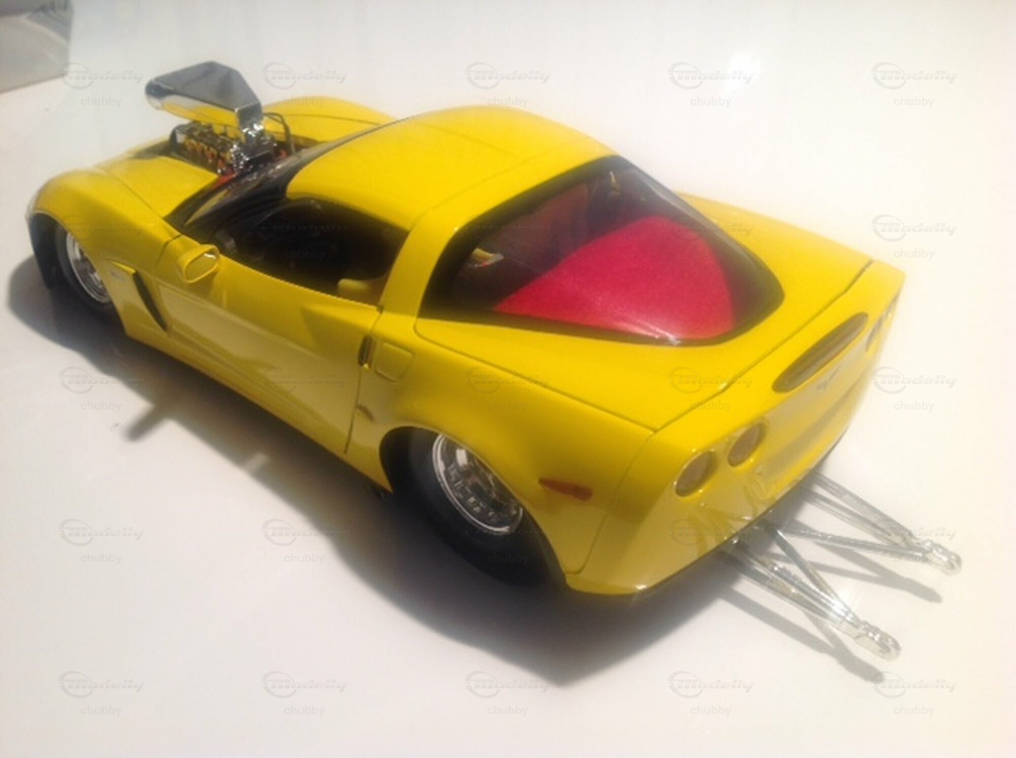Und hier der letzte Dragster von Frank Hamilton: eine gelbe  C6 Z06, basierend auf dem rar gewordenen Z06-Modell von Hot Wheels. Ich finde dieses Modell sehr hübsch, fast zu hübsch, zu "kuschelig" für einen Dragster. Und dann  die gelbe Farbe, welche Corvette Racing von 2000 an bis zuletzt  bei den C5 bis C8-Rennern  als Standard-Farbe verwendet hat (es gibt Ausnahmen). Das passt! Dieses Gelb ist übrigens schöner, leuchtender als jenes der extrem teuer gewordenen  C6 Z06 von AUTOart. Übrigens, warum kommen bei mir keine C2-Dragster vor? Es kämen da nur die beiden "Dragster" genannten Modelle von Motorbox in Frage. Aber das grüne ist abgesehen vom Blower kein eigentlicher  Dragster, und das orange ist lausig verarbeitet. Und warum keine C7? Ich habe noch keine gesehen, weder in 1:18 noch in 1:43. Aber da liesse sich schon was machen. Bei der C8 allerdings kaum...