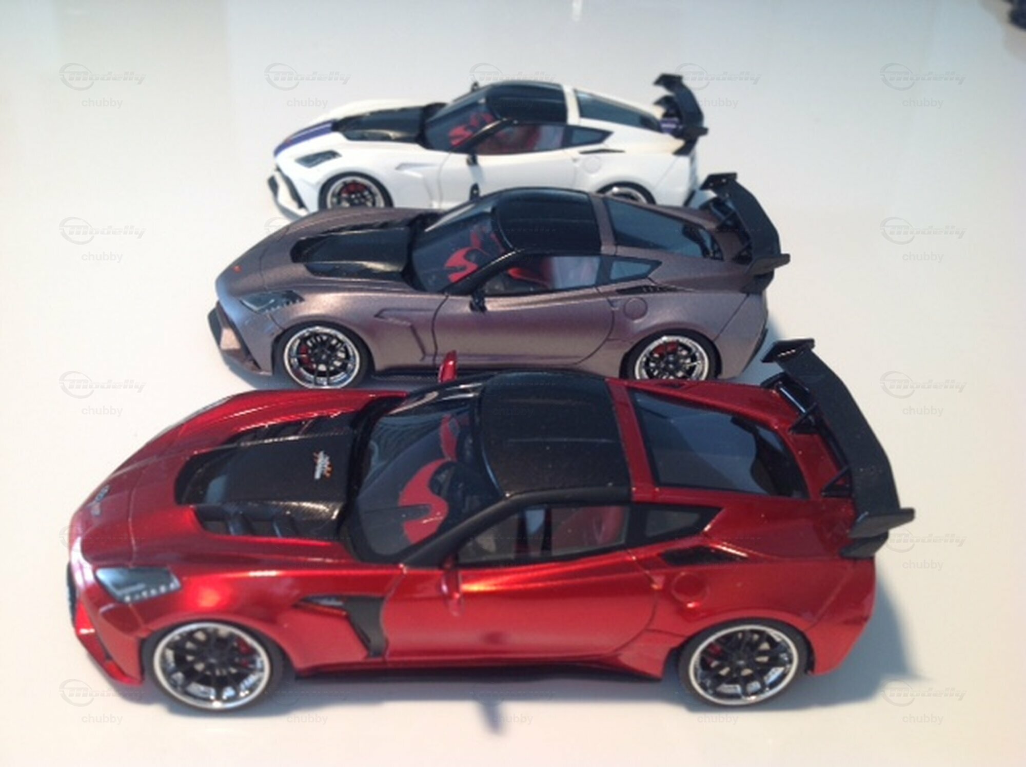 Hier die rot-schwarze Version des spektakulären C7 DarwinPRO Coupés von GLM. Auf dem dritten Bild stehen dahinter noch die zwei weitere Exemplare mit anderen Farbvarianten.