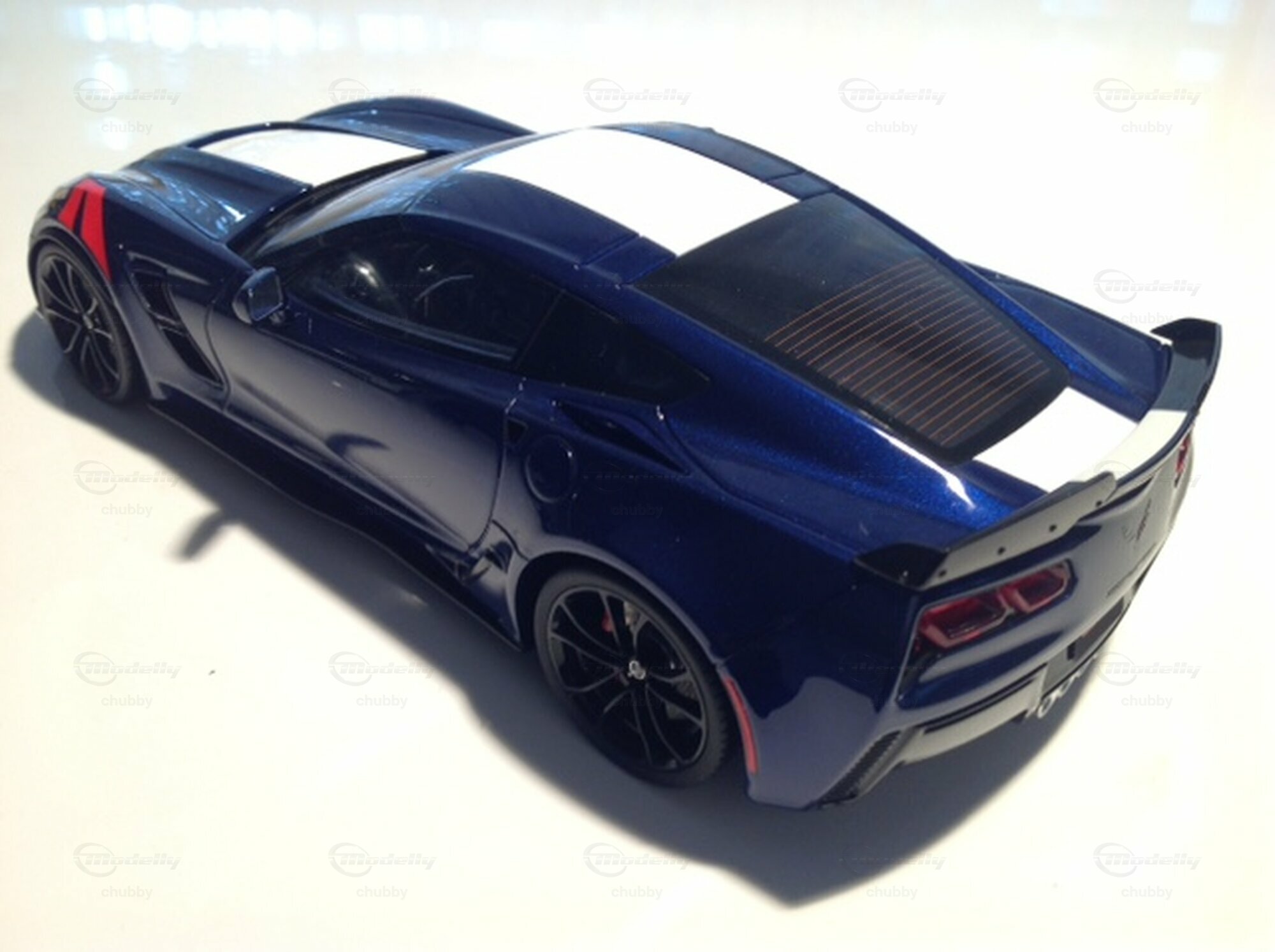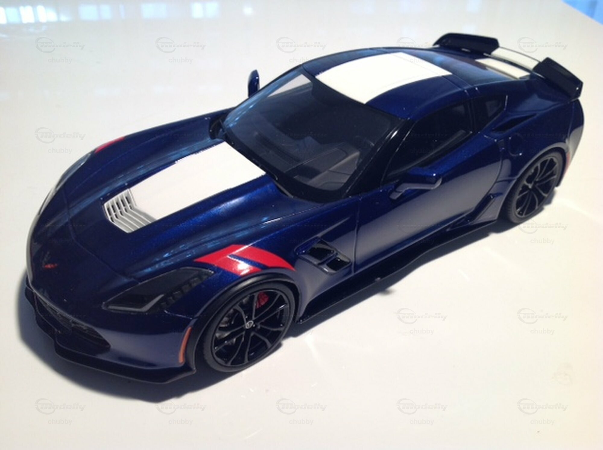 GT Spirit hat auch schöne C7 Grand Sport Coupés gemacht. Im Gegensatz zu den Modellen von AUTOart sind dies reine Standmodelle, d.h. man kann daran nichts bewegen und öffnen, und sie sind als Resin-Modelle auch viel schwerer. Hier ein Exemplar in der klassischem Grand Sport-Farbkombination Dunkelblau und Weiss.