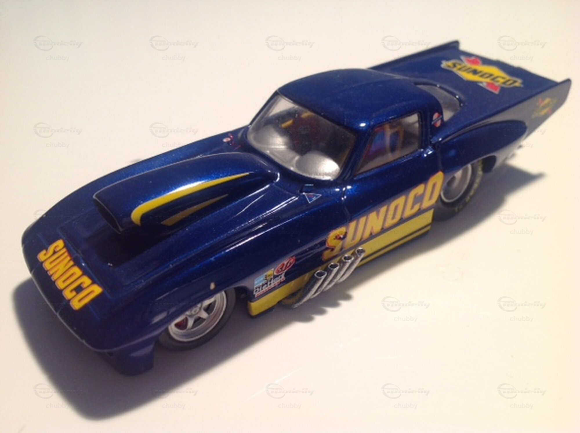 Auch die klassische Sunoco Farbkombination Dunkelblau-Gelb passt perfekt zu einem C2  Pro-Mod  Dragster.