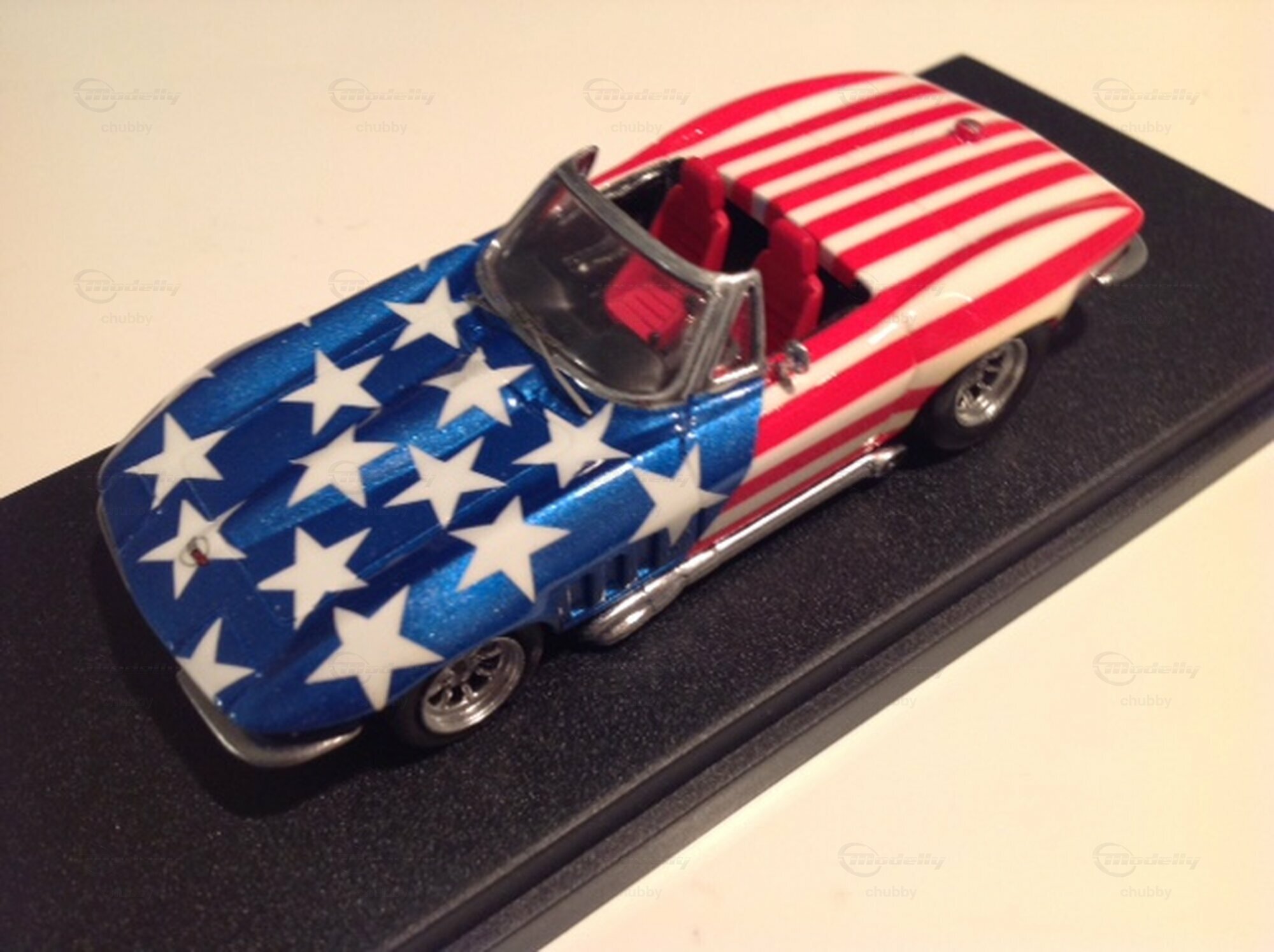 Beinahe wäre das Stars and Stripes Cabrio bei den C2 1965/66  Pro Touring Modellen von  Kentucky Legend vergessen gegangen. Hier ist es. Ich hatte bei Rigo insgesamt 14 Corvette Modelle von C1 bis C7 in diesem Outfit bestellt.