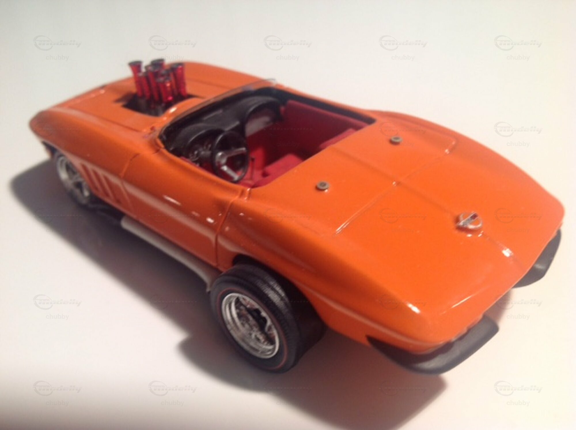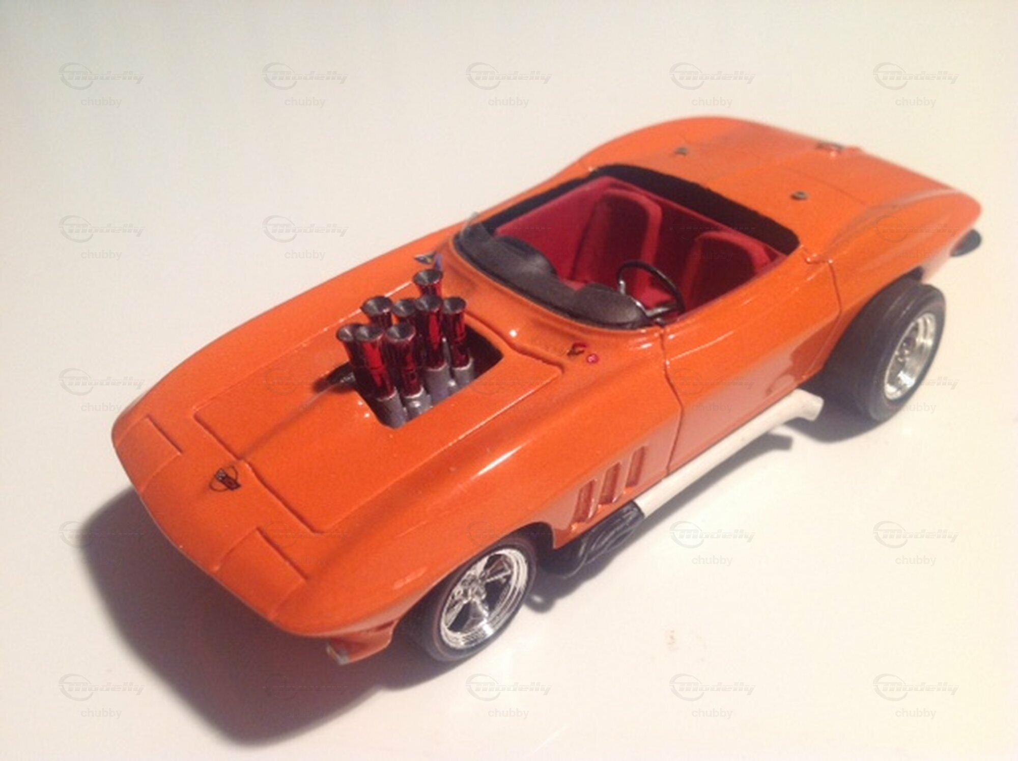 Es folgen jetzt vier Dragster der Kategorie Gasser der C2-Jahre 1965/1966. Sie sind an den grossen über die Karosserie herausragenden Hinterrädern zu erkennen. Hier eine orange Schönheit.