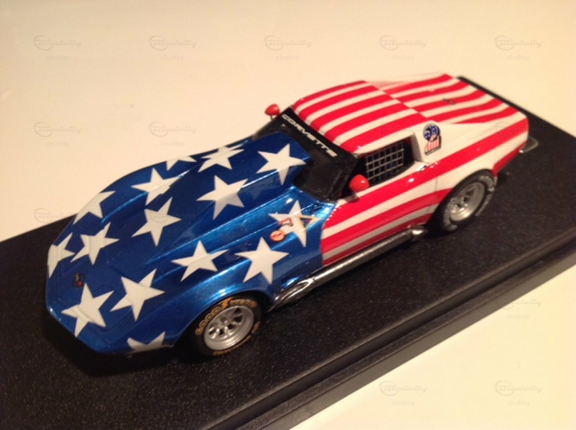 Es folgen jetzt drei C3 1973 Modelle von Kentucky Legend, die im patriotischen Stars and Stripes-Design gestaltet sind. Hier zunächst ein "Ready to Race" Rennfahrzeug ohne Rennnummer.