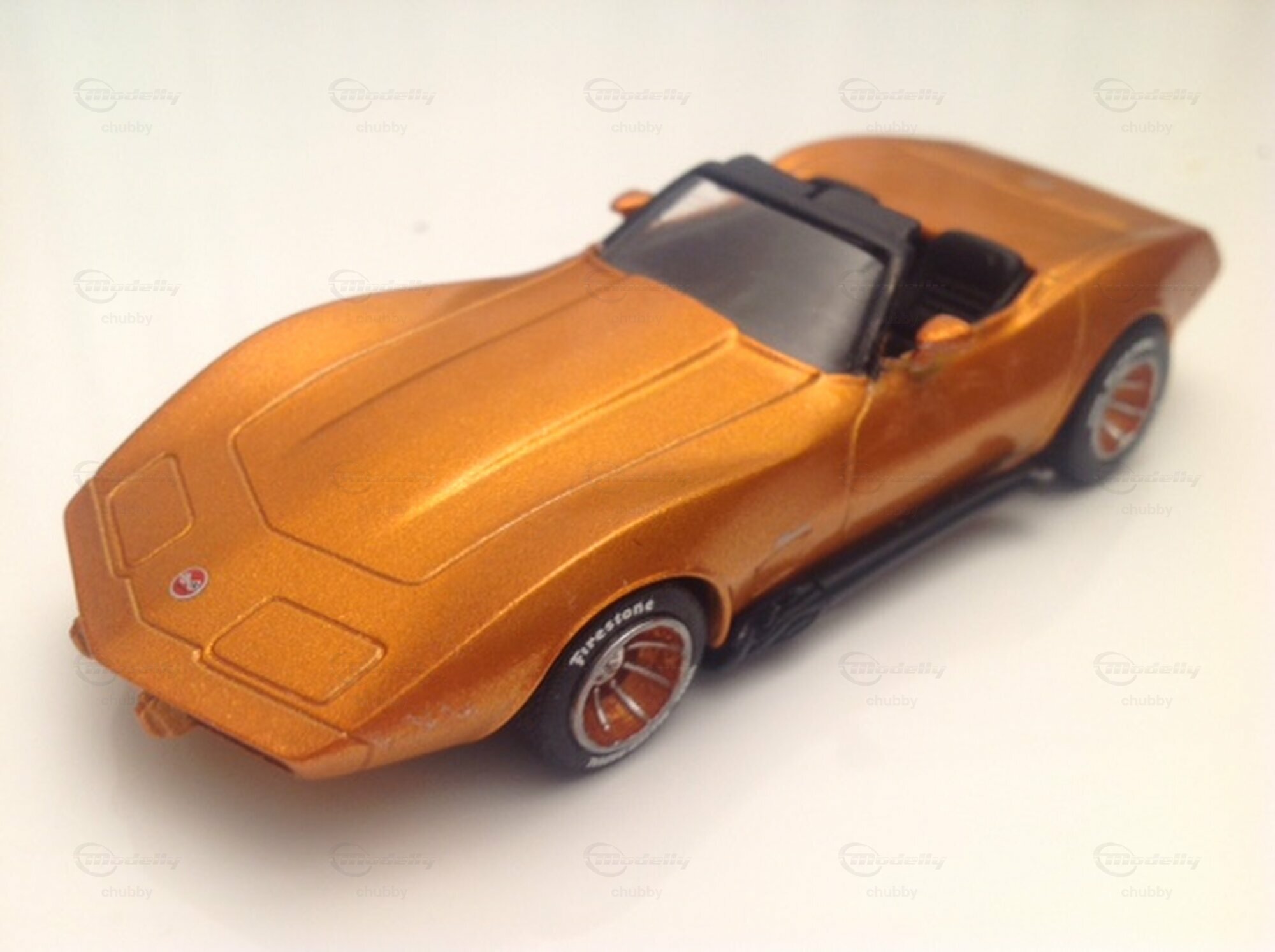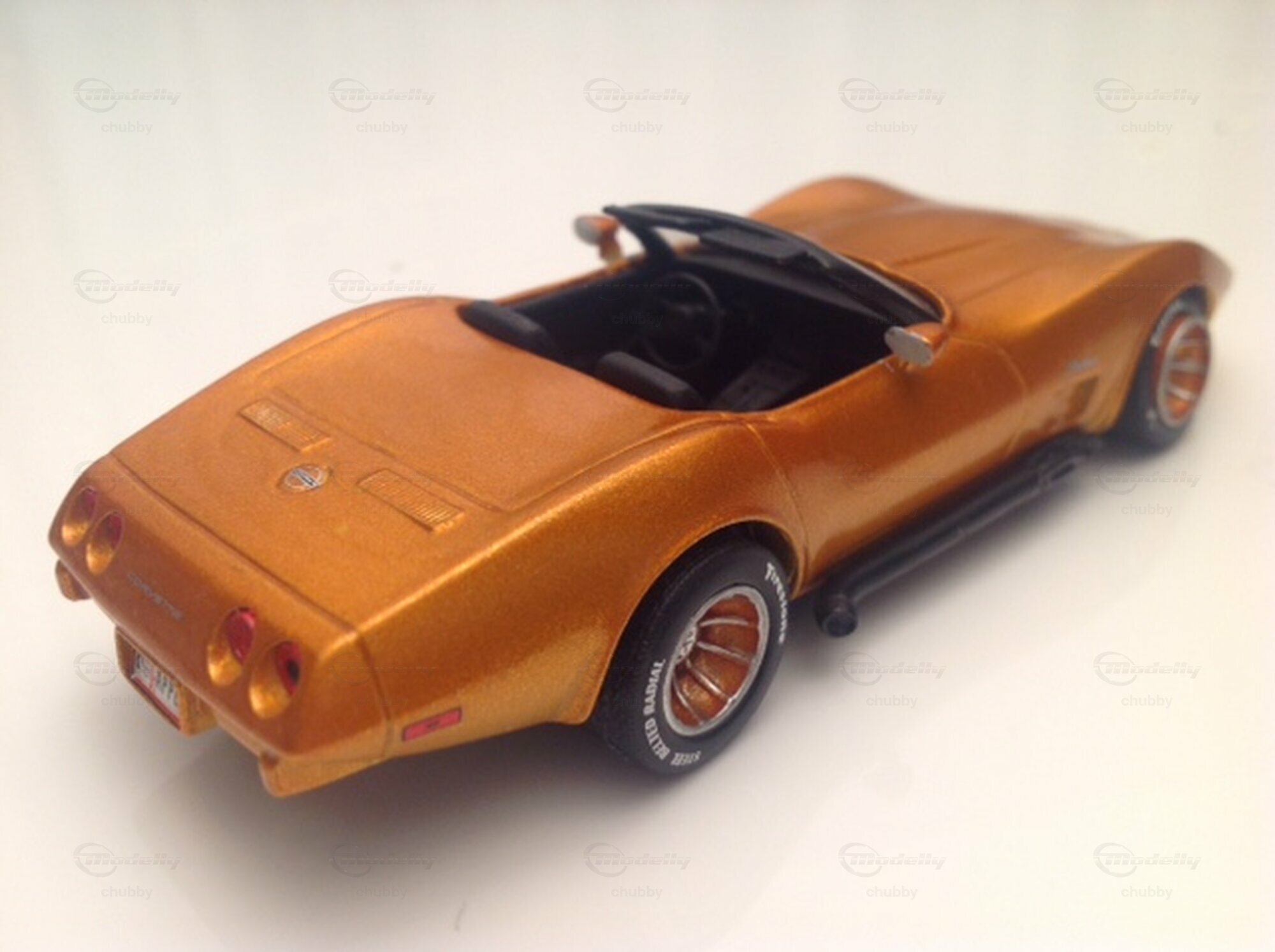 Dieses orange metallisierte C3 1975 Cabrio mit den dazu passenden Greenwood-Felgen ist zweifellos ein Hingucker. Als Basis diente Rigo ein Corvette C3-Kit von Cult Cars (Provence Moulage/Ugo Fadini) .