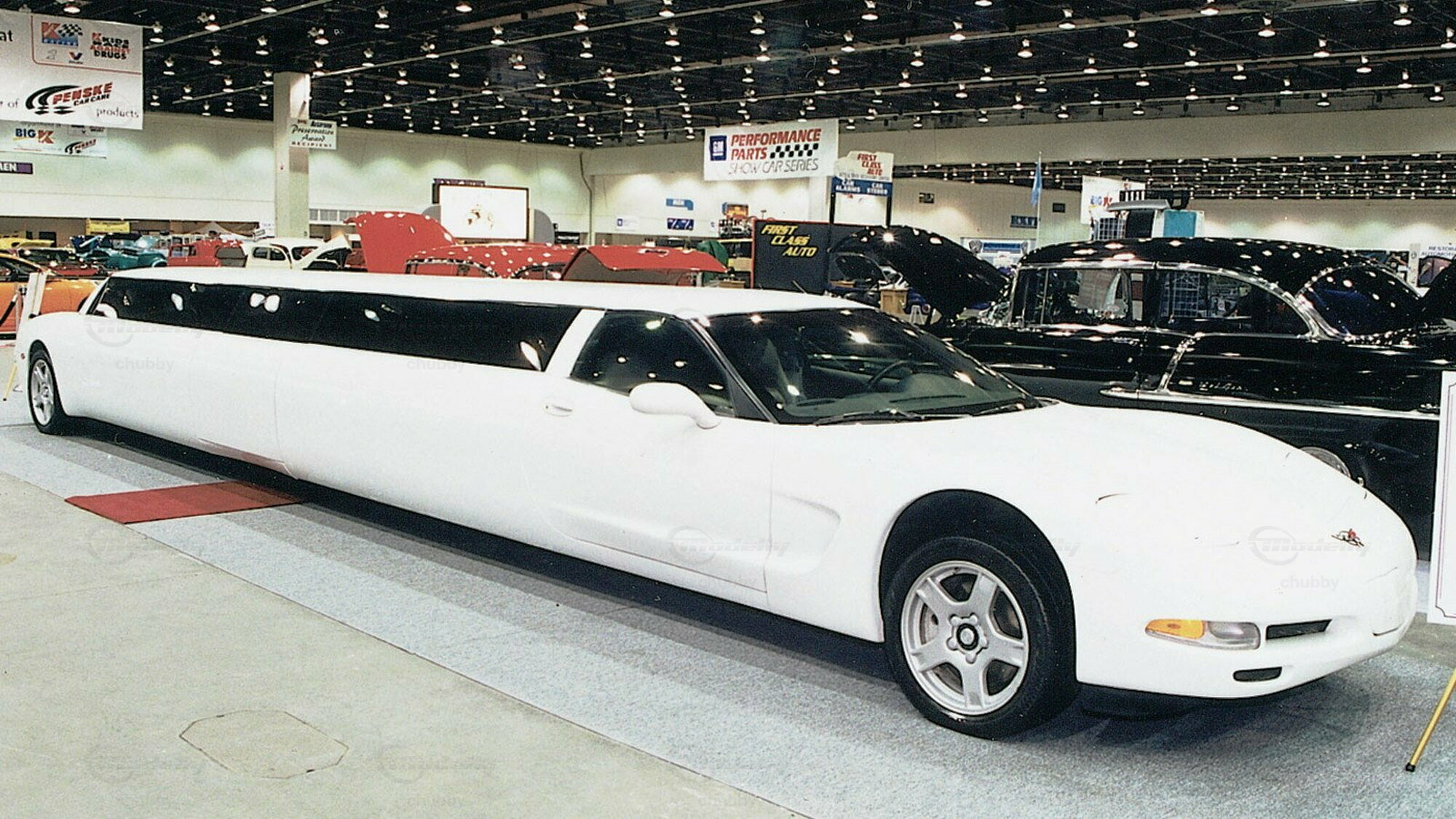 Diese C5 Stetch Limo ist die längste und sicher auch schwerste Corvette aller Zeiten. Dass das Modell von Kentucky Legend nicht Rigos blühendem Fantasiereich entsprang, zeigt das dritte Bild. Es gibt es tatsächlich in 1:1, dieses weisse Monstrum !
