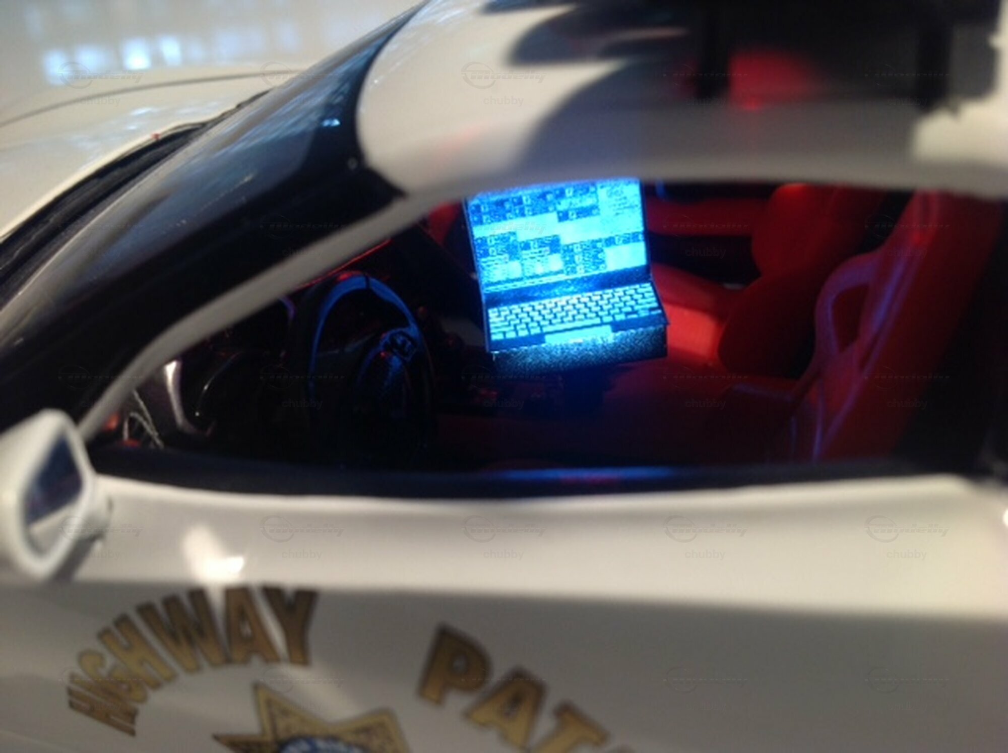 Das Kind in mir brannte durch und ich ersteigerte auf Ebay eine C7 im Polizei-Outfit und mit funktionierenden Polizei-Funktionen, d.h. heulender Sirene, blinkenden Dachleuchten und leuchtendem Bordcomputer. Ein recht teuer Spass, aber da es sich zudem um ein hübsches Modell handelt, war es mir das wert.