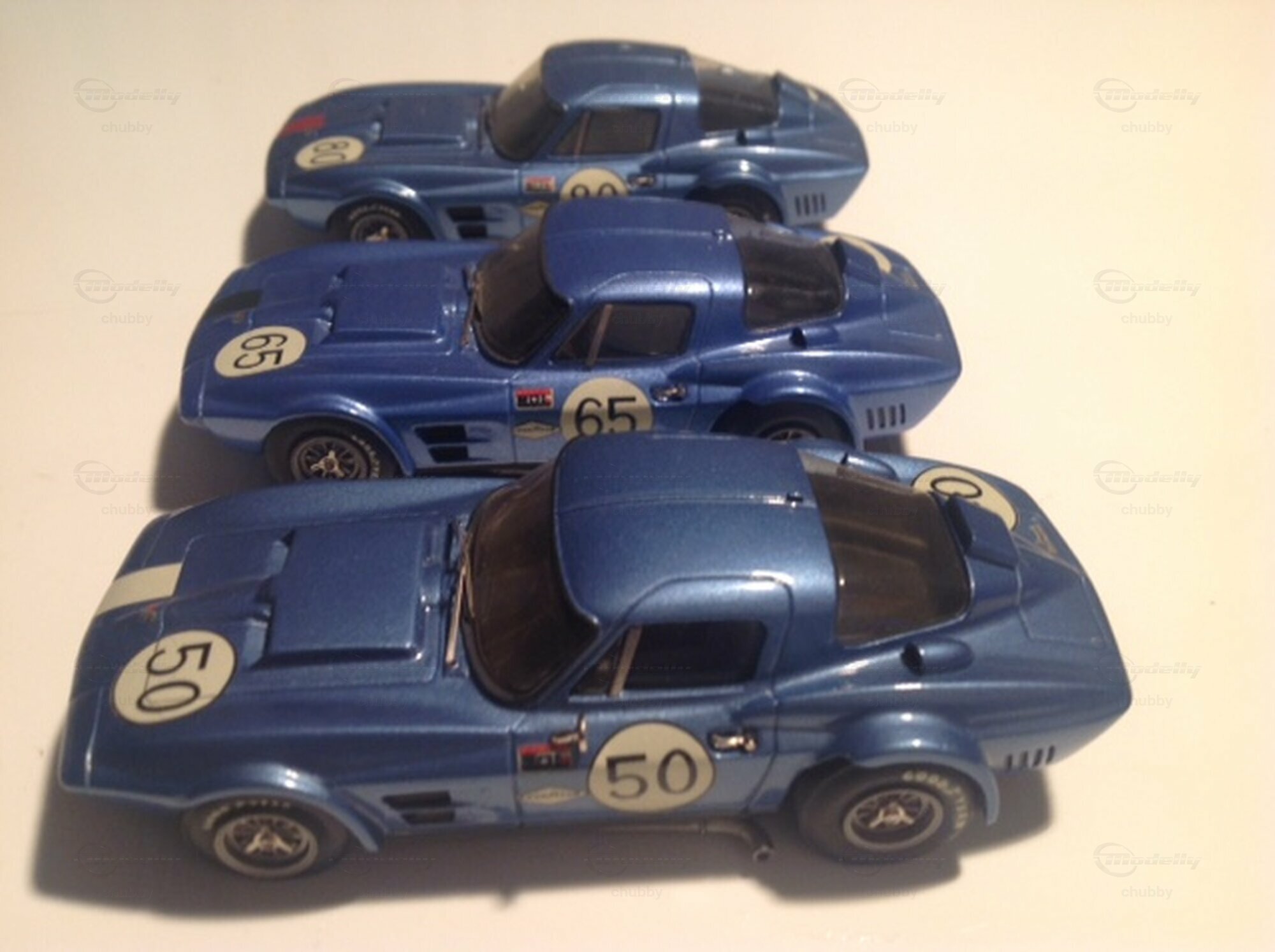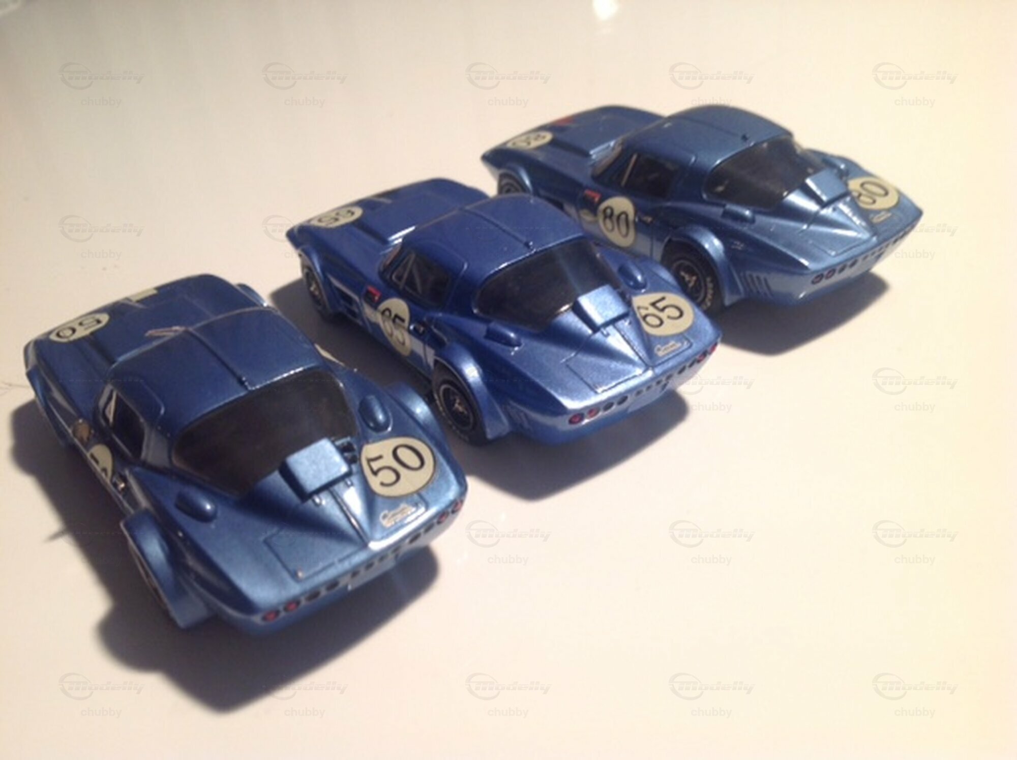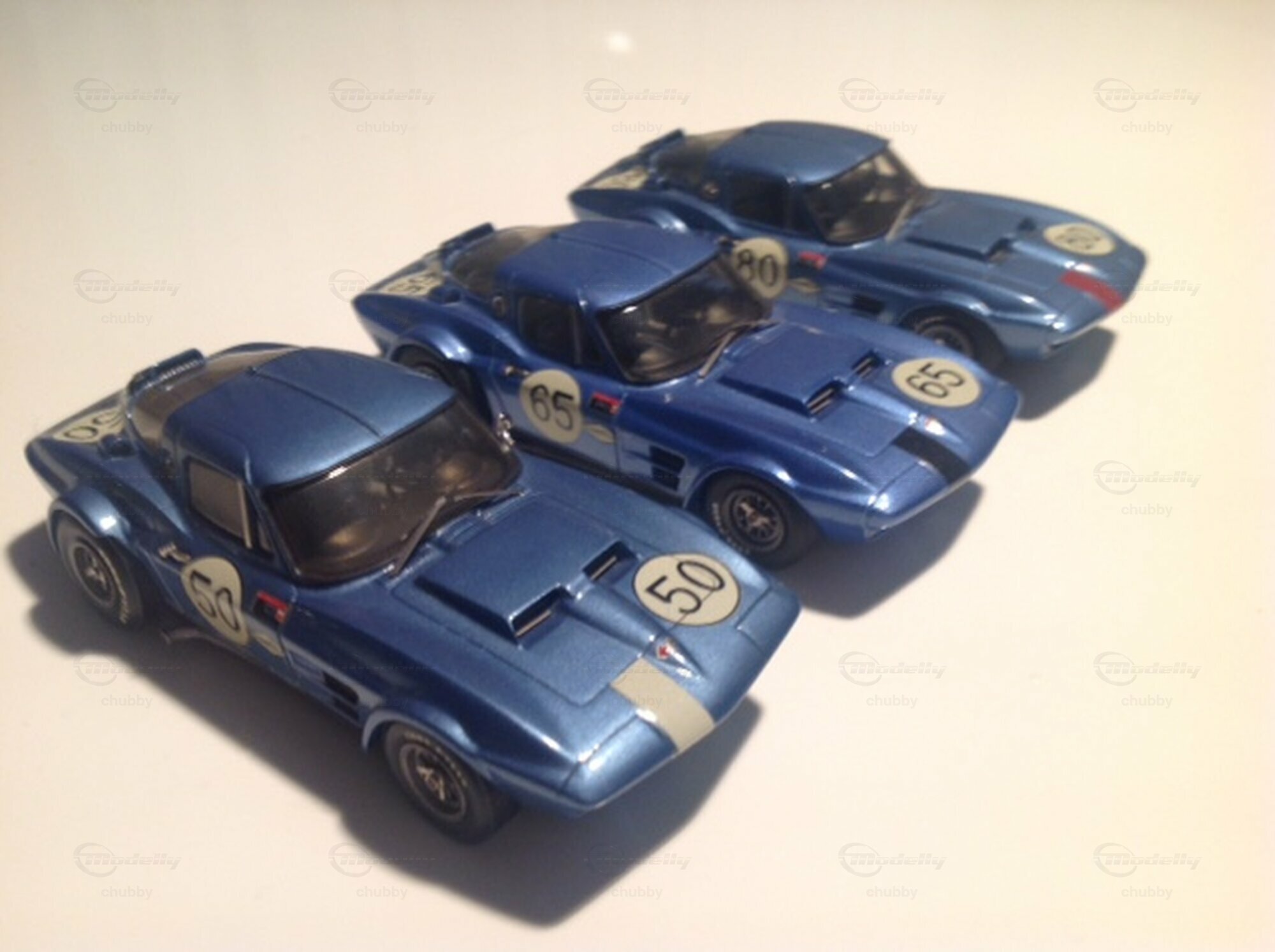 Auch die traditionellen Corvette Rennmodelle von Marsh Models sind aus Weissmetall gefertigt. Hier die factory-built Modelle der drei Fahrzeuge, welche 1963 in Nassau für Furore sorgten: