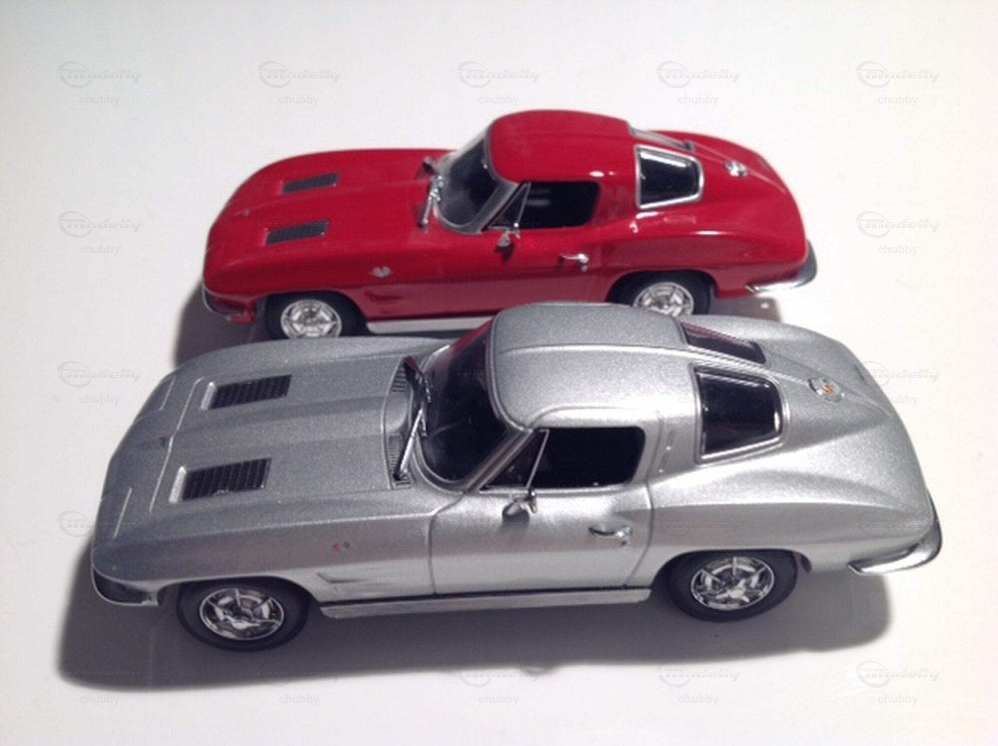 Ältere Minichamps-Modelle stehen für gute, wenn auch nicht überragende Qualität. Das bestätigen diese beiden C2 Coupés des Jahrgangs 1963 (sog. Split Window).