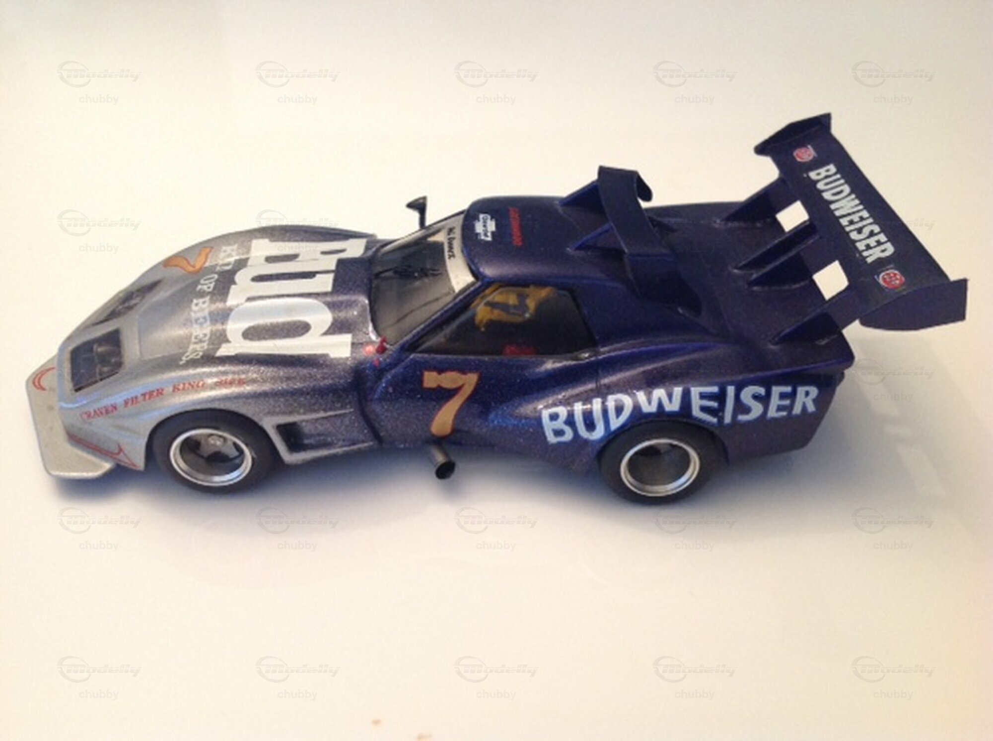 Ebenfalls abenteuerlich "überdreht" mit seinem grossen Frontspoiler und den beiden geradezu gigantischen Flügeln auf dem Dach und am Heck wirkt dieses im Greenwood GT-Stil verbreiterte C3 Renn-Coupé.