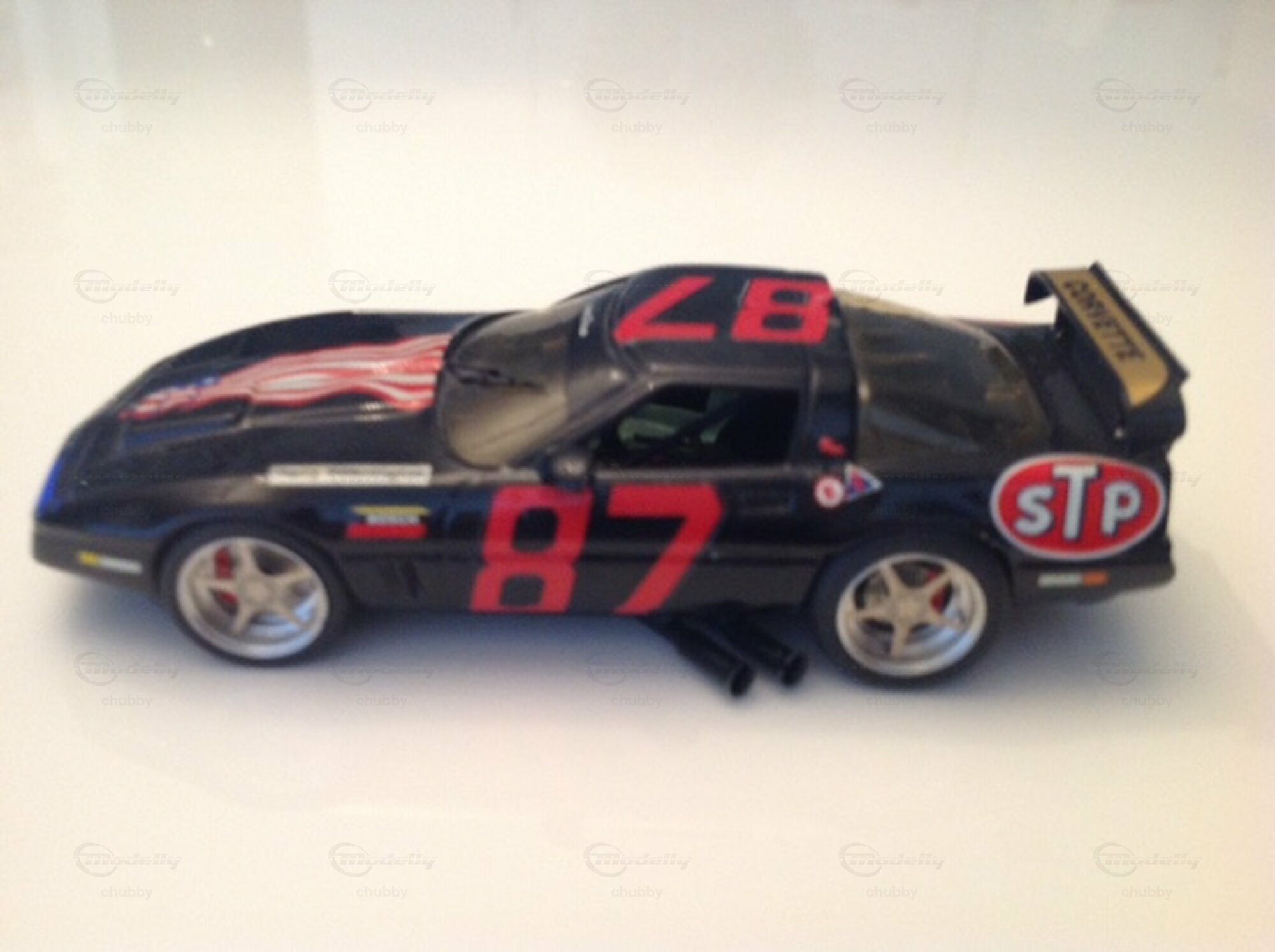 Dieses Resin-Modell eines schwarzen australischen C4-Rennautos mit US-Flaggen-Design ist sehr filigran und m. E. einfach schön.