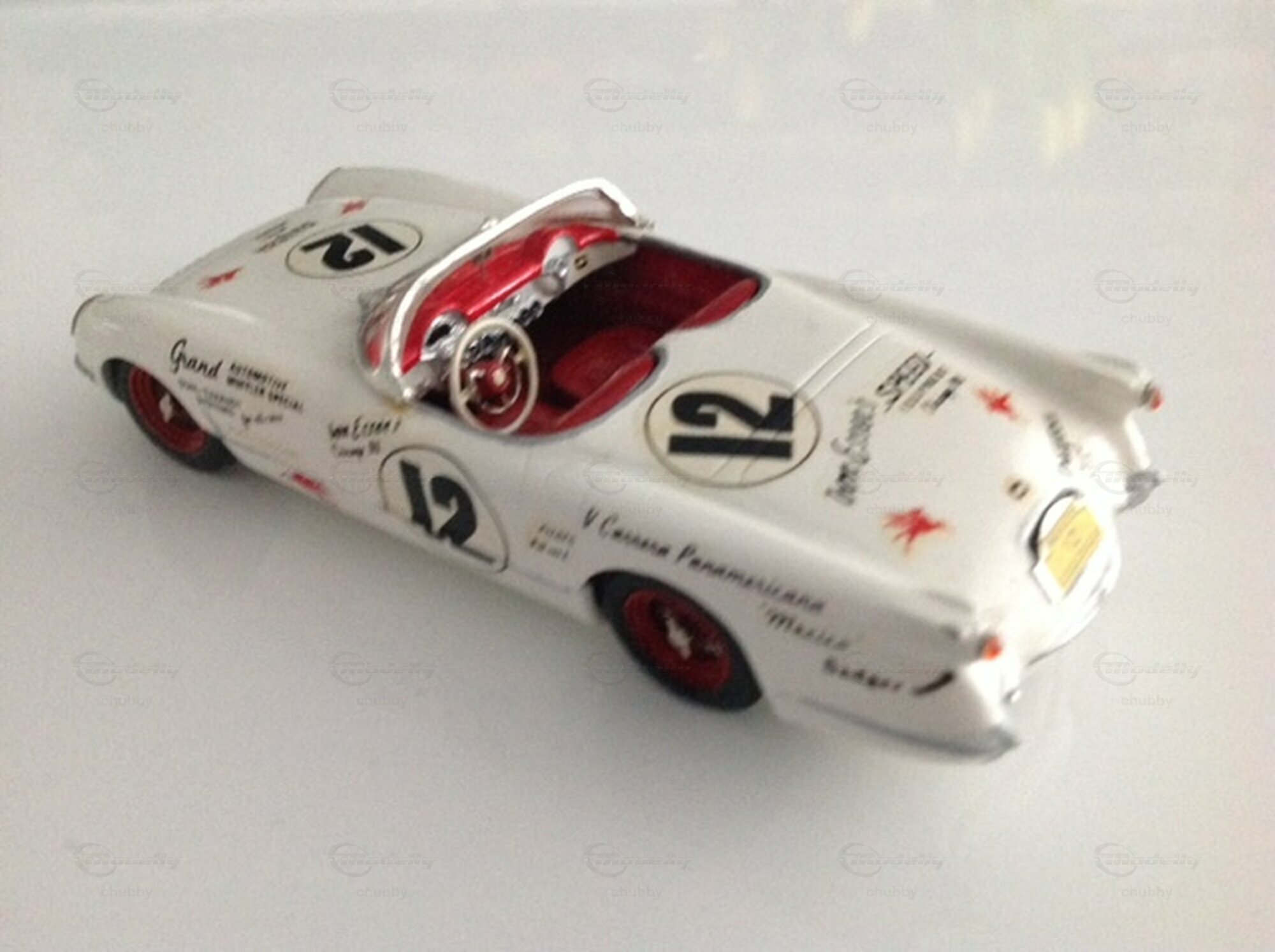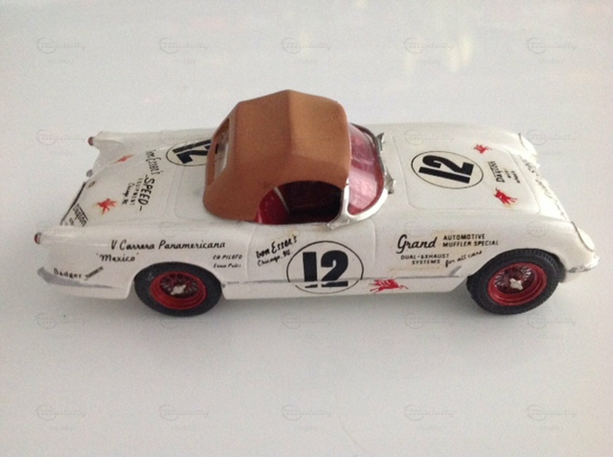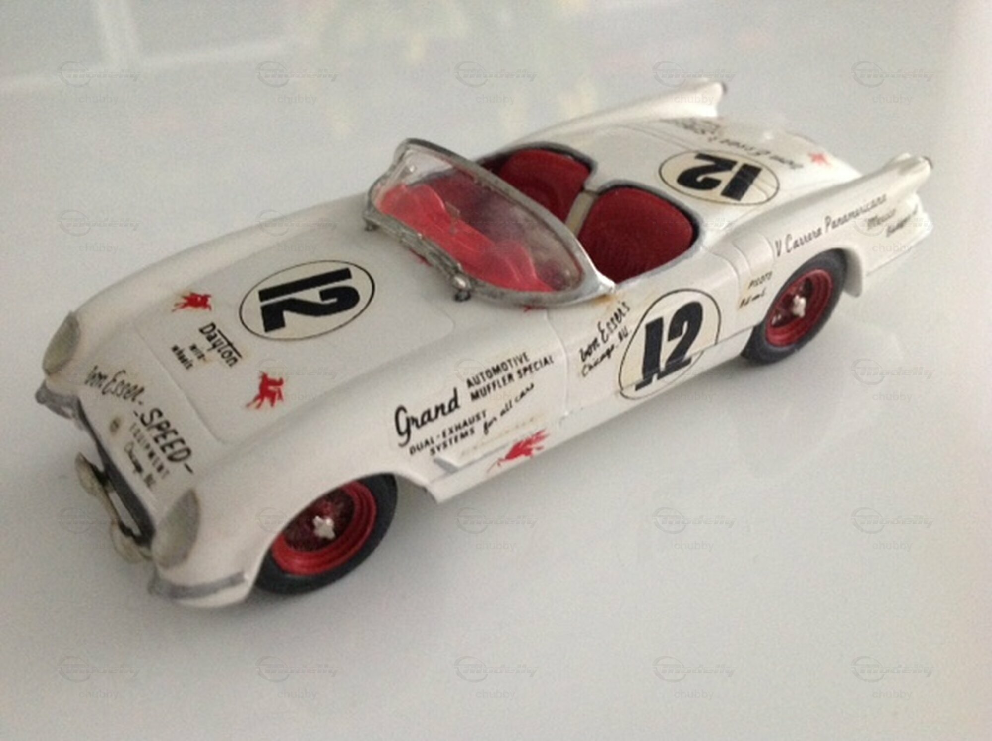 Die ist das älteste bekannte Corvette Rennauto. Es startete 1954 bei der Carrera Panamericana in Mexiko. Das alte Modell stammt von Precision Miniatures.