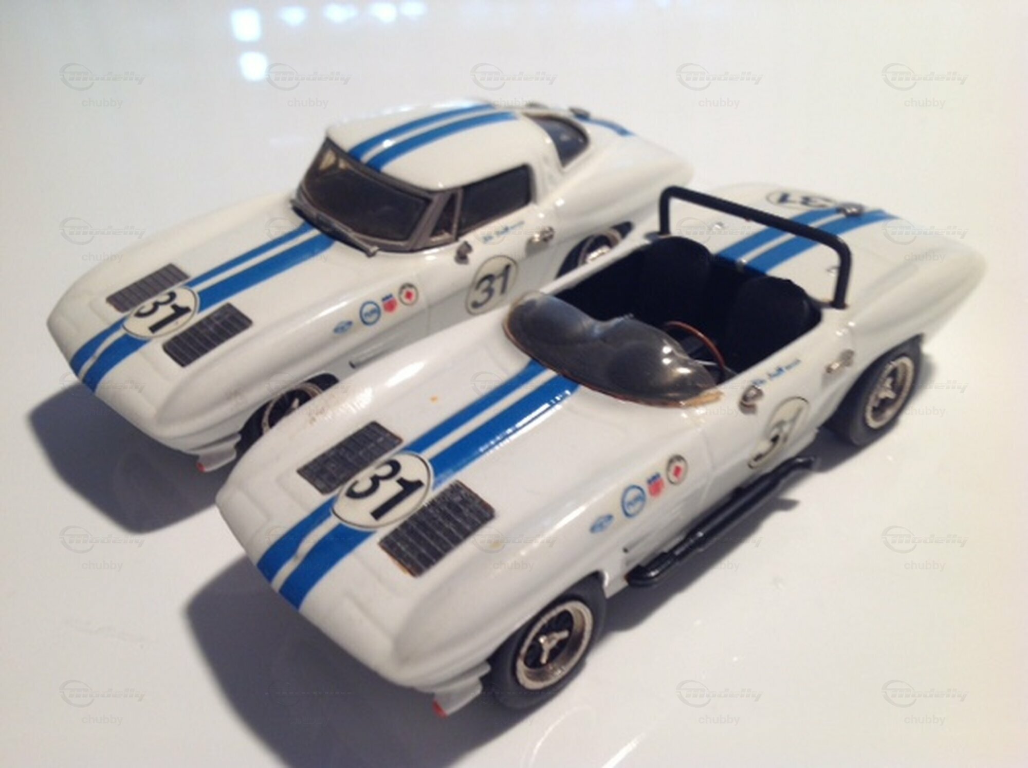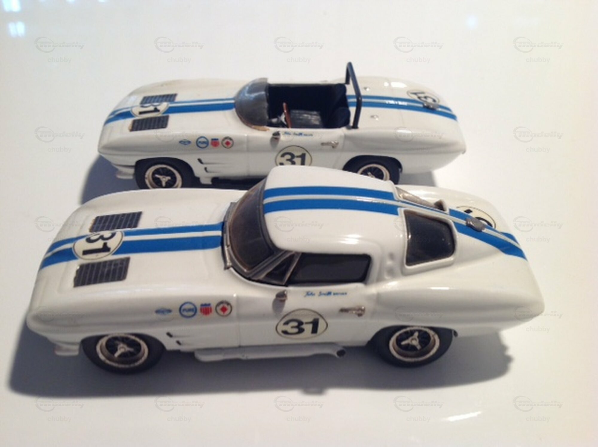 Der englische Hersteller St Martins Classic Supercars machte zwei C2 1963-Versionen mit der Nummer 31, ein Coupé und einen Speedster. Als Fahrer ist ein John Smith angegeben. Möglicherweise handelte es sich um einen Engländer. Belege für die Existenz dieses Autos habe ich keine gefunden. Die beiden hübschen, alten Weissmetall-Modelle strahlen einen ausgesprochen traditionellen Charme aus.