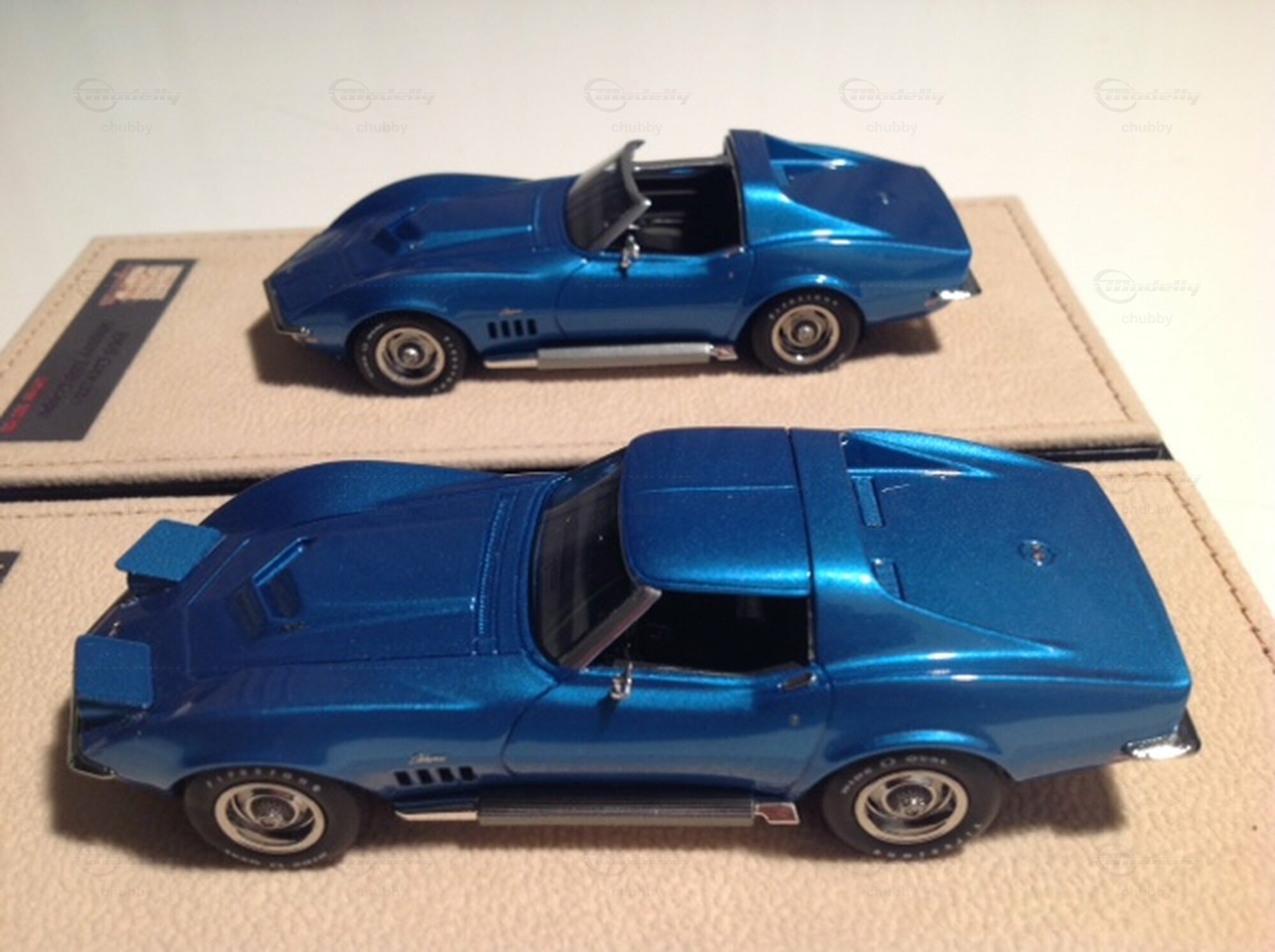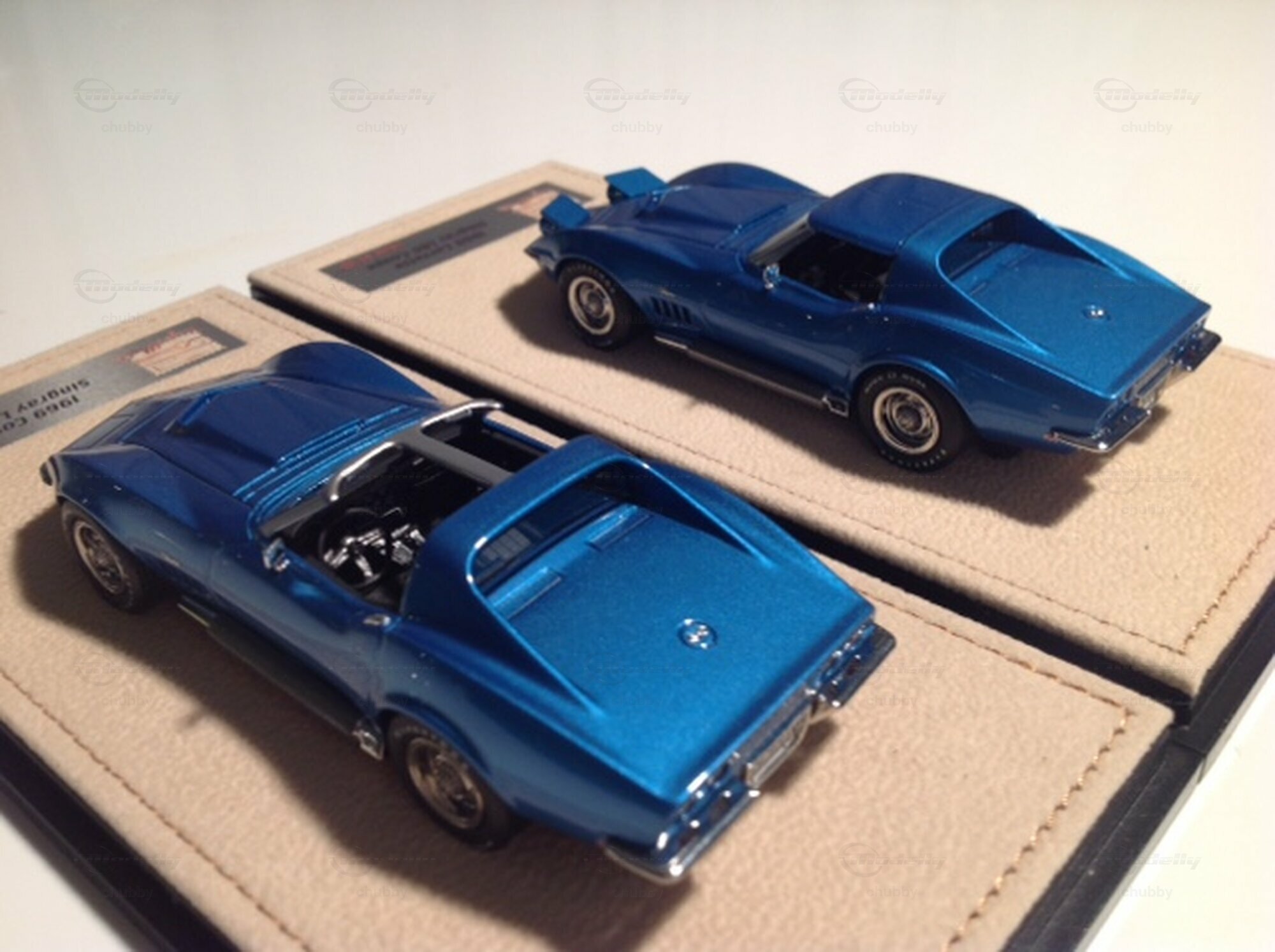 Wenn man diese beiden neuen C3 L88 1969er Coupés von Stamp mit dem zuletzt präsentierten alten Hardtop Cabrio von Arena vergleicht, sieht man die Fortschritte und die grösser gewordenen Ansprüche im Modellautobau. Kurz gefasst gilt in diesem konkreten Fall (und in vielen anderen) für das neue Produkt: doppelt so gut und halb so teuer. Die beiden ansonsten identischen neuen Modelle von Stamp unterscheiden sich dadurch, dass das eine geschlossen und mit permanent geöffneten Scheinwerfern dasteht, das andere hingegen ohne die Targa-Halbdächer und mit geschlossenen Scheinwerfern. Top notch gilt für beide!