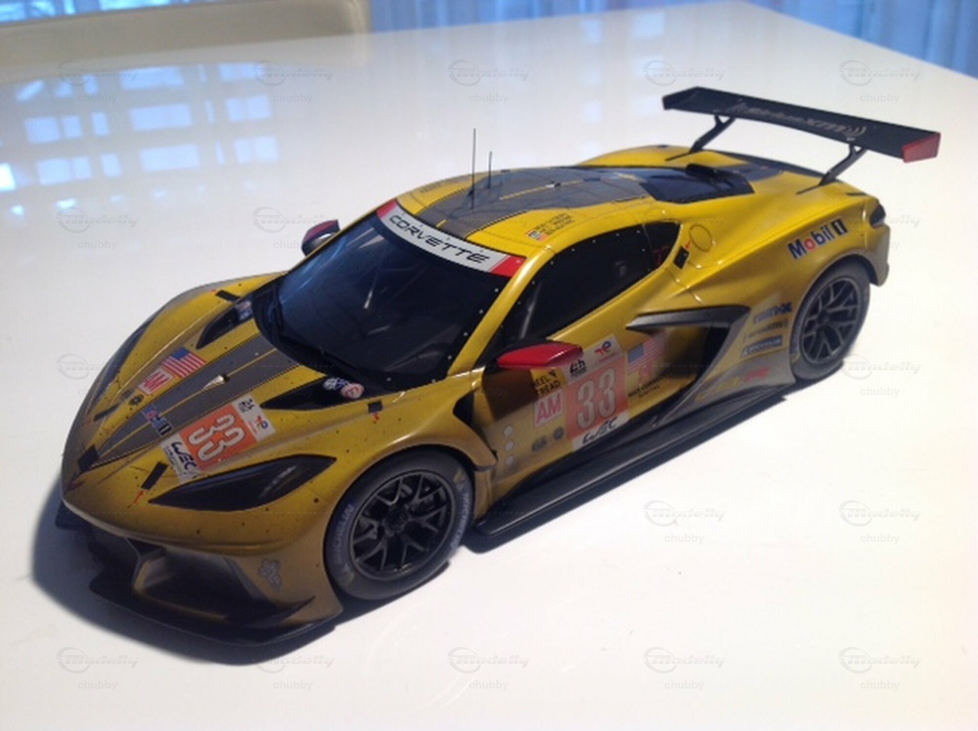 Im Jahr 2023 brachte Corvette Racing in Le Mans nur eine C8.R mit der Nummer 33 an den Start, aber der unverwüstliche Topamateur Ben Keating und seine beiden Fahrerkollegen Catsburg und Varrone fuhren trotz einer frühen Zeitstrafe einen überlegenen Sieg in der GT-Kategorie heraus. Dies ist das einzige "Finish Line"- Modell in meiner Sammlung. Top Speed machte das gleiche Modell auch in sauberem Zustand.