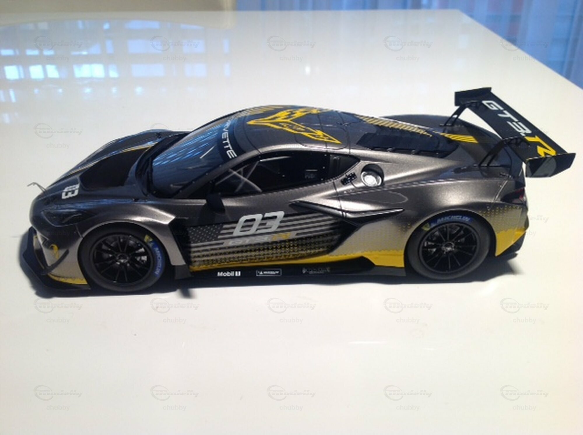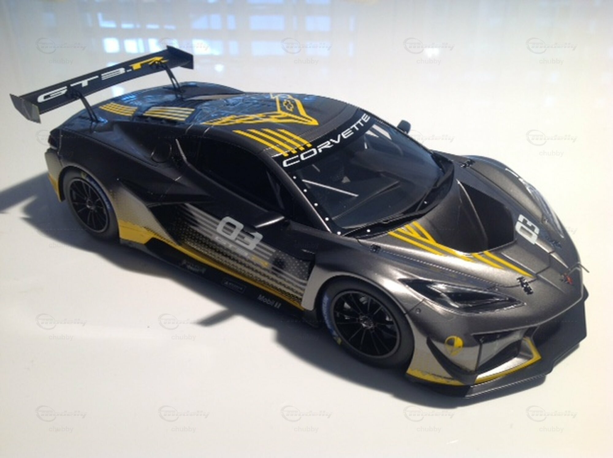Im Jahr 2023 wurde in Daytona das kommende C8 Z06 GT3R- Rennfahrzeug vorgestellt, welches dann auch privaten Fahrern und Teams zur Verfügung gestellt werden sollte und viele Top-Resultate einfuhr. Das reizvoll gestaltete 1:18-Modell stammt von Top Speed.