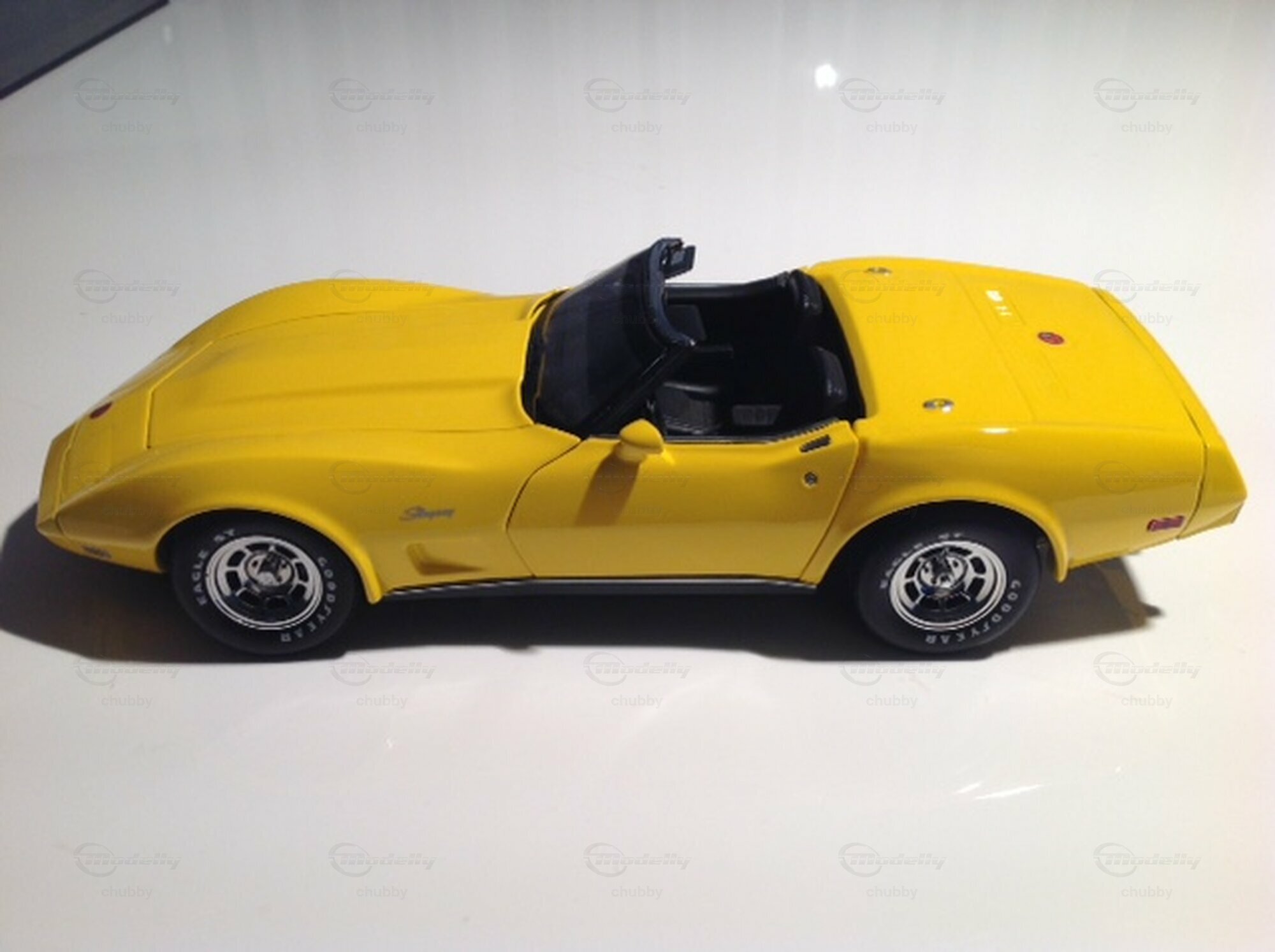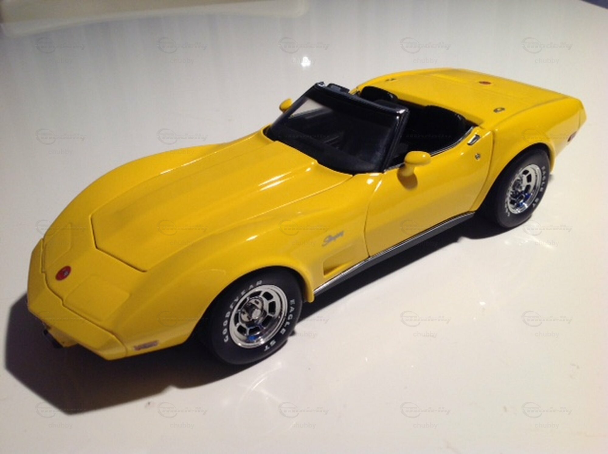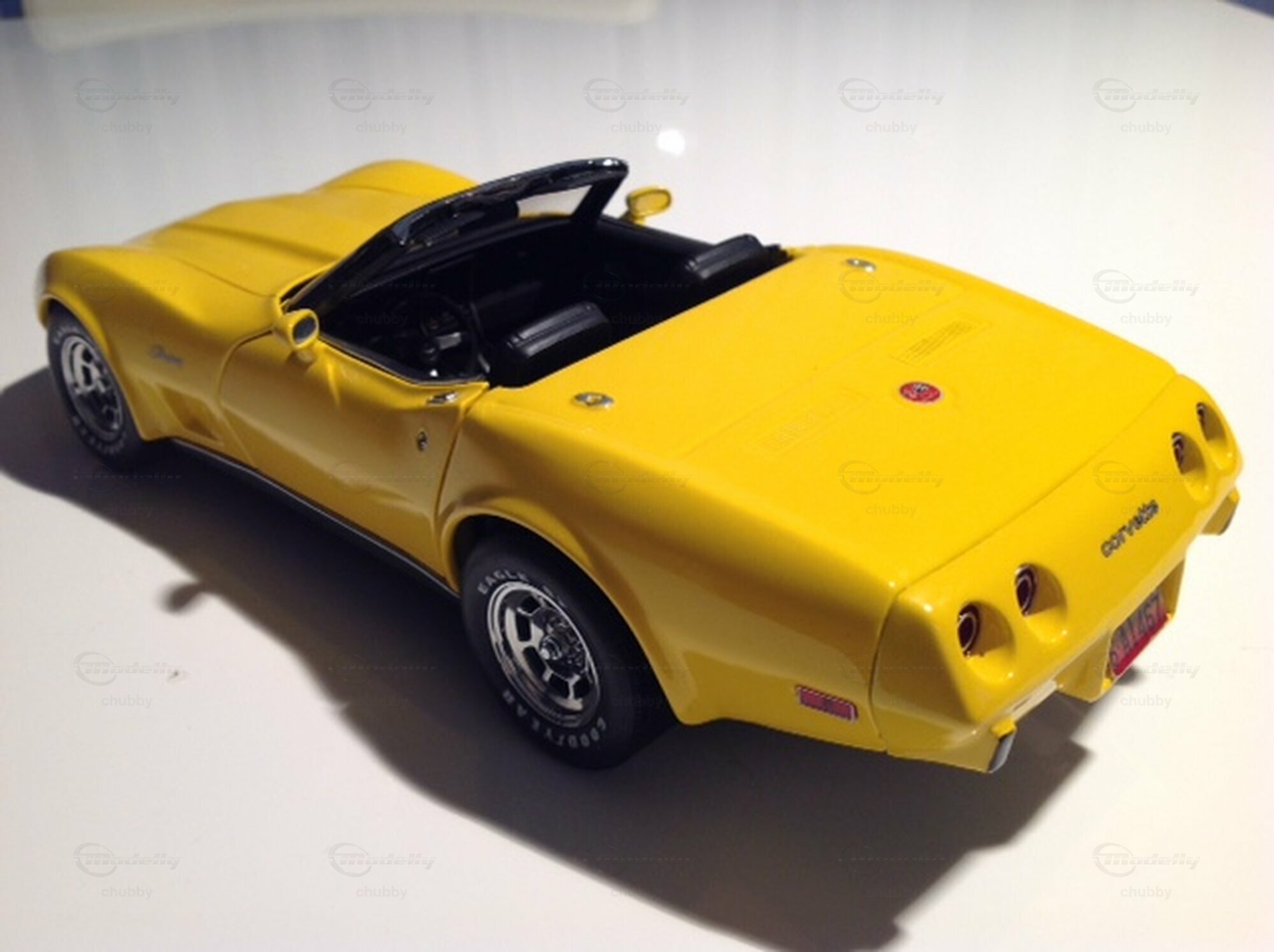 Mainhard Schnabel ist ein Corvette-Modelltuner der feinen Art. Vor allem ist er bemüht, die nu schwer erklärbare totale 1:18-Lücke der Jahrgänge 1973 bis 1977 zu schliessen. Für dieses megaschöne 75er Cabrio verwendete er ein UT-Modell 1978 als Basis. Ich selbst fuhr in meiner "wilden Zeit" ein handgeschaltetes 1974 Big Block Cabrio, welches ich nicht nur optisch tunen liess (s. die vier letzten Bilder). Es erhielt einen 8,1 Liter Stroker-Motor. Dadurch erhöhte sich die Leistung von 270 PS auf 570 PS! Die Leute der Motorfahrzeugkontrolle merkten nichts davon. Da dieses, schnelle, laute und durstige Monster so nur noch schwer zu bändigen war, liess ich auch das Fahrwerk aufwändig tunen. Danach fuhr sich das Auto wie eine C4! Corvette Ersatz- und Tuningteile gibt es immer, aber man muss einen guten, seriösen Betrieb finden, der sie kennt und fachkundig zu kombinieren und zu montieren weiss. Diesen fand ich damals bei "Provette" in Bern. Es war ein teurer Spass!