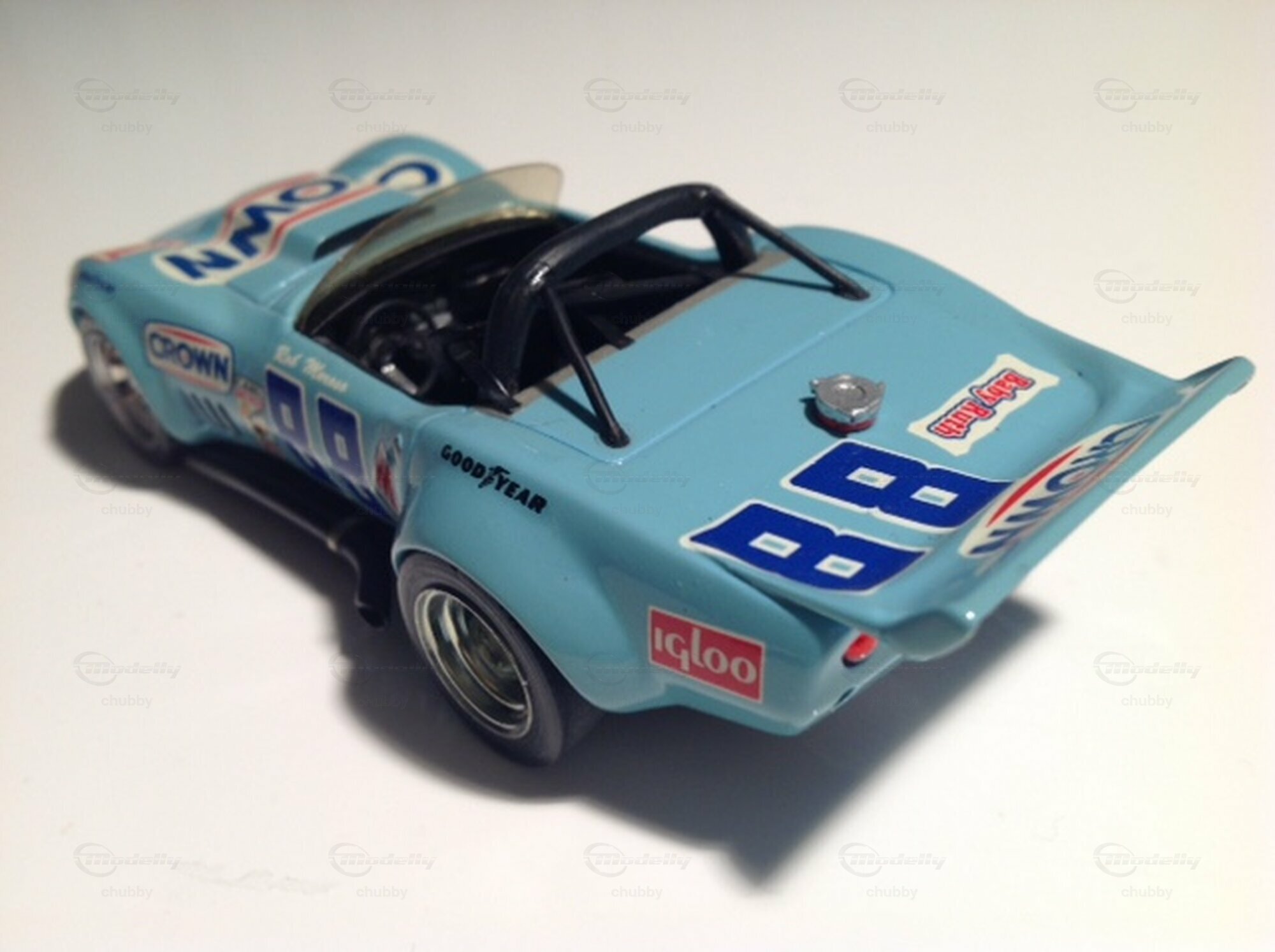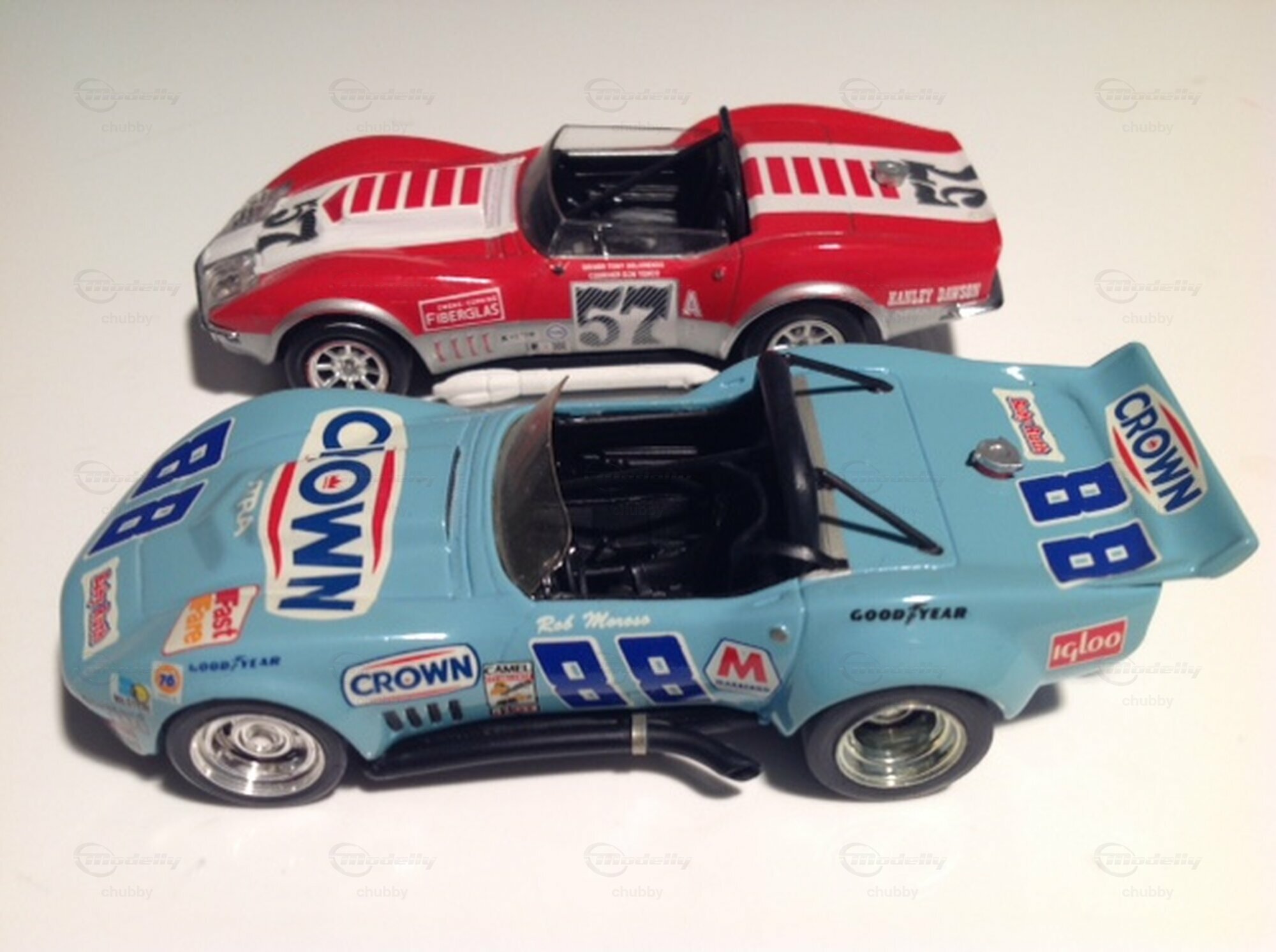 Der Schweizer Andreas Maurer machte aus einem Vitesse-Modell (s. 3. Bild) diesen wunderbaren C3 "Crown" Speedster. Es handelt sich wohl um ein Fantasiemodell. Trotzdem top notch! Zum rot-weissen Speedster von Vitesse: Mit diesem Auto erreichten Dave Heinz und Or Costanzo 1971 in Daytona den zweiten Rang in der GT-Kategorie hinter der bereits gezeigten Owens Corning Vette mit der Nummer 11.