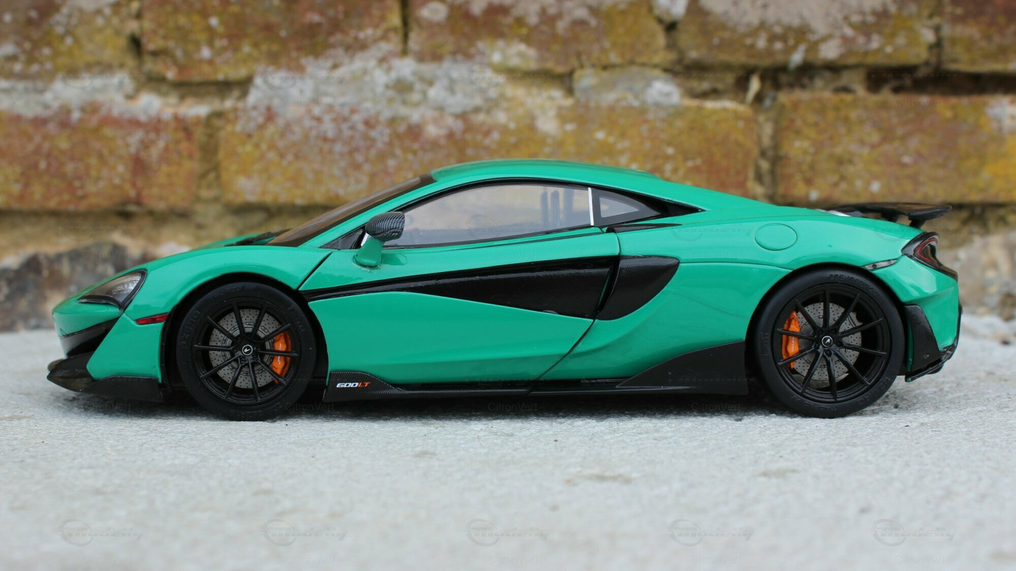 Für alle Modellauto-Sammler präsentiert die Solido-Kollektion eine detailgetreue Nachbildung des McLaren 600LT im 1:18 Maßstab. Dieses Miniaturmodell wird anhand der präzisen Fertigungstechniken von Solido hergestellt und spiegelt die wesentlichen äußeren Merkmale des Originals wider, einschließlich der aerodynamischen Kurven und des markanten Designs. Hergestellt aus Diecast, bietet solch ein Modell eine beeindruckende Detailgenauigkeit und Langlebigkeit. Die grüne Lackierung des Modells entspricht exakt einer der seltenen Serienfarben, welche die wahre Schönheit und Eleganz des McLaren 600LT ausmachen. Die mattschwarzen Akzente an Seitenschwellern und Spiegelgehäusen unterstreichen die aggressive Optik des Fahrzeugs, während die orangefarbigen Bremssättel durch die filigran gestalteten Felgen hindurch sichtbar sind.Beim Anblick der Miniatur von Modelly-Mitglied „CitronVert“ fällt einem sofort die Detailverliebtheit auf, mit der das Modell gefertigt wurde. Ob der feingliedrige Diffusor, die aerodynamischen Elemente aus Kohlefaser oder die präzisen Linienführungen – jede Komponente des Originals wurde präzise nachgebildet. Der Innenraum des Miniaturfahrzeugs ist ebenfalls detailreich und exakt nachgebildet, einschließlich der Sportsitze und des Armaturenbretts, das die Liebe zum Detail von Solido widerspiegelt.