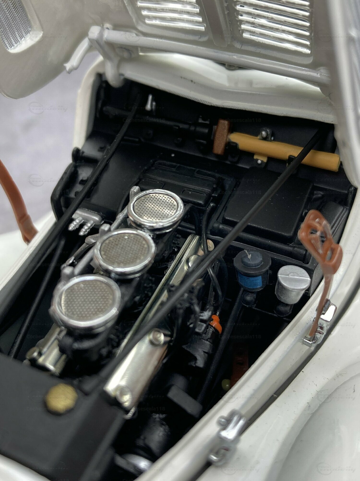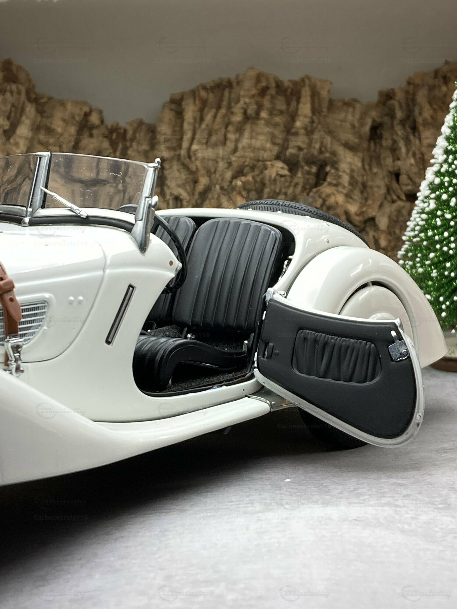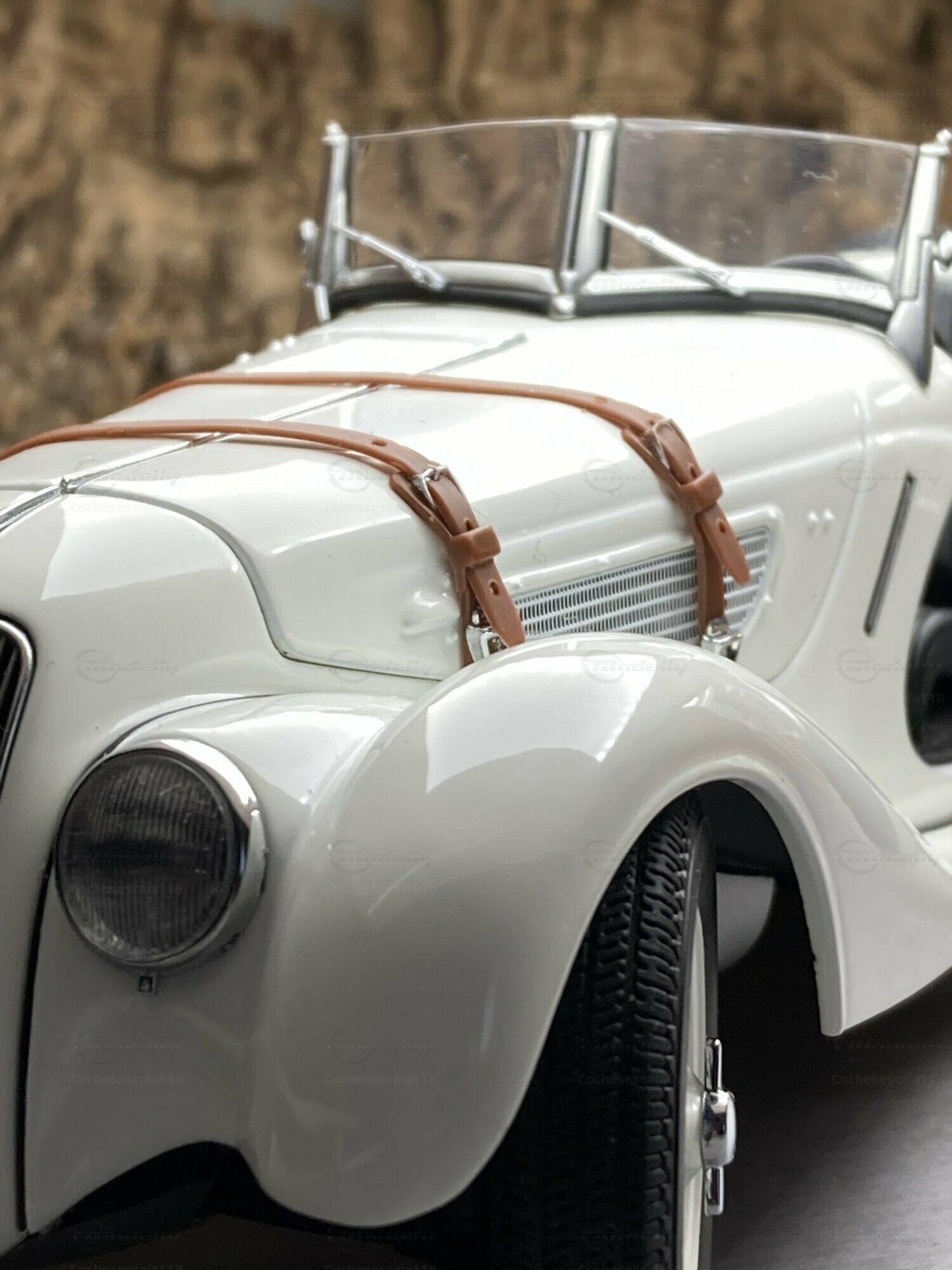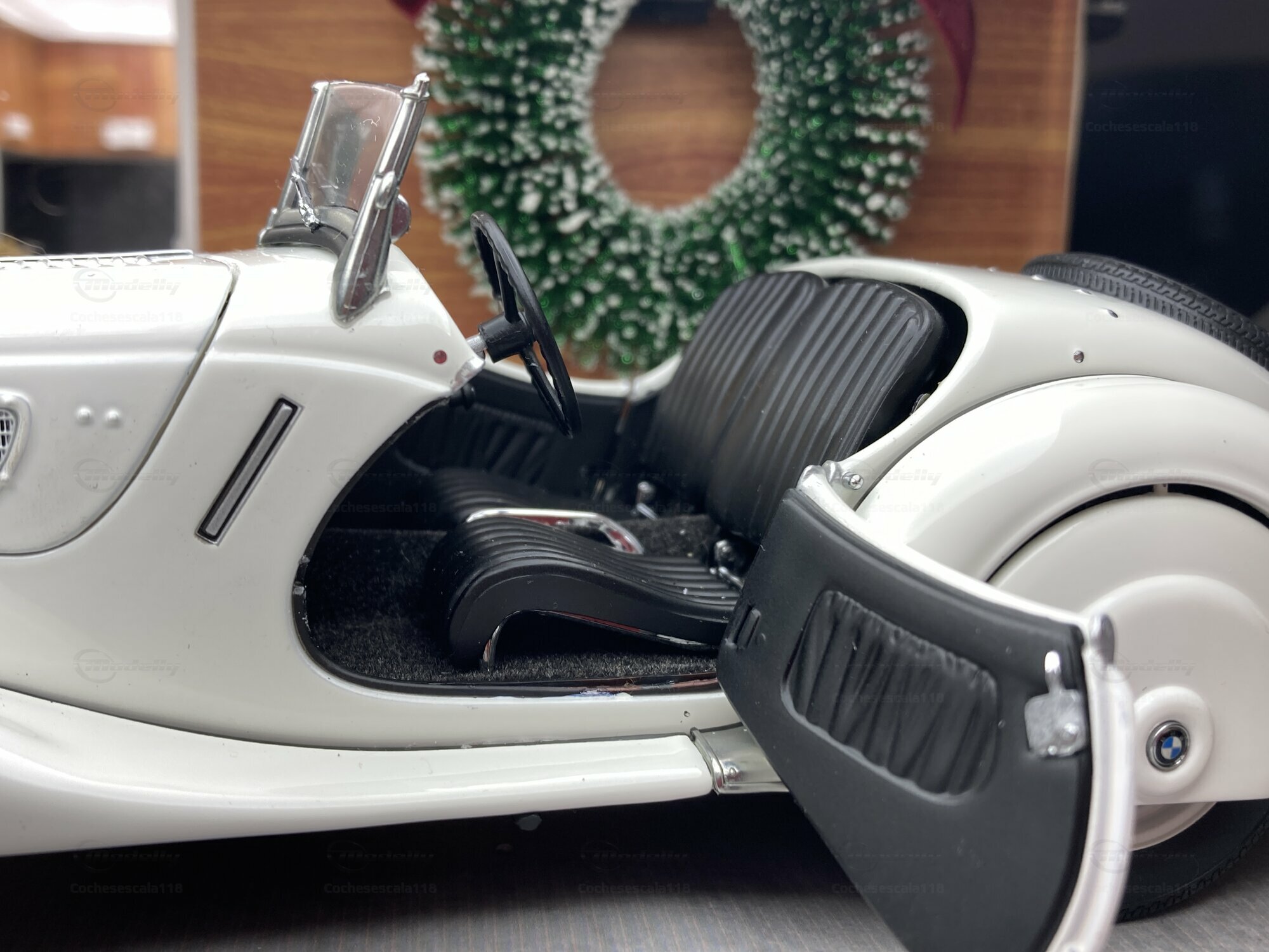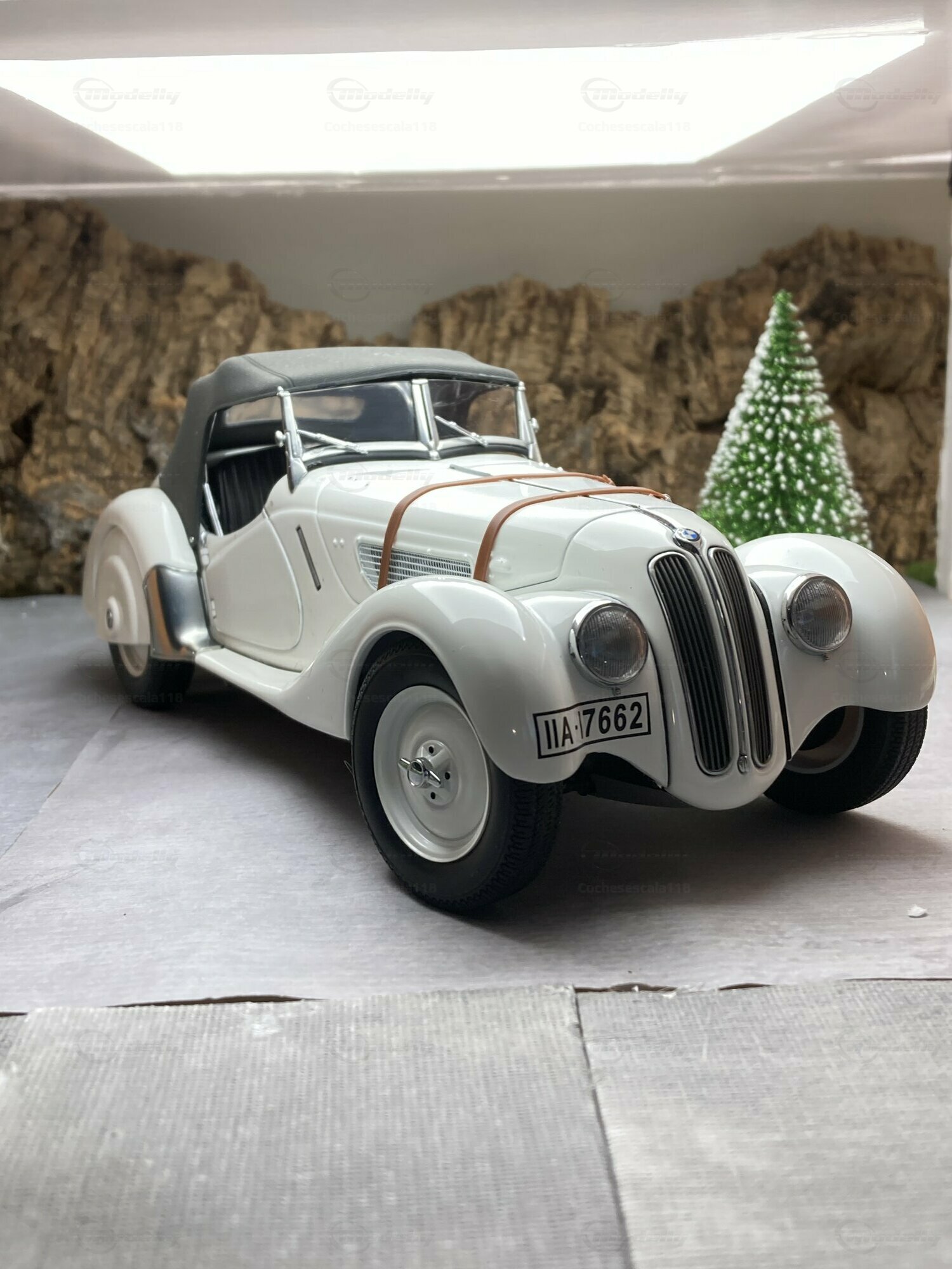 Die gezeigte Miniatur des BMW 328 Roadster, hergestellt von AUTOart im Maßstab 1:18, ist eine detailgetreue Replik des Originalfahrzeugs. Das Modell, das auf den Fotos aus der Sammlung von Modelly-Mitglied "Cochesescala118" zu sehen ist, besteht aus Diecast-Material, das für seine Robustheit und Detailtreue bekannt ist. Die Modellhersteller haben besonders auf die originalgetreuen Details geachtet, einschließlich der Speichenräder, der präzise nachgebildeten Innenausstattung und der akkurat eingefangenen Kurven und Linien der Karosserie. Das Modell ist eine limitierte Edition, was es zu einem begehrten Sammlerstück macht. Vom Kühlergrill über die charakteristischen Rundscheinwerfer bis hin zu den aerodynamisch geschwungenen Formen ist jedes Detail liebevoll und akkurat umgesetzt. Dieses Modell verkörpert nicht nur Oldtimer-Romantik, sondern auch die technologische Meisterleistung der 1930er-Jahre.