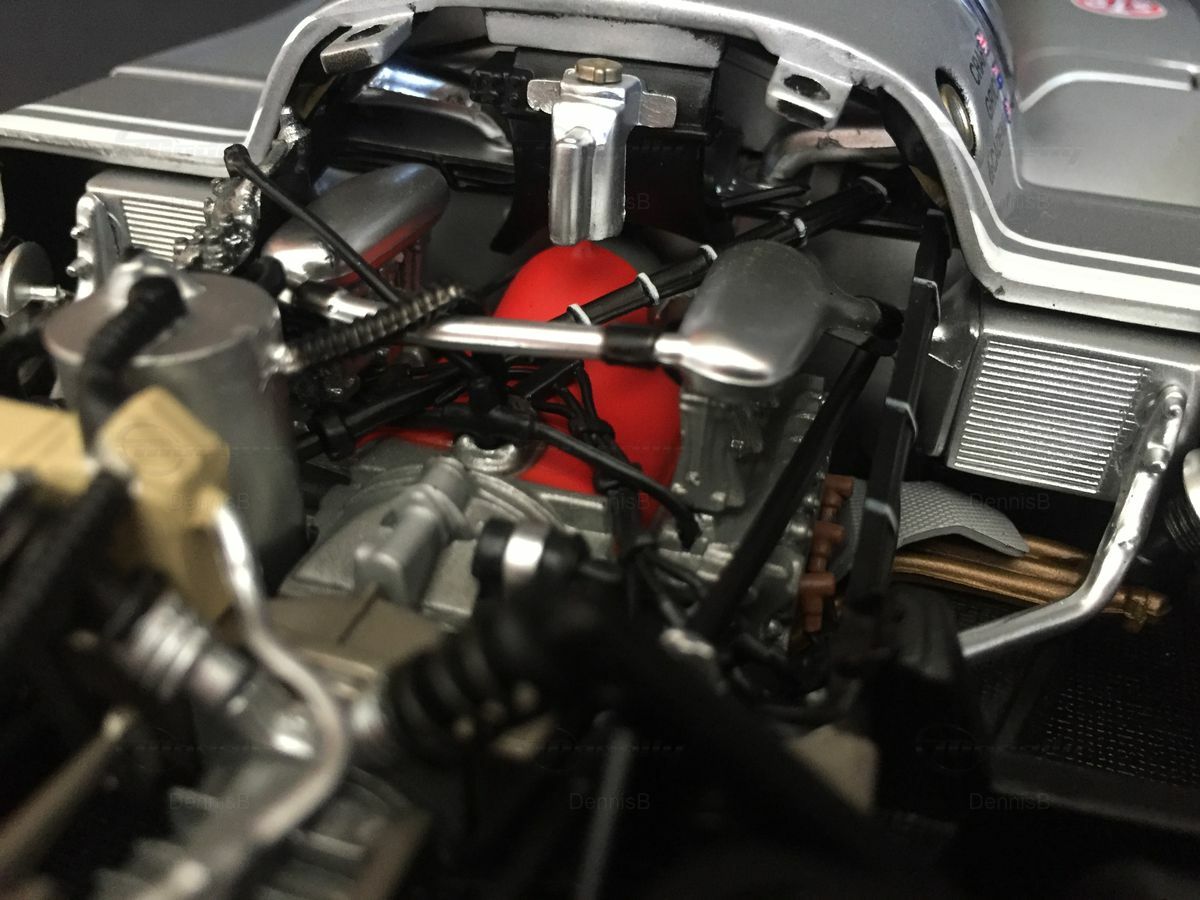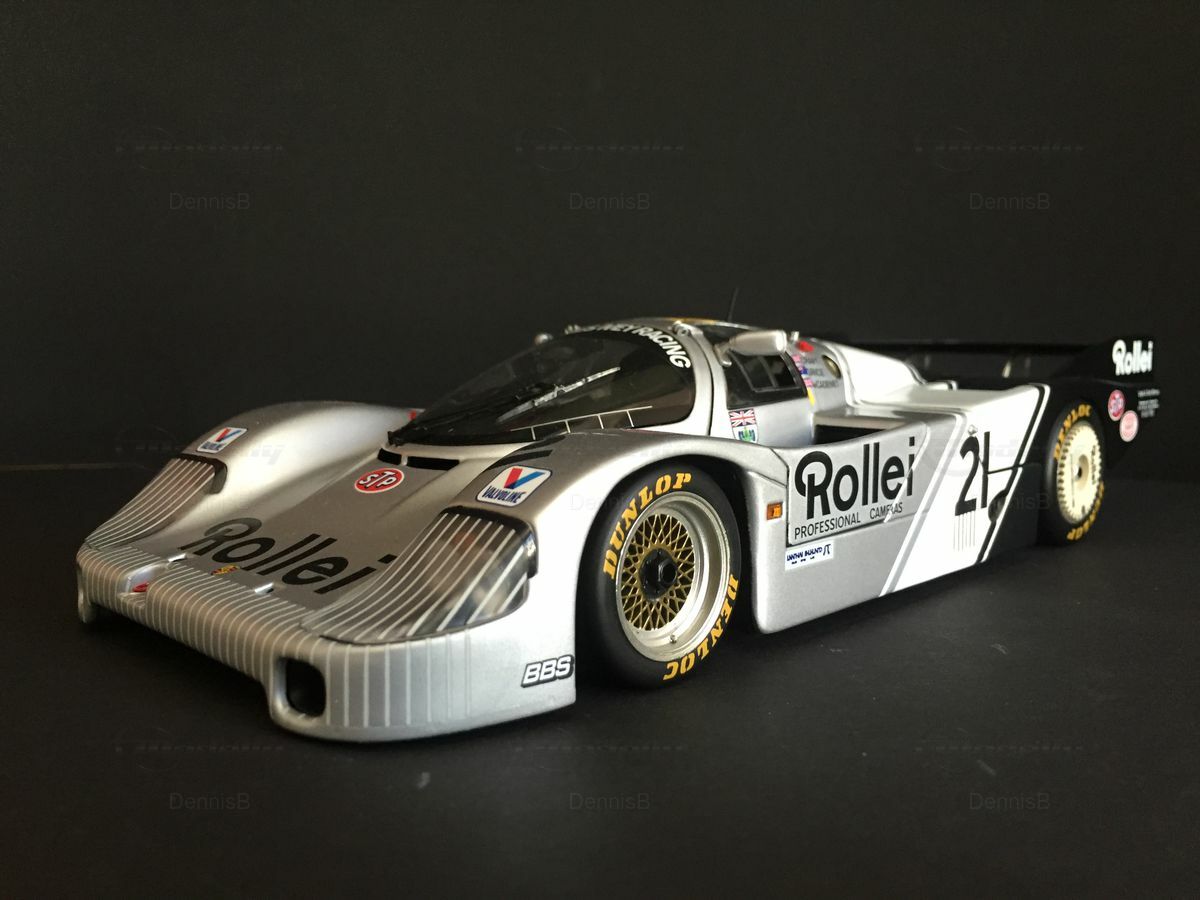 Das Modell zeichnet sich durch seine präzisen Details und hochwertigen Verarbeitung aus, was insbesondere an den feinen Linien und den akribisch umgesetzten Aufklebern erkennbar ist. Die goldfarbenen Felgen mit den Dunlop Logos und die originalgetreue Umsetzung der Karosserie-Elemente, wie der Frontspoiler und die hintere Heckpartie, machen dieses Modell zu einem begehrten Sammlerstück. Insbesondere für Sammler von historischen Rennfahrzeugen stellt dieses Modell eine exquisite Nachbildung eines legendären Rennwagens dar, die dank ihrer Authentizität und ihrer Detailtreue begeistert.