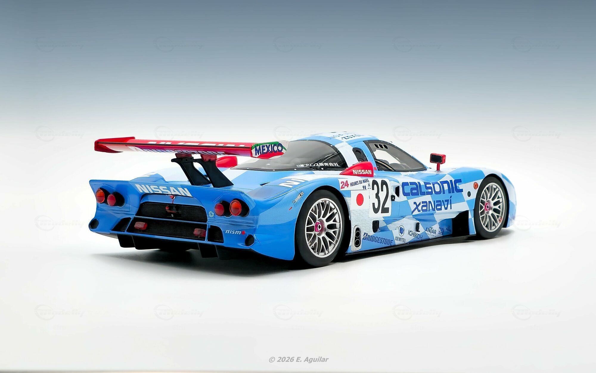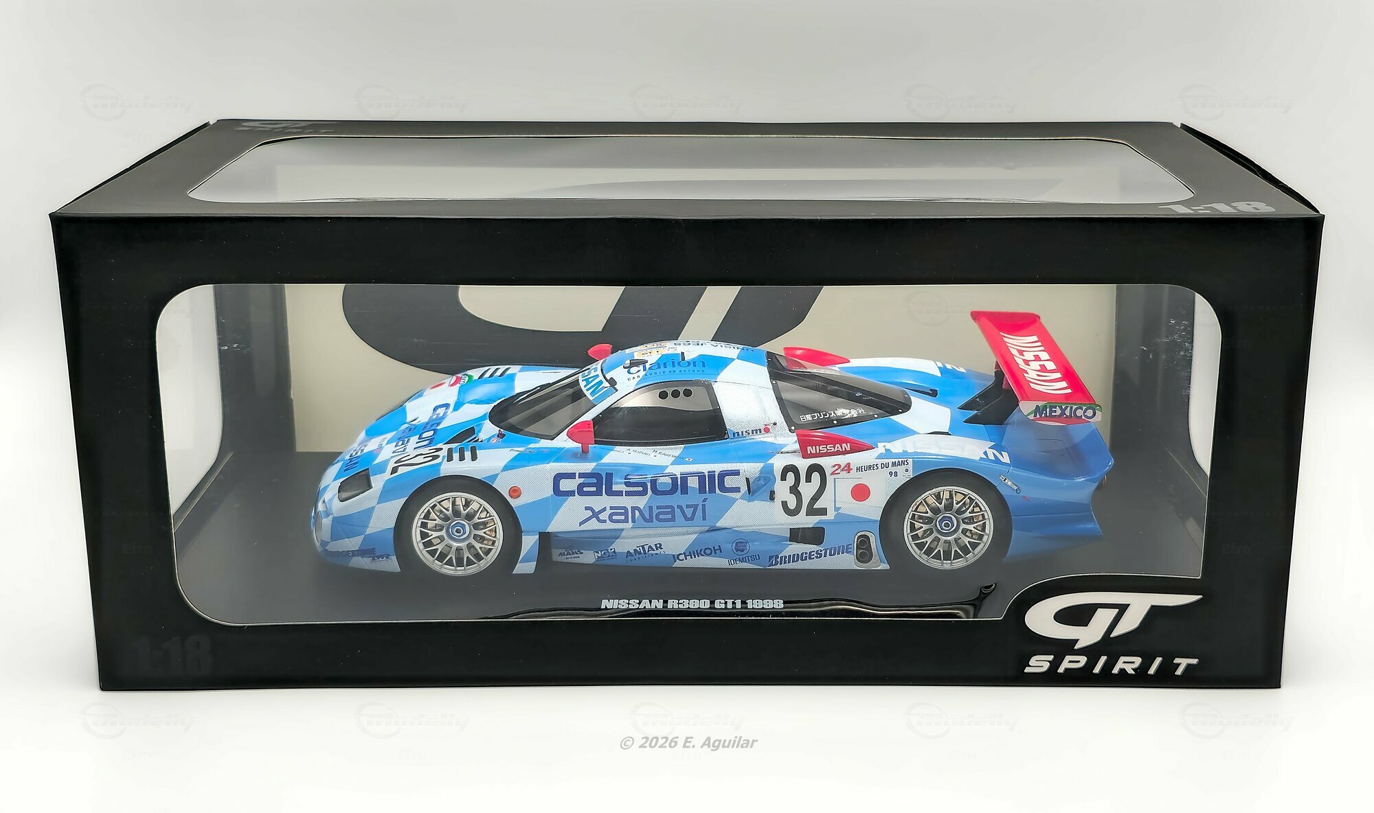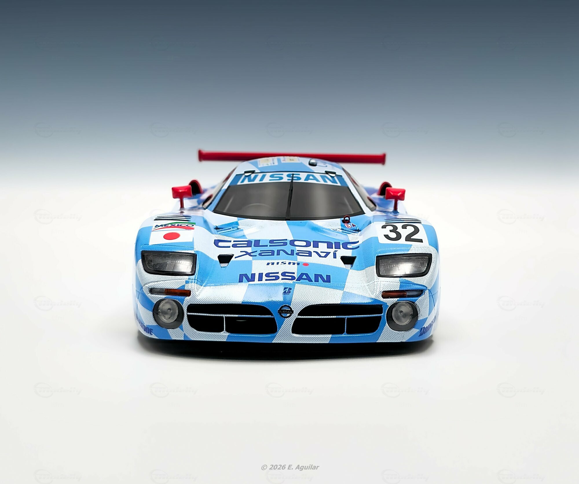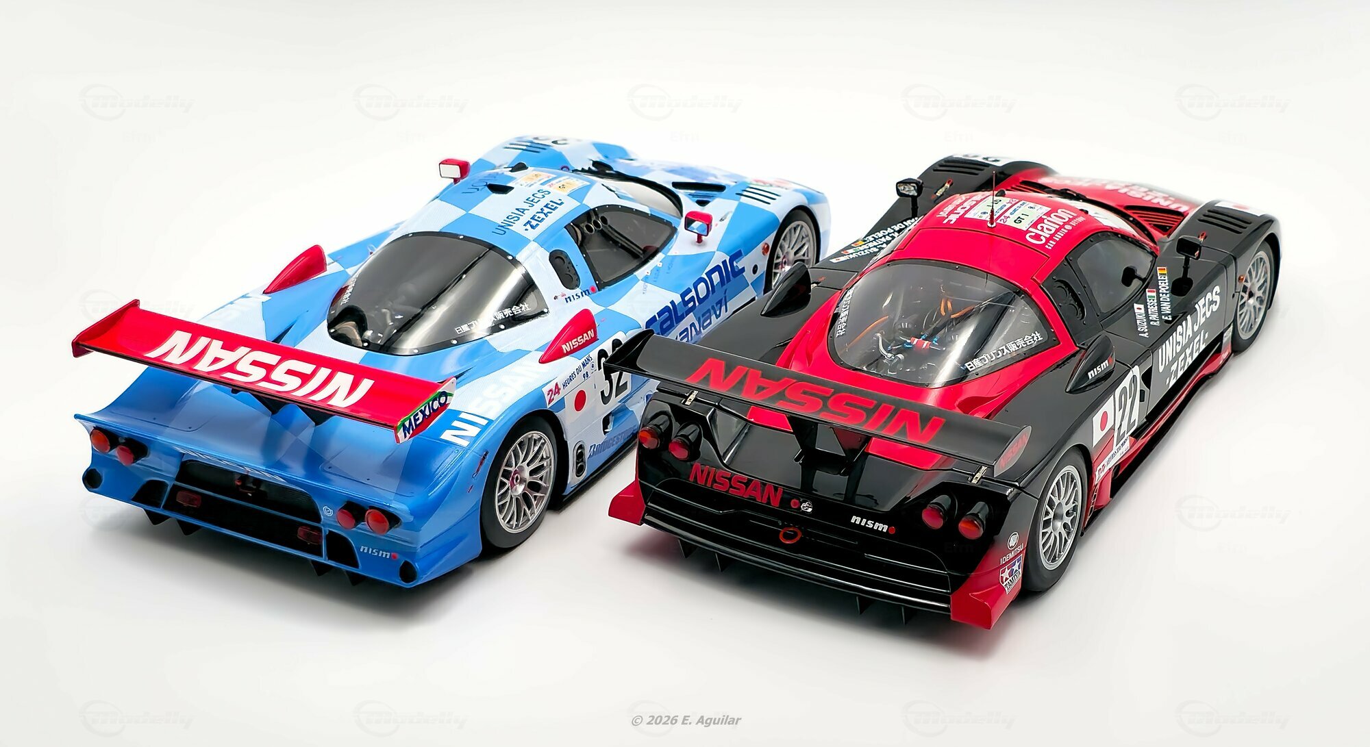 Das hier gezeigte Modell basiert auf dem Rennwagen Nissan R390 GT1, der für den Einsatz in der damaligen GT1-Klasse der 24 Stunden von Le Mans entwickelt wurde. Er entstand aus einer Kooperation von Nismo und Tom Walkinshaw Racing (TWR). Die technische Leitung und Aerodynamik lagen bei Tony Southgate, das Exterieur-Design stammt von Ian Callum. Der Wagen ordnet sich in die kurze Ära der straßenhomologierten GT1-Prototypen ein, die Mitte/Ende der 1990er die Szene prägten. Für die Homologation wurde ein einzelnes straßenzulassungsfähiges Exemplar aufgebaut. Der unmittelbare motorsportliche Vorgänger war der Nissan Skyline GT-R LM, der 1995/1996 in Le Mans startete, jedoch mit seinem turbogeladenen Reihensechszylinder und dem schwereren GT-R-Layout die Performance-Grenzen dieser Basis erreichte. Der Schritt zum reinen Mittelmotor-Carbonchassis des Nissan R390 GT1 war daher konsequent. Offiziell gehört dieses Fahrzeug zur Generation: R390 GT1 und wurde ab 1997 entwickelt und eingesetzt; die Evolutionsstufe für 1998 erhielt weitreichende aerodynamische Änderungen. Die Fotos zeigen das Modell aus der Sammlung des Modelly-Mitglieds „Efrn“.