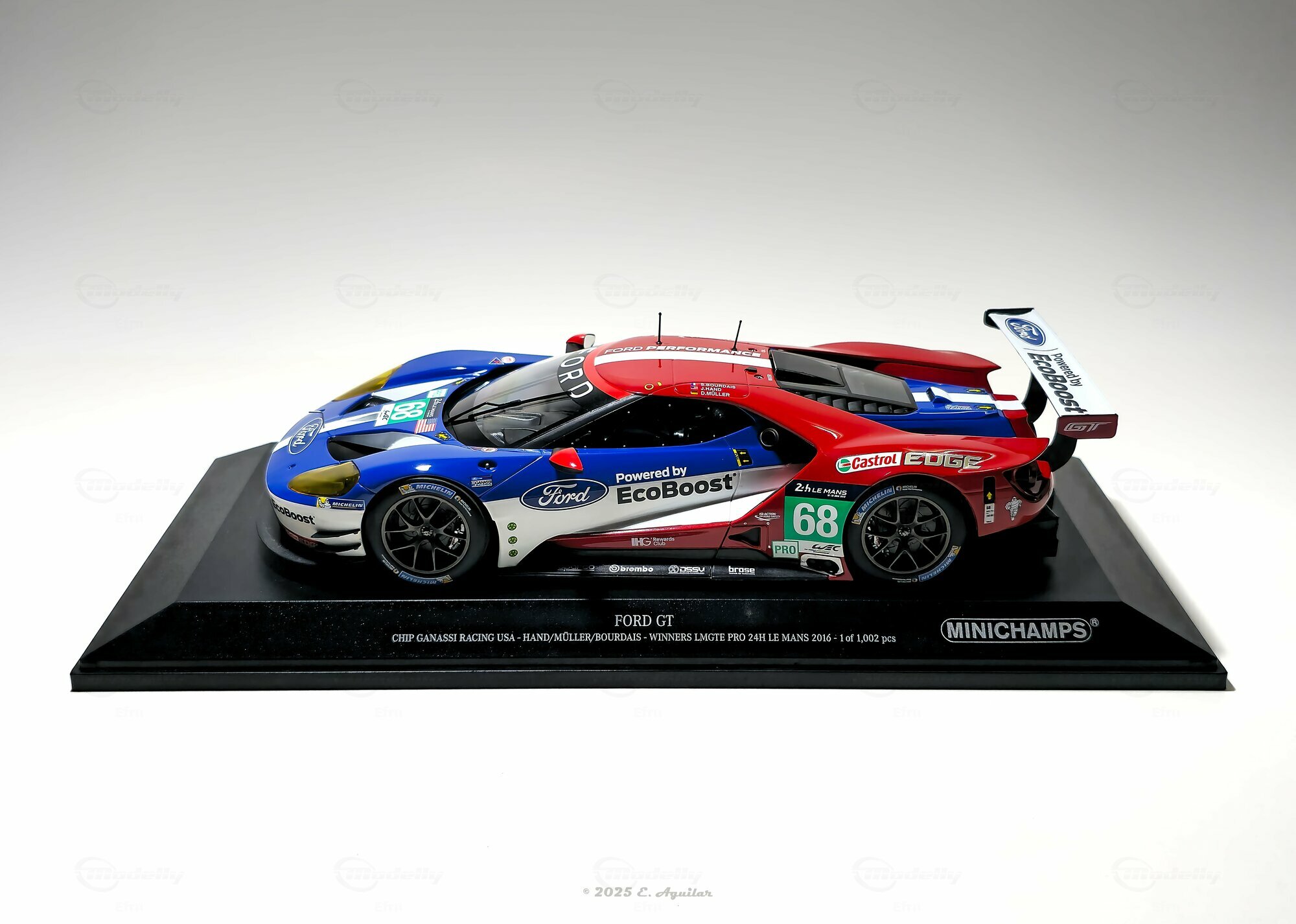 Das erste große Motorsporthighlight des Ford GT Race war sein Sieg in der GTE-Pro-Klasse beim 24-Stunden-Rennen von Le Mans im Jahr 2016 – exakt 50 Jahre nach dem legendären Sieg des Ford GT40. Der Wagen zeigte erneut Fords Expertise im Langstreckenrennsport. Zu den Fahrern, die den Erfolg maßgeblich prägten, gehören Sébastien Bourdais, Joey Hand und Dirk Müller, die das Team Ford Chip Ganassi Racing repräsentierten. Neben dem Triumph in Le Mans konnte der Ford GT Race auch in der IMSA SportsCar Championship und weiteren World Endurance Championship (WEC) Rennen Erfolge einfahren. Hierbei wirkte sich nicht nur die Fahrzeugentwicklung selbst, sondern auch die strategische Expertise von Fords Einsatzteams aus. Durch diese Performance hat sich der Ford GT eine feste Position in der Geschichte des Motorsports erarbeitet.