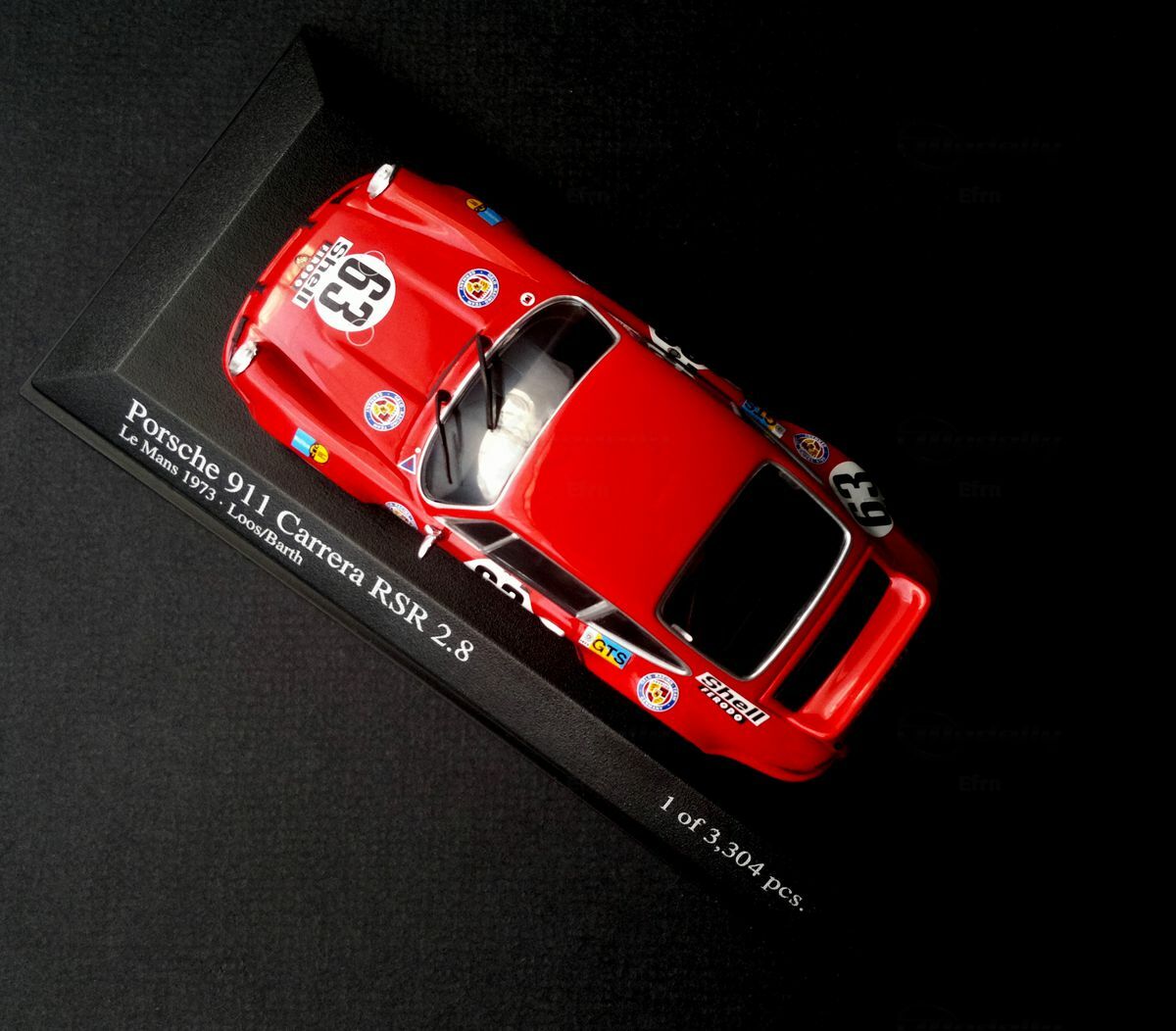 Der berühmte Porsche 911 Carrera RSR 2.8 ist ein Symbol für Motorsportbegeisterung und technologische Spitzenleistung aus den frühen 1970er Jahren. Dieser legendäre Sportwagen gehört zur 911-Generation, die von 1963 bis 1989 gebaut wurde. Entwickelt für den Renneinsatz, besticht das Fahrzeug durch seine außergewöhnliche Leistung und seine charakteristische, aerodynamische Silhouette. Der Porsche 911 Carrera RSR 2.8 war eine direkte Weiterentwicklung des Porsche 911, entworfen von dem renommierten Designer Ferdinand Alexander Porsche und den Ingenieuren Hans Mezger und weiteren Experten des deutschen Automobilherstellers.Minichamps, ein angesehener Hersteller von Modellautos in 1:43-Maßstab, hat eine präzise diecast Miniatur aus dieser ikonischen Ära reproduziert. Diese detailgetreue Nachbildung ist Teil der Sammlung des Modelly-Mitglieds "Efrn" und richtet sich an Sammler und Liebhaber gleichermaßen. Auf den Fotos ist klar erkennbar, mit welcher Sorgfalt und Präzision Minichamps dieses Modell gefertigt hat.