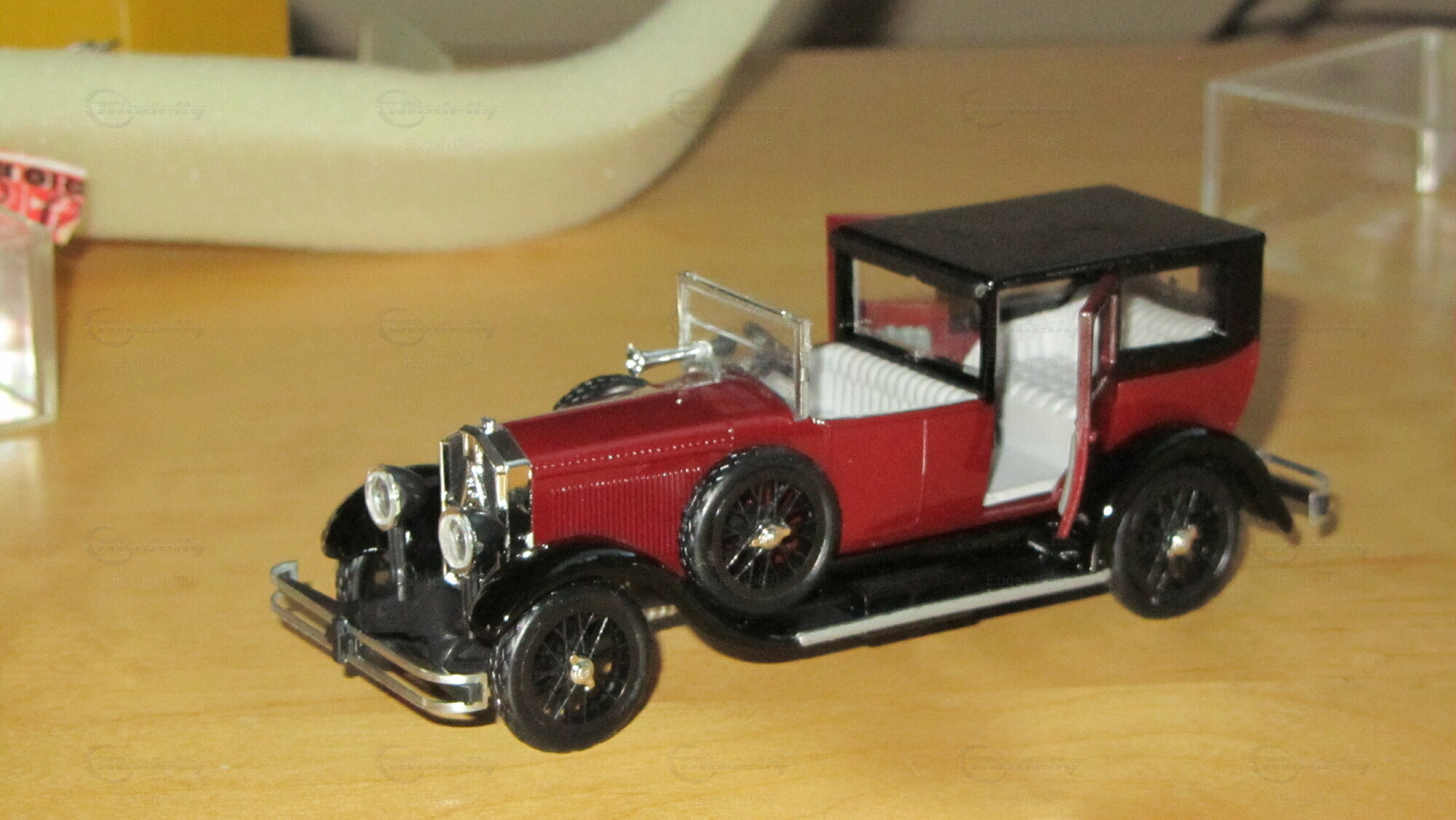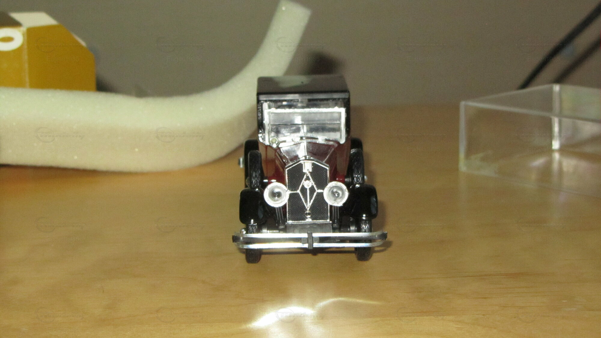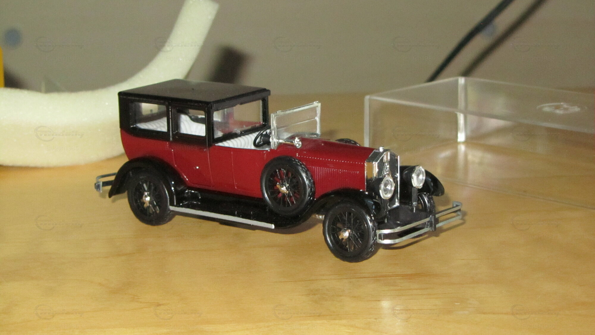 Dieses Modellauto im Maßstab 1:43 von Rio Models ist ein perfektes Beispiel für präzise Modellbaukunst. Der Modellbauer hat die spezifischen Details des Originals sorgfältig nachgebildet, einschließlich der markanten roten Lackierung und des schwarzen Dachs. Die Miniatur besteht aus hochwertigem Druckguss (diecast) und zeigt filigrane Details wie die authentischen Speichenräder und die präzise gefertigten Scheinwerfer. Die Frontansicht zeigt die ikonische Kühlerfigur und die glänzenden Chromakzente, die das Luxusgefühl des Originals widerspiegeln. Diese Miniatur von Rio Models gehört zur Sammlung von Modelly-Mitglied "Eugen1985" und ist ein wertvolles Sammlerstück, das jedem Detail gerecht wird.