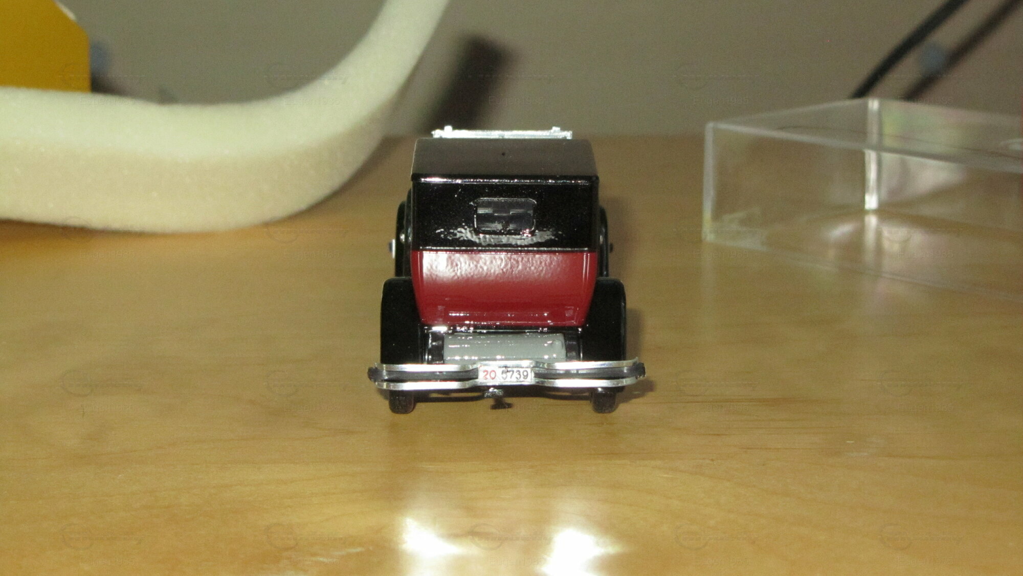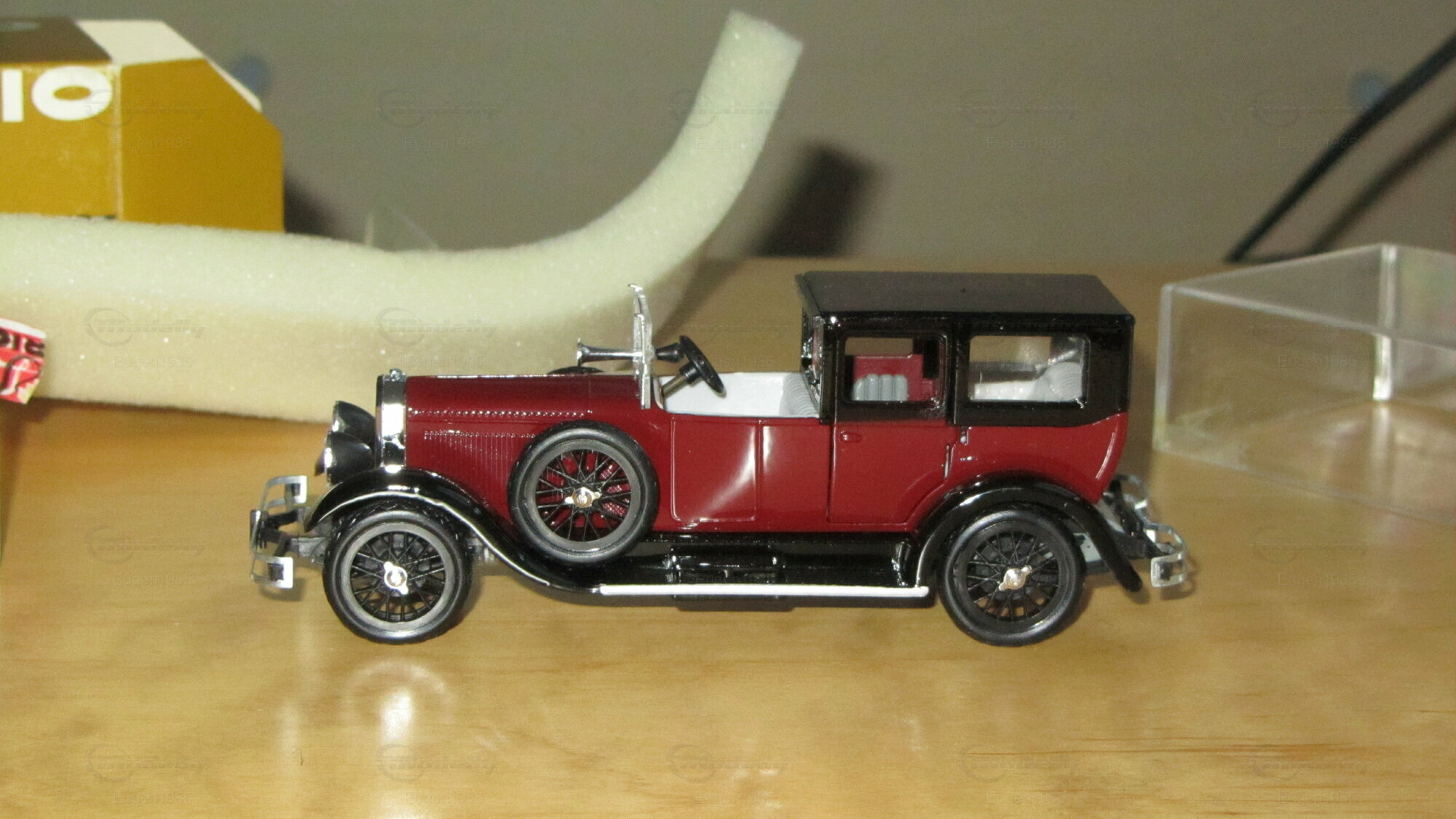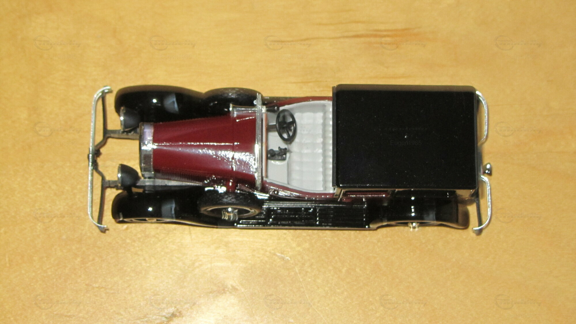 Dieses Modellauto im Maßstab 1:43 von Rio Models ist ein perfektes Beispiel für präzise Modellbaukunst. Der Modellbauer hat die spezifischen Details des Originals sorgfältig nachgebildet, einschließlich der markanten roten Lackierung und des schwarzen Dachs. Die Miniatur besteht aus hochwertigem Druckguss (diecast) und zeigt filigrane Details wie die authentischen Speichenräder und die präzise gefertigten Scheinwerfer. Die Frontansicht zeigt die ikonische Kühlerfigur und die glänzenden Chromakzente, die das Luxusgefühl des Originals widerspiegeln. Diese Miniatur von Rio Models gehört zur Sammlung von Modelly-Mitglied "Eugen1985" und ist ein wertvolles Sammlerstück, das jedem Detail gerecht wird.