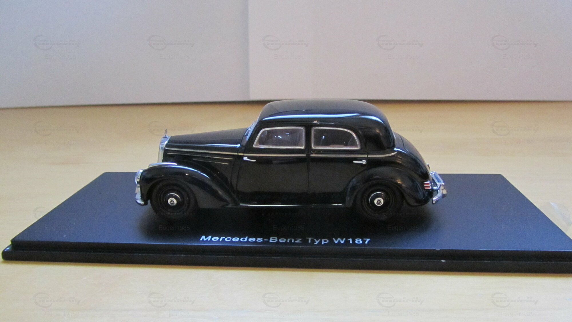 Der Mercedes-Benz 220S Limousine Typ W187 im Maßstab 1:43 von Spark Model beeindruckt nicht nur durch seine äußerliche Detailtreue, sondern auch durch seine hohe Qualität und Genauigkeit im Bezug auf das Original. Das dunkle Schwarz der Lackierung mit glatten und glänzenden Oberflächen, kombiniert mit den silbernen Zierleisten, verleiht dem Modellauto einen Hauch von Luxus. Die Miniatur verfügt über die Beschriftung der Nummernschilder, was dem Modell einen authentischen Look gibt. Besonders detailreich sind die Nachbildungen der Rückleuchten und der fein gearbeiteten Radkappen, was die Raffinessen des Originalmodells wiederspiegelt. Diese Miniatur ist ein echter Hingucker in der Sammlung von Modelly Mitglied "Eugen1985" und stellt eine bemerkenswerte Ergänzung jeder Modellautosammlung dar, insbesondere für Fans und Kenner der Marke Mercedes-Benz und historischer Fahrzeuge der 1950er Jahre.