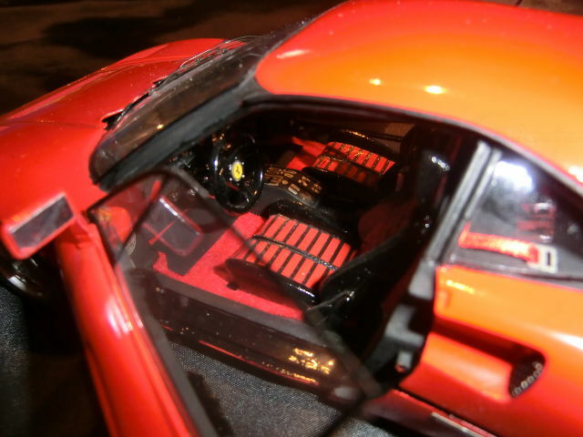 Dieses Modell des Ferrari 288 GTO von Bburago im Maßstab 1:18 gehört zur Sammlung des Modelly-Mitglieds “ferri599”. Es stellt eine äußerst detaillierte und sorgfältig gearbeitete Miniatur dar. Hierbei handelt es sich um eine modifizierte Miniatur, die nicht das Produkt repräsentiert, das ursprünglich von Bburago hergestellt wurde. Zu den sichtbarsten Details gehören die sorgfältig nachgebildeten Lüftungsgitter auf der Motorhaube und den Kotflügeln sowie die umfangreich ausgestalteten Felgen und Bremsen. Besonders beachtenswert ist der Innenraum mit seiner deutlich erkennbaren rot-schwarzen Farbgebung, die Sitze und Armaturen des Originals genau imitiert. All diese Merkmale machen dies zu einem hochgeschätzten Sammlerstück unter Modellbau-Enthusiasten weltweit.