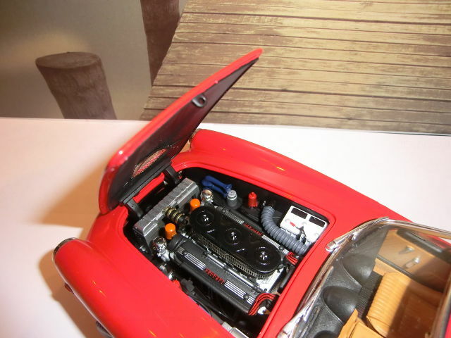 Das Modellauto im Maßstab 1:18, hergestellt von Hot Wheels Elite, besticht durch zahlreiche akkurate Details, wie zum Beispiel die realistisch nachempfundene Lederausstattung und den detaillierten Motorraum. Der Lack ist in einem glänzenden Ferrari-Rot gehalten, das dem Original nachempfunden und für seine lebendige Farbpracht bekannt ist. Die Speichenräder sind hervorragend reproduziert und verstärken die Authentizität der Miniatur. Trotz der geringen Größe sind alle Teile des Fahrzeugs, wie die Chromteile und das Emblem, präzise nachgebildet. Diese Miniatur ist nicht nur ein exzellentes Beispiel für Modellbaukunst, sondern auch ein wertvolles Sammlerstück für Automobilenthusiasten weltweit. Die Schönheit des Modells ist unbestreitbar und verdeutlicht die Hingabe zu Detail und Qualität, die bei der Herstellung verwendet wurden.
