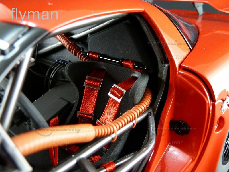 Das Modellauto ist Teil der Sammlung von "flyman" bei Modelly und zeigt die höchste Liebe zum Detail. Die Lackierung des Modells zeigt ein makelloses, leuchtend rotes Finish, das die glatten und fließenden Linien des Originals unterstreicht. Auf der Motorhaube und Seiten sind auch kleinere Details wie die Verschlüsse der Motorhaube und die Belüftungsschlitze klar erkennbar. Der Innenraum des Modells ist ebenso detailliert, mit sichtbaren Rennsitzen, Lenkrad und Instrumententafel. Diese klaren und teuren Details machen es zu einem Highlight jeder Modellsammlung und verleihen dem Sammler das Gefühl, ein echtes Stück Rennsportgeschichte in den Händen zu halten. Das Modell symbolisiert nicht nur die Leistung und Ingenieurskunst der Chevrolet Corvette C5-R, sondern auch die hervorragende Handwerkskunst von GMP im Maßstab 1:12.