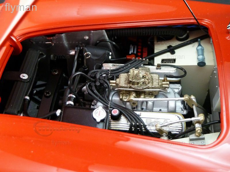 Die beiden roten Cobras unterscheiden sich nur durch die Knebel auf der Motorhaube und den Motor
