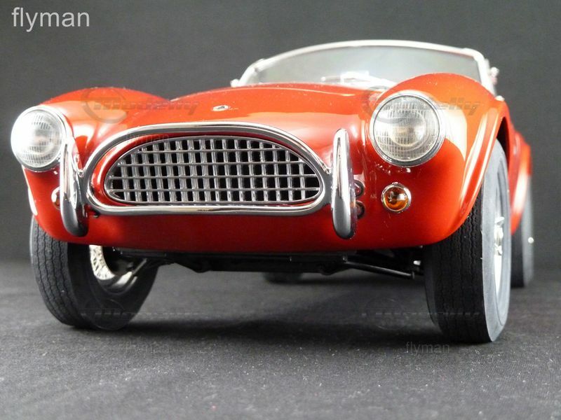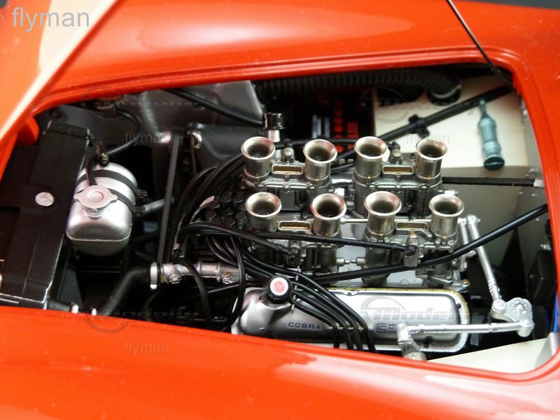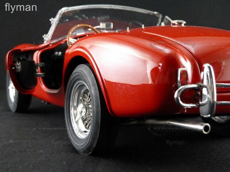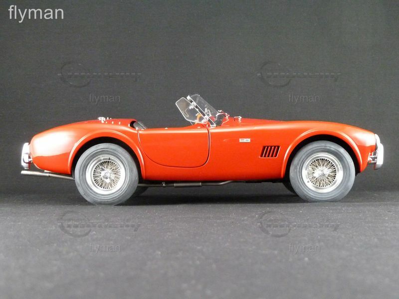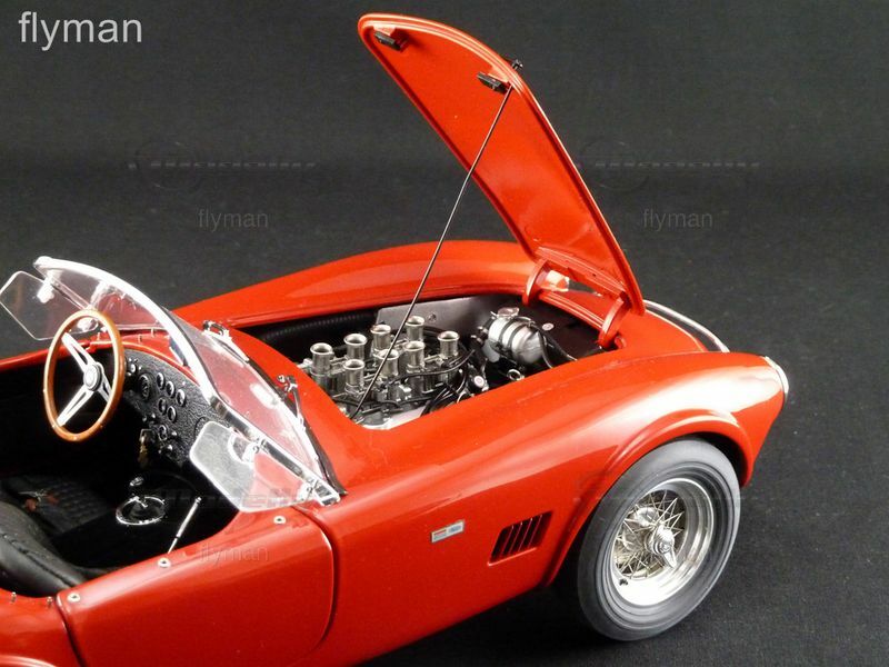 Das hier gezeigte Modell wurde von GMP im 1:12 Maßstab gefertigt und gehört zur Sammlung von Modelly-Mitglied "flyman". Dieses Modell ist ein präzise gefertigtes Abbild des Shelby Cobra 289 und glänzt durch zahlreiche Details. Die rot lackierte Karosserie des Modells hebt sich besonders hervor und ist ein echter Hingucker. Auffällig sind die akkurat nachgebildeten Stoßstangen, Außenspiegel und Scheibenwischer, die die Originalität und Detailtreue des Modells unterstreichen.