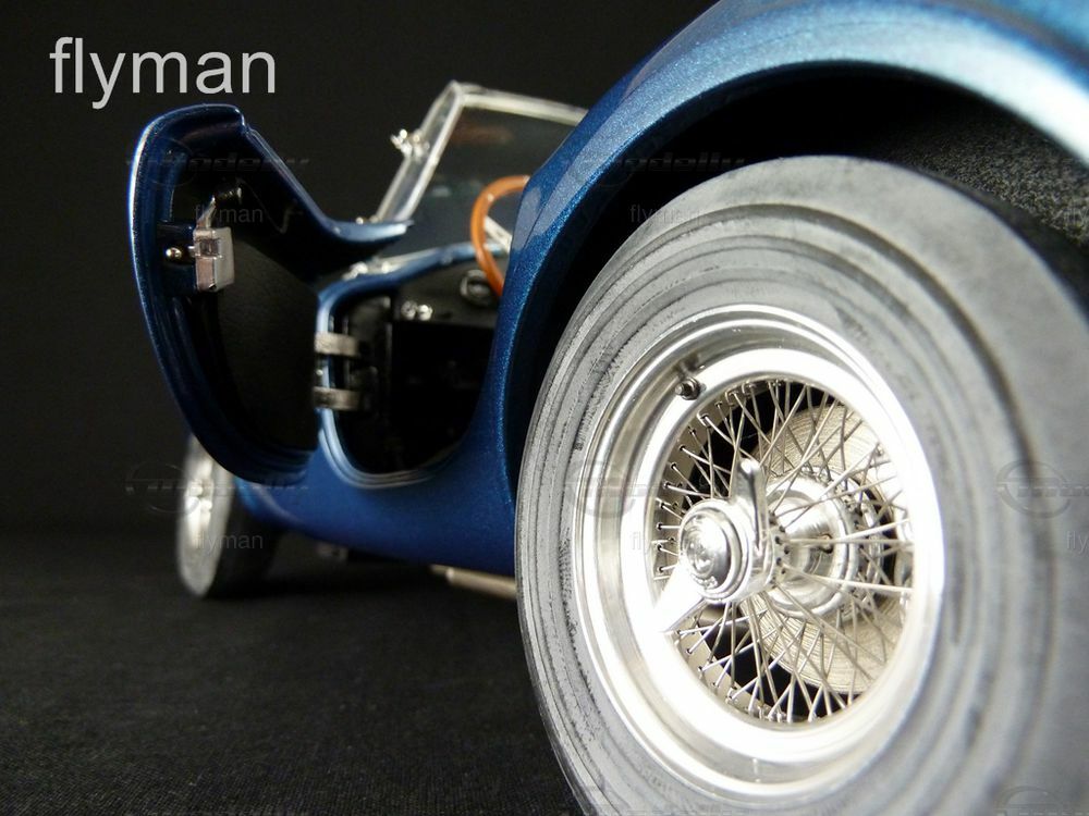 Das gezeigte Modell, welches in der Sammlung von Modelly-Mitglied "flyman" zu finden ist, repräsentiert die Schönheit und Präzision, für die GMP bekannt ist. Die Miniatur besticht durch filigrane Details wie den akkurat nachgebildeten Kühlergrill und die authentischen Scheinwerfer. Die Lackierung in Metallic-Blau unterstreicht die zeitlose Eleganz und die sportliche Natur des Fahrzeugs. Klar erkennbar sind auch die markanten Rundungen der Karosserie und die Speichenräder, die typisch für die Fahrzeuge dieser Ära sind. Die liebevoll gestalteten Sitze und das Armaturenbrett im Innenraum sind weitere Highlights, die dieses Modell für Sammler attraktiv machen. Durch die Wahl von Diecast als Baumaterial wird die Robustheit und Haltbarkeit des Modells gewährleistet, was das Sammelobjekt zu einem langlebigen Begleiter in jeder Sammlung macht.