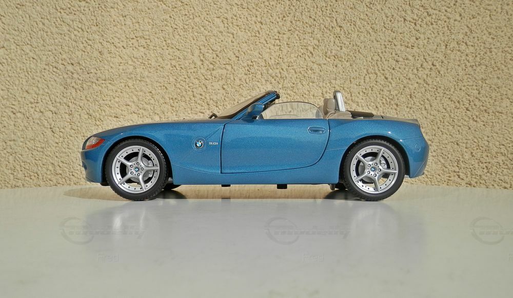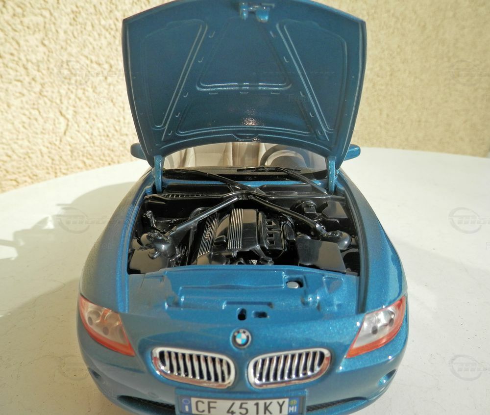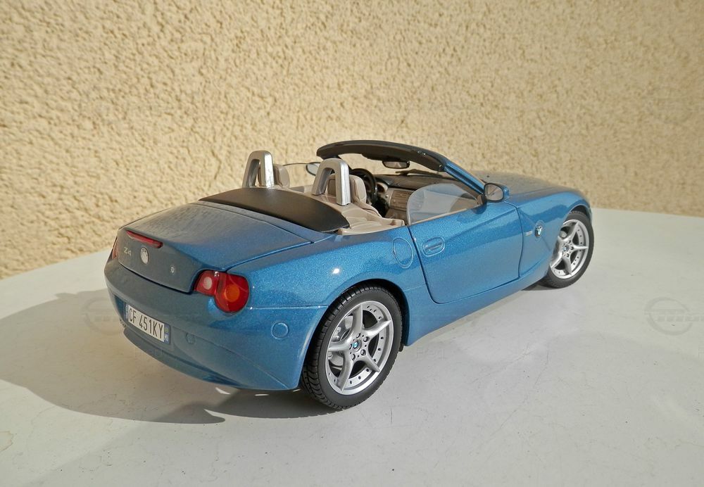 Für Sammler von Fahrzeugminiaturen ist das Modell des BMW Z4 im Maßstab 1:18 von Bburago ein Highlight. Die Miniatur aus dem Hause Bburago wurde aus hochwertigem Diecast-Material gefertigt und besticht durch ihre Detailtreue. Besonders auffällig ist die präzise Nachbildung der scharfen Linien und Kurven des Originals, was die Handwerkskunst des Herstellers verdeutlicht. Die Funktionsteile wie die Türen und die Motorhaube lassen sich öffnen, um Einblicke in das fein detaillierte Interieur und den Motorraum zu gewähren. Eine Besonderheit ist die authentische Lackierung in einem metallischen Blau, die dem Modell einen eleganten und sportlichen Look verleiht. Das Fahrzeug trägt originalgetreu BMW-Logos und andere Markenzeichen, die im Maßstab 1:18 präzise nachgebildet wurden.