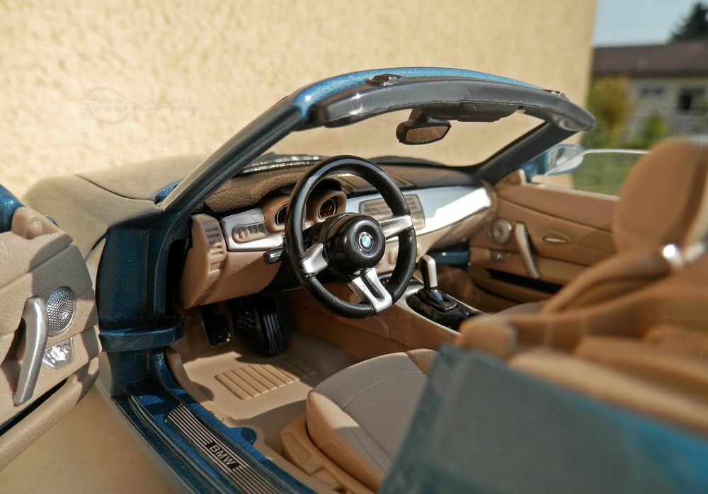 Dieses Modellauto ist nicht nur ein exaktes Abbild des echten BMW Z4, sondern auch ein wertvolles Sammlerstück. Sammler wie das Modelly-Mitglied "Fred" schätzen die Qualität und die Detailverliebtheit dieses Modells, das perfekt jeden Raum oder Vitrine bereichert. Die klaren und gut definierten Kanten, die fein ausgearbeiteten Scheinwerfer und die detaillierten Felgen machen das Modell zu einem echten Hingucker. Die silbernen Felgen lehnen sich stark an das Originaldesign an und komplettieren das sportliche Gesamterscheinungsbild des Modells. Zudem trägt das Fahrzeug Kennzeichen und Details, die es noch realistischer wirken lassen. Die Liebe zum Detail, die in dieses Diecast-Modell einfloss, macht es zu einem begehrten Stück unter Sammlern weltweit.
