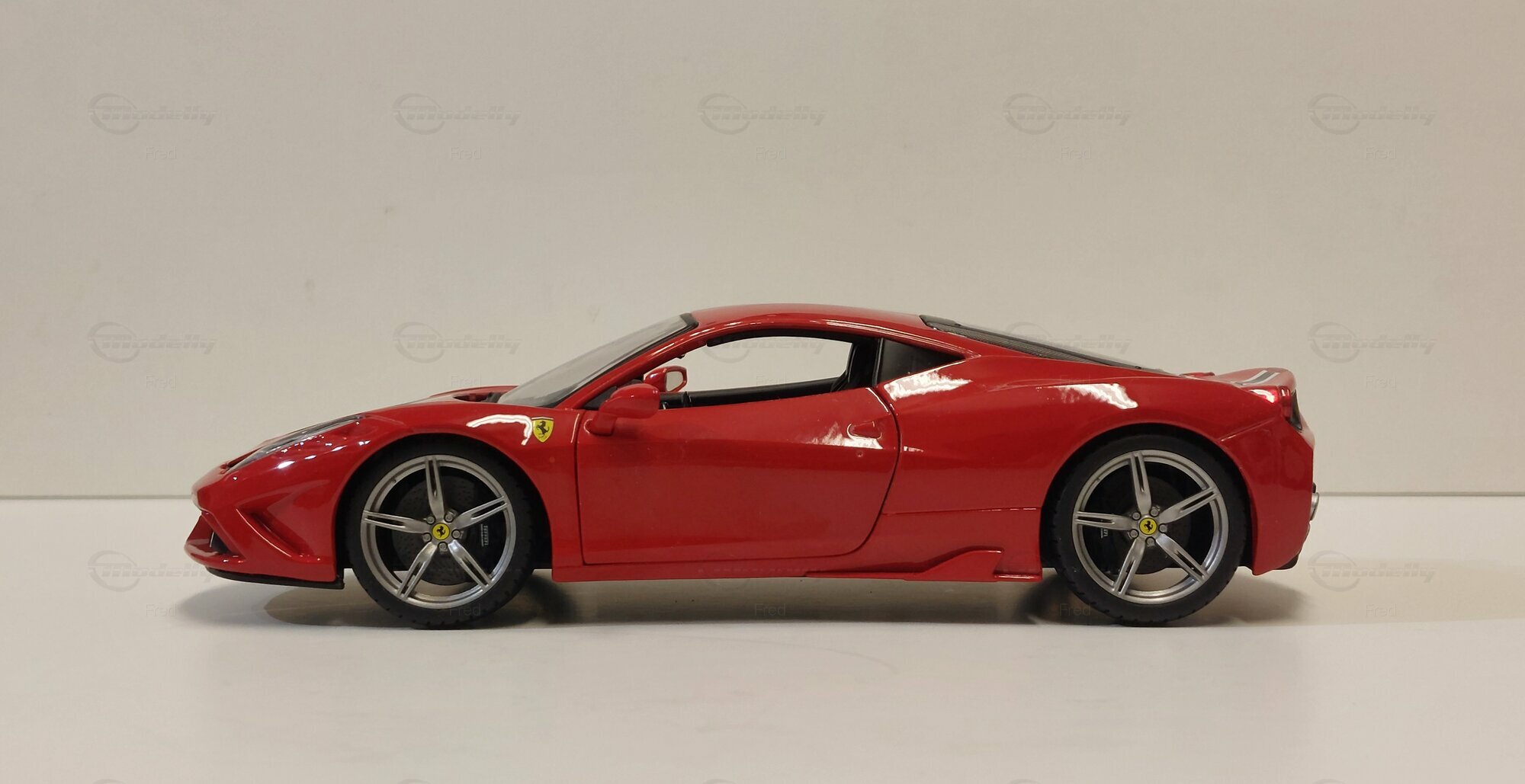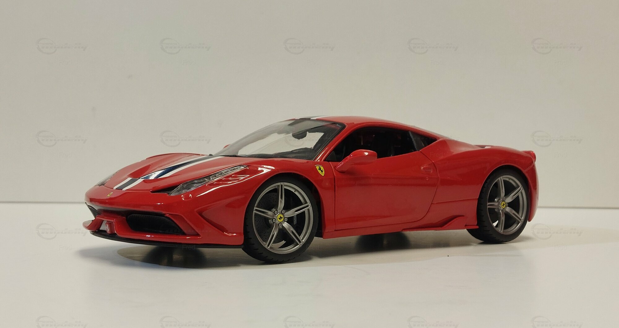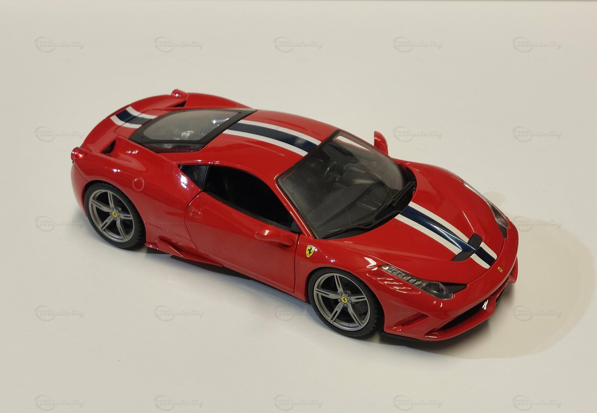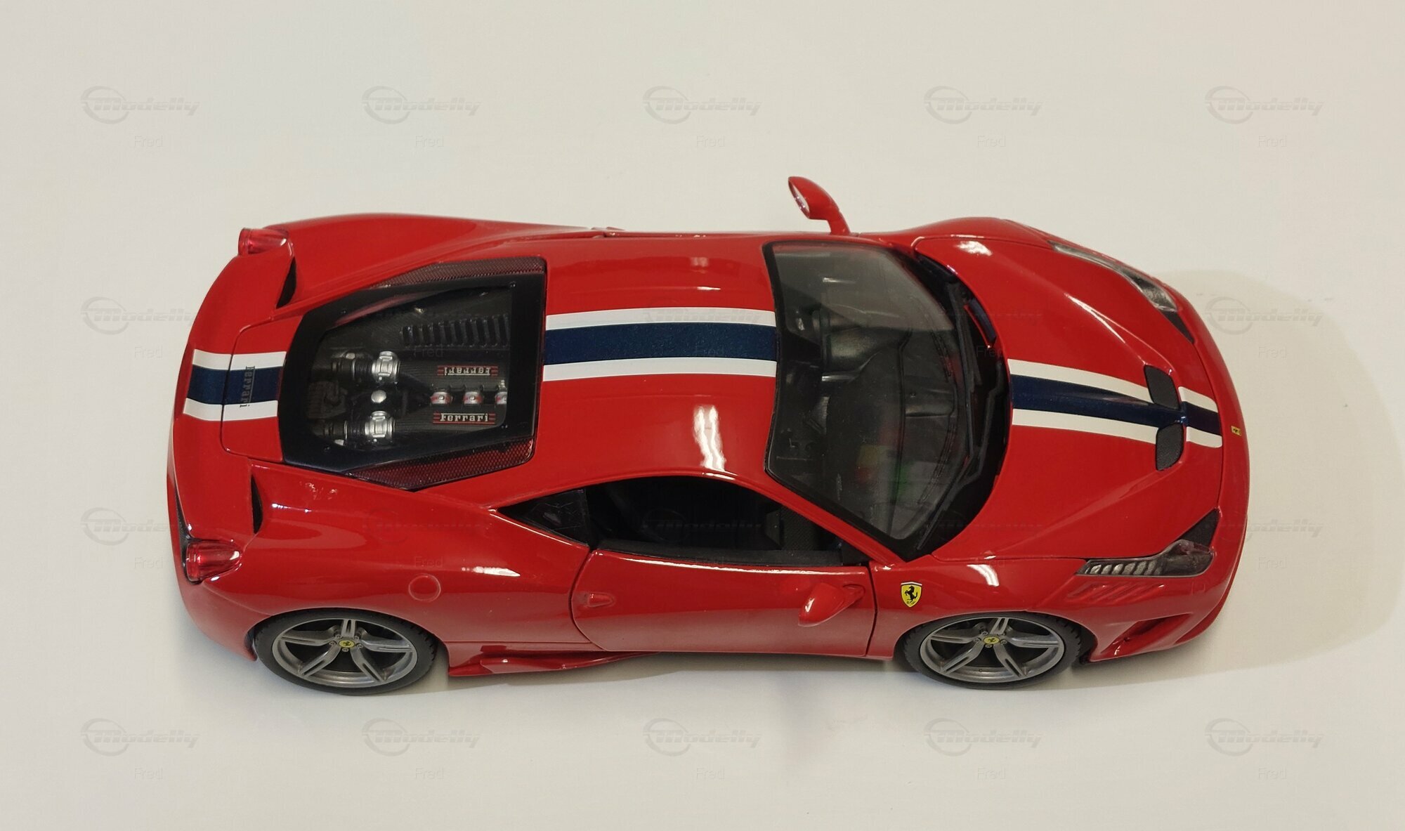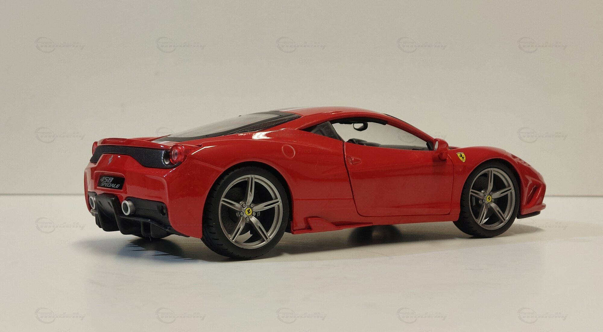 Das Modell basiert auf dem 458 Italia, zeichnet sich jedoch durch eine betont sportliche Ausstattung aus. Äußerlich wurden die Front- und Heckschürzen verändert, an den Flanken befinden sich kleine Luftleitbleche vor den hinteren Radausschnitten. Der Innenraum kommt ohne Teppiche aus und weist viel Carbon-Material und Alcantara auf. Während das Leergewicht auf 1405 kg reduziert werden konnte, wurde die Motorleistung bei einem unveränderten Hubraum von 4,5 l auf 445 kW (605 PS) gesteigert. Als weltweit erstes Fahrzeug verfügt der 458 Speciale über eine Driftwinkelsteuerung. Das Side Slip Angle Control System (SSC) erkennt durch Auswerten von (unter anderem) Lenk- und Driftwinkel sowie Fahrpedalstellung, ob der Fahrer am Kurvenausgang übersteuernd herausbeschleunigen möchte und regelt diesen Fahrzustand trotz aktiviertem ESP ein.