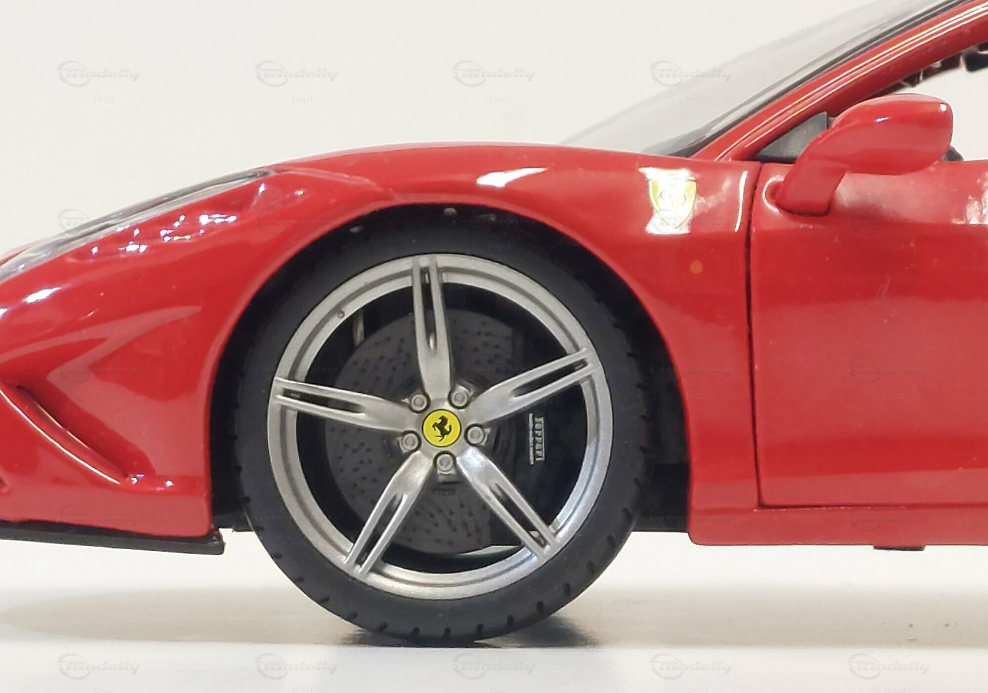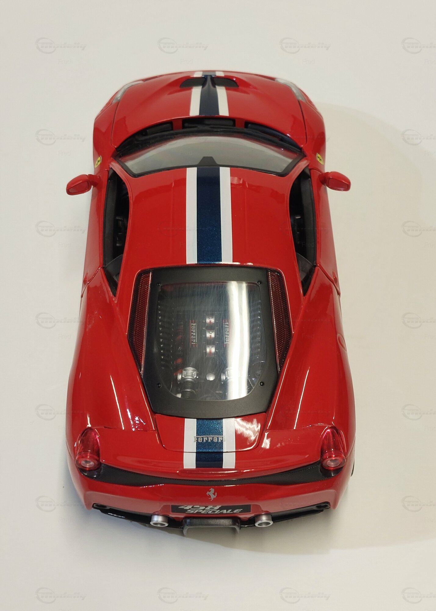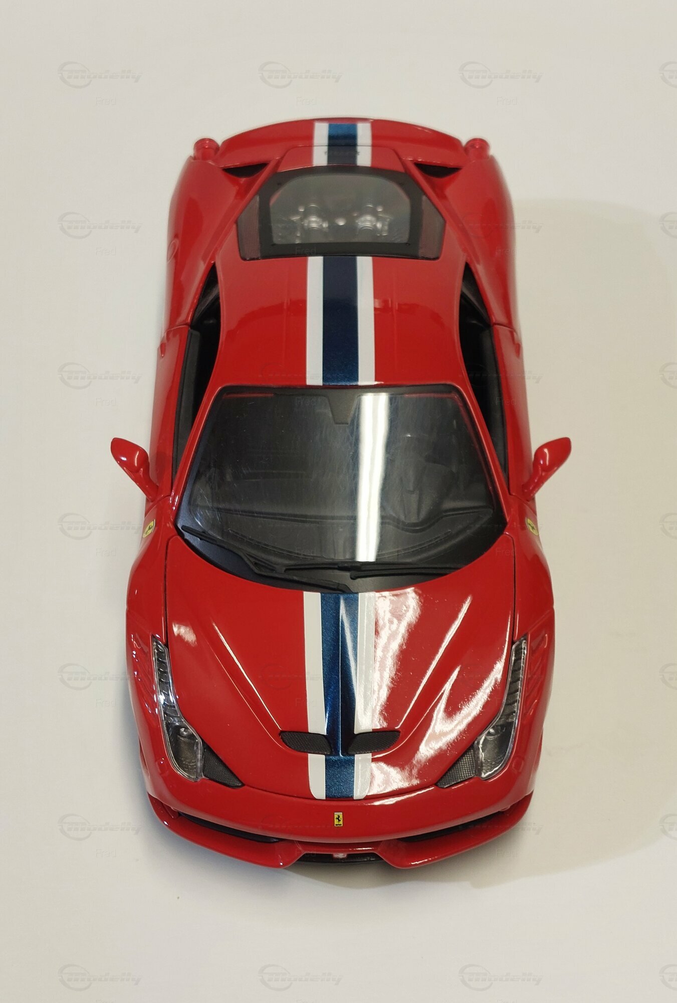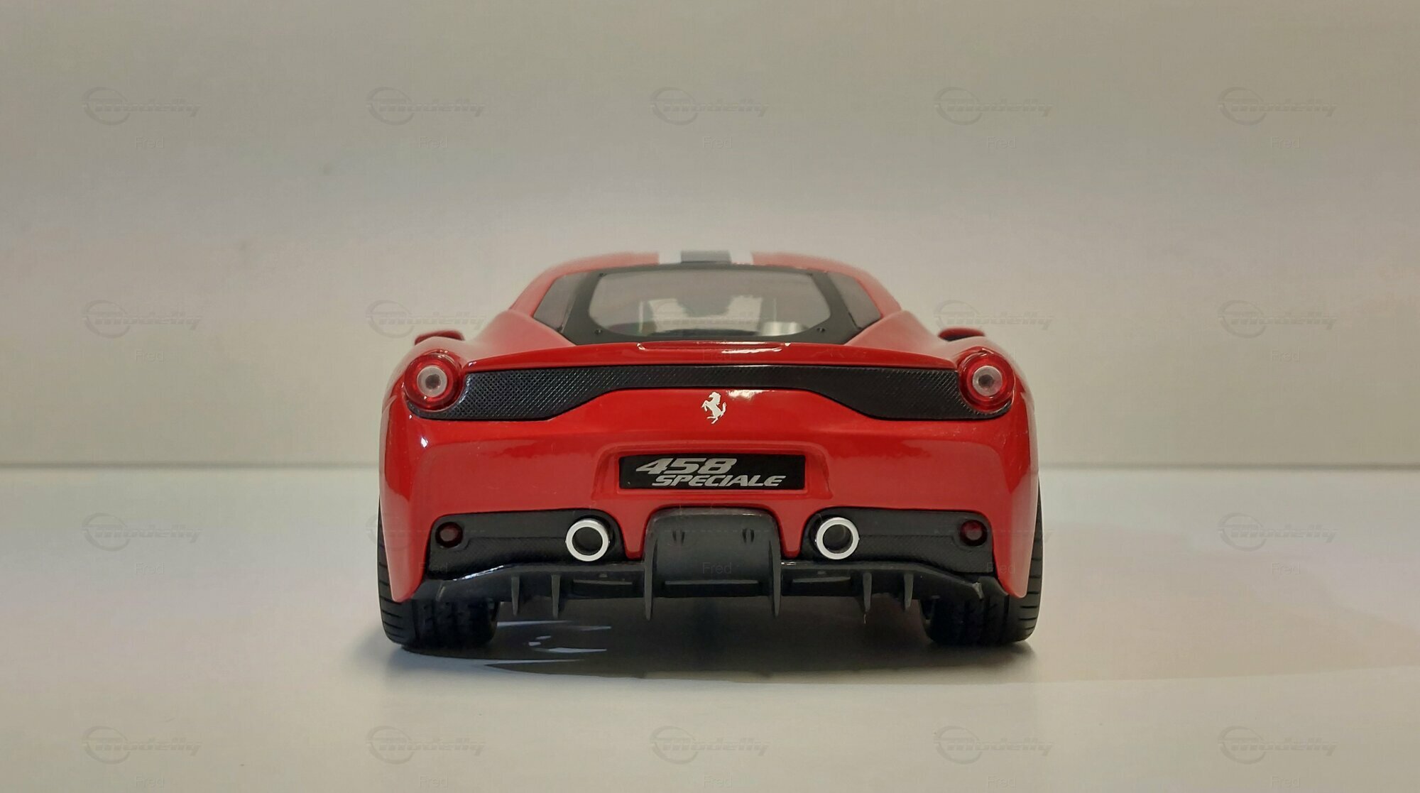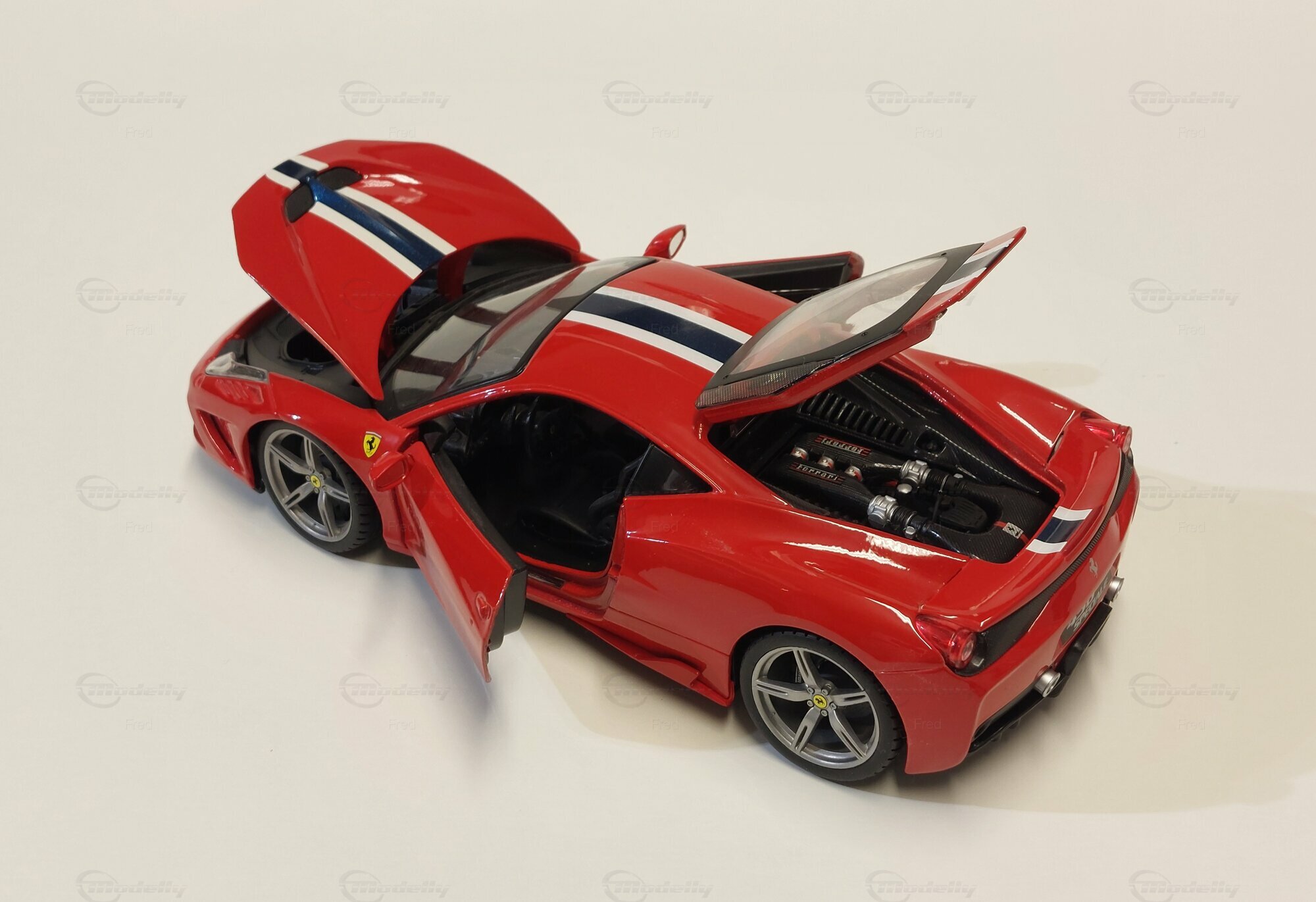 Das Modell basiert auf dem 458 Italia, zeichnet sich jedoch durch eine betont sportliche Ausstattung aus. Äußerlich wurden die Front- und Heckschürzen verändert, an den Flanken befinden sich kleine Luftleitbleche vor den hinteren Radausschnitten. Der Innenraum kommt ohne Teppiche aus und weist viel Carbon-Material und Alcantara auf. Während das Leergewicht auf 1405 kg reduziert werden konnte, wurde die Motorleistung bei einem unveränderten Hubraum von 4,5 l auf 445 kW (605 PS) gesteigert. Als weltweit erstes Fahrzeug verfügt der 458 Speciale über eine Driftwinkelsteuerung. Das Side Slip Angle Control System (SSC) erkennt durch Auswerten von (unter anderem) Lenk- und Driftwinkel sowie Fahrpedalstellung, ob der Fahrer am Kurvenausgang übersteuernd herausbeschleunigen möchte und regelt diesen Fahrzustand trotz aktiviertem ESP ein.