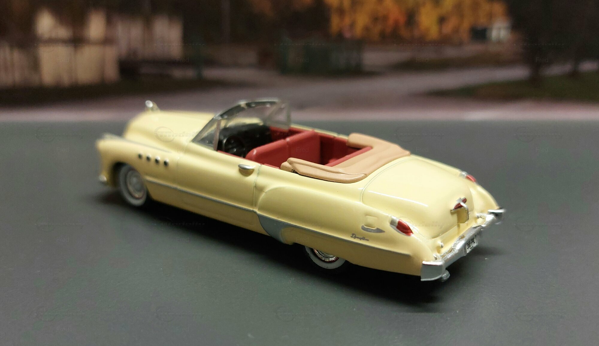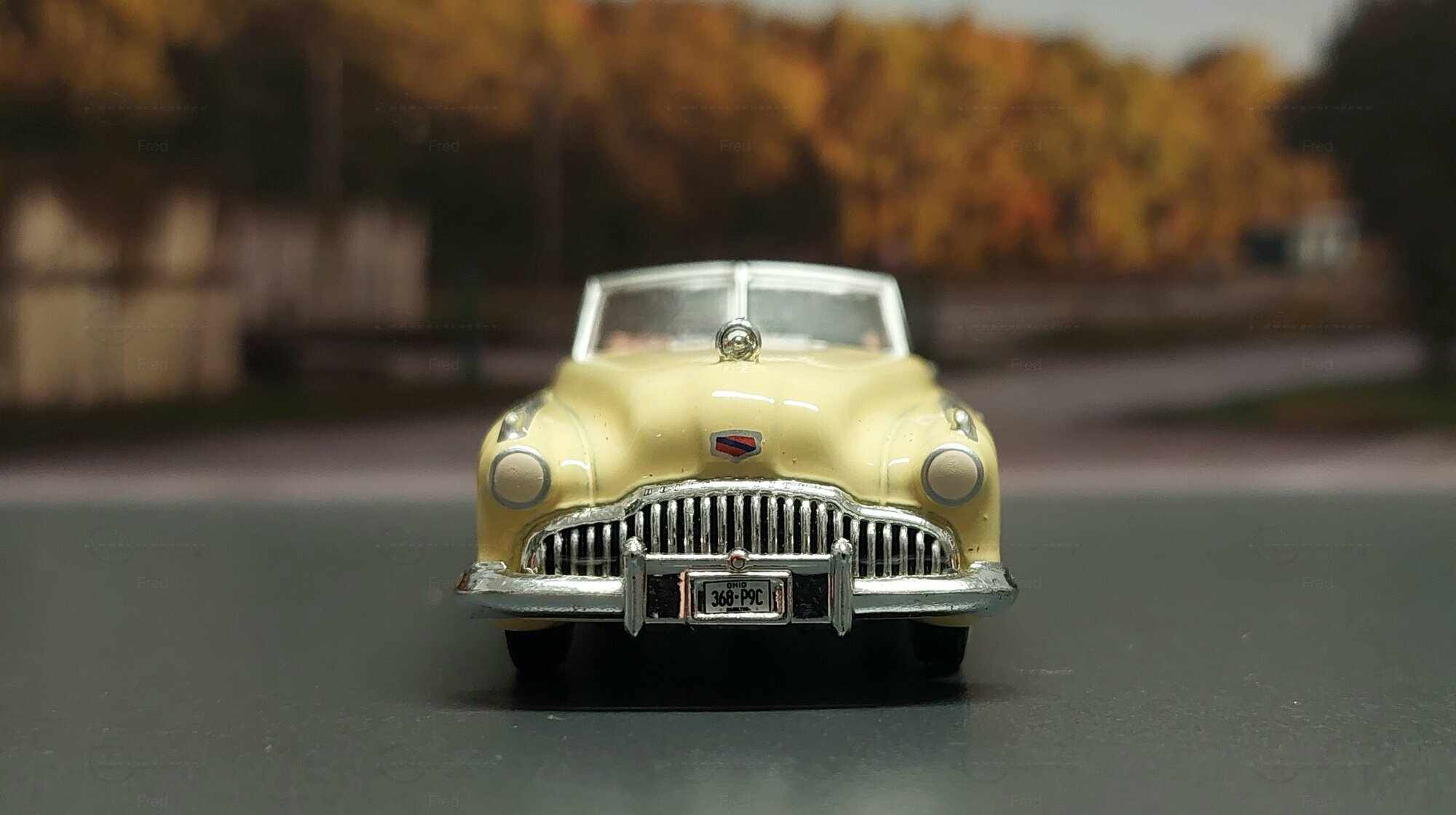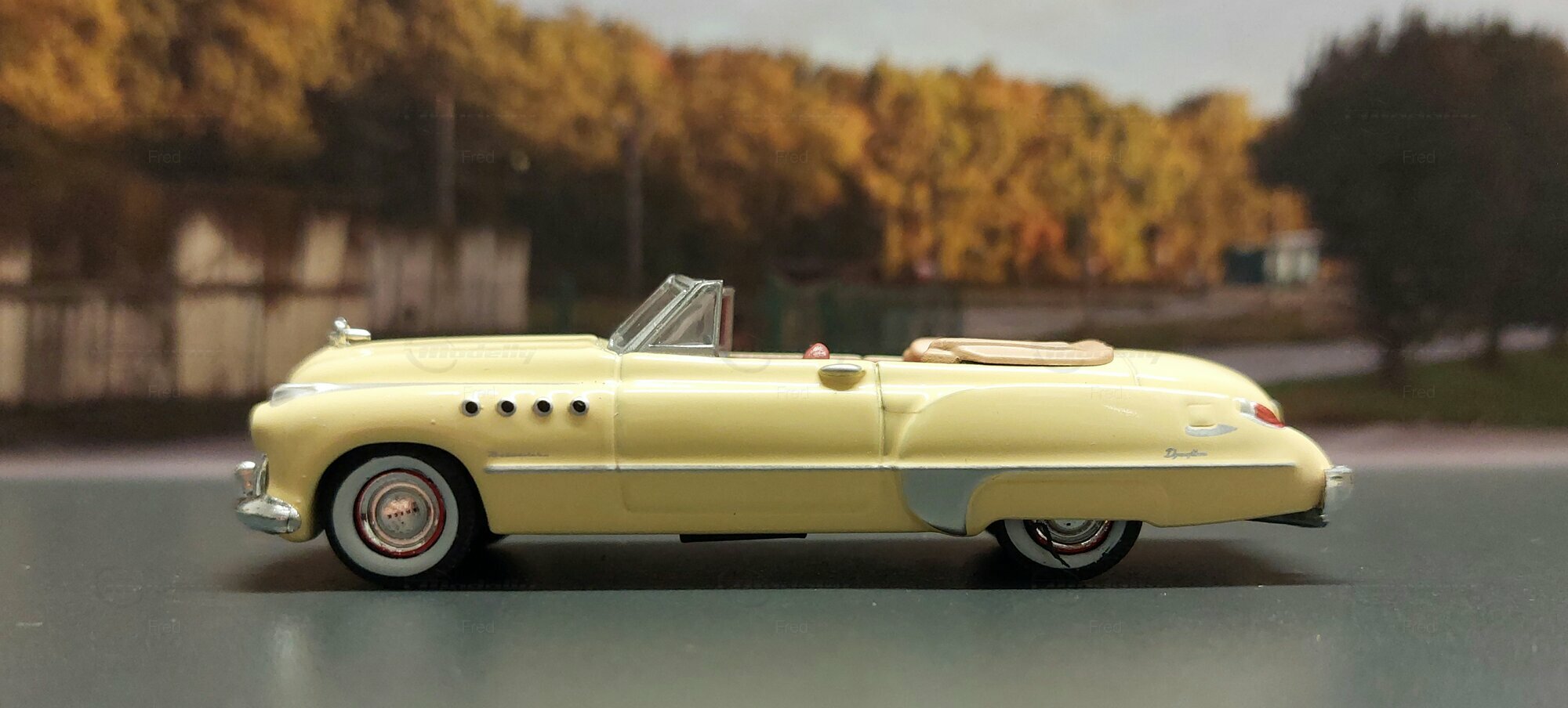 Der echte Buick Roadmaster aus der Generation 1949-1953 hatte einige interessante technische Merkmale und Design-Elemente, die ihn zu einem herausragenden Beispiel amerikanischen Automobilbaus machten. Bemerkenswert sind die "Ventiports" an den Seiten des Fahrzeugs, kleine Lufteinlässe, die nicht nur ein stilistisches Merkmal waren, sondern auch die damals fortschrittliche Aerodynamik des Fahrzeugs betonten. Unter der Leitung der Designer Ned Nickles und Ingenieure wie Charlie Chayne entstand ein Fahrzeug, das durch seinen imposanten Kühlergrill und seine fließenden Linien auffällt. Der Buick Roadmaster war bekannt für seinen 5.2-Liter V8-Motor, der beachtliche Leistung und ein komfortables Fahrerlebnis bot. Sein Vorgänger war der Buick Super, auch ein wahres Prachtstück seiner Zeit, jedoch nicht ganz so luxuriös wie der Roadmaster.