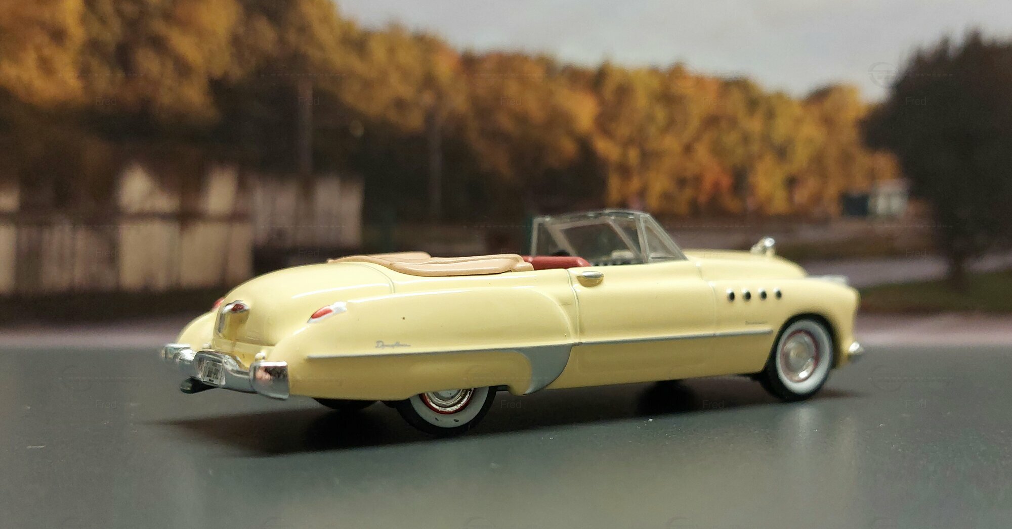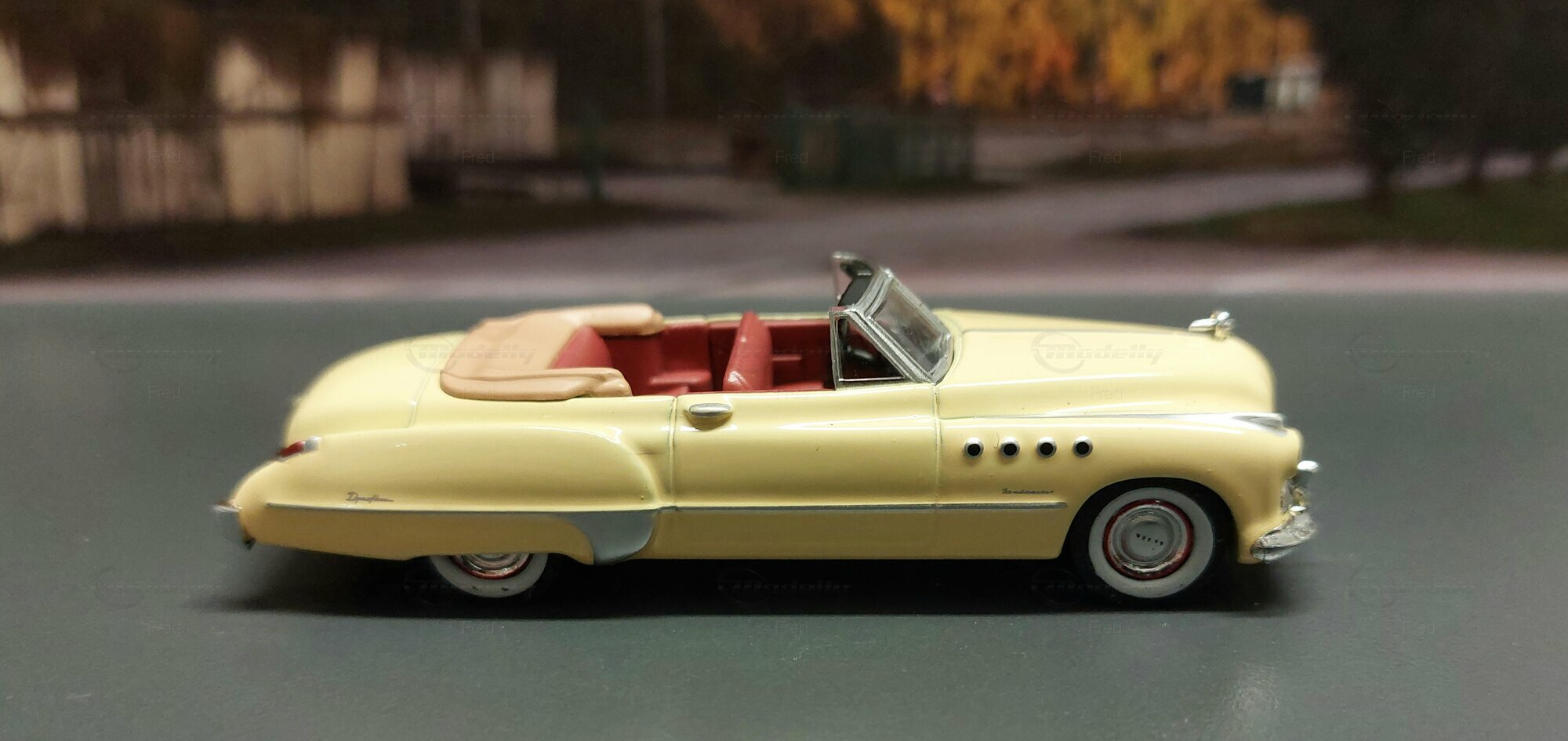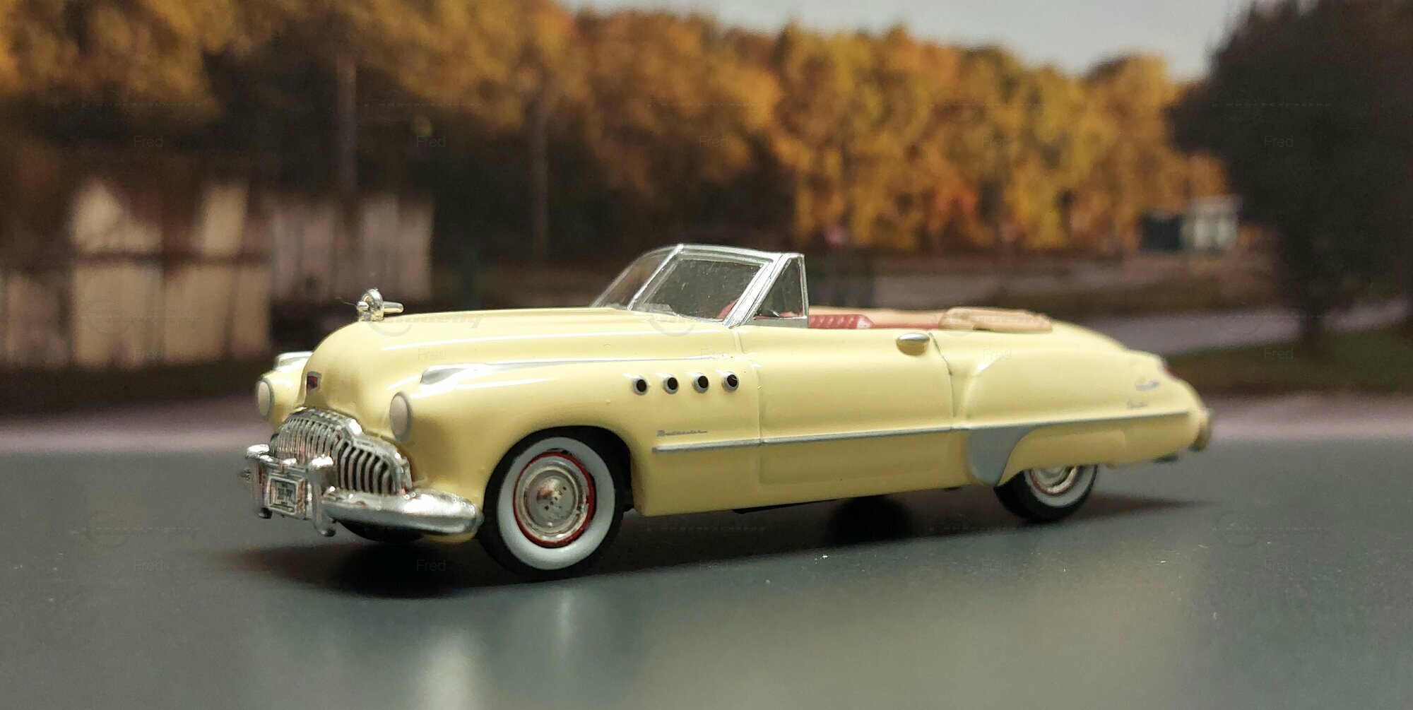 Der echte Buick Roadmaster aus der Generation 1949-1953 hatte einige interessante technische Merkmale und Design-Elemente, die ihn zu einem herausragenden Beispiel amerikanischen Automobilbaus machten. Bemerkenswert sind die "Ventiports" an den Seiten des Fahrzeugs, kleine Lufteinlässe, die nicht nur ein stilistisches Merkmal waren, sondern auch die damals fortschrittliche Aerodynamik des Fahrzeugs betonten. Unter der Leitung der Designer Ned Nickles und Ingenieure wie Charlie Chayne entstand ein Fahrzeug, das durch seinen imposanten Kühlergrill und seine fließenden Linien auffällt. Der Buick Roadmaster war bekannt für seinen 5.2-Liter V8-Motor, der beachtliche Leistung und ein komfortables Fahrerlebnis bot. Sein Vorgänger war der Buick Super, auch ein wahres Prachtstück seiner Zeit, jedoch nicht ganz so luxuriös wie der Roadmaster.