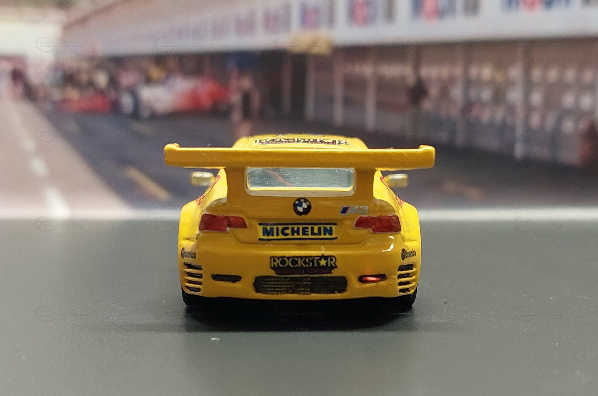Das hier gezeigte Modellauto im 1:64 Maßstab wurde von Hot Wheels produziert und ist ein exzellentes Beispiel für detailgetreue Nachbildungen. Das Modell besteht aus Diecast-Material und weist eine hohe Verarbeitungsqualität auf. Es handelt sich um eine modifizierte Version, die nicht das ursprünglich von Hot Wheels produzierte Modell darstellt und sich von diesem unterscheidet. Sichtbar sind unter anderem die Bedruckungen und spezielle Sponsoren-Logos wie Michelin, Shell und Rockstar, die das Modell besonders und einzigartig machen.