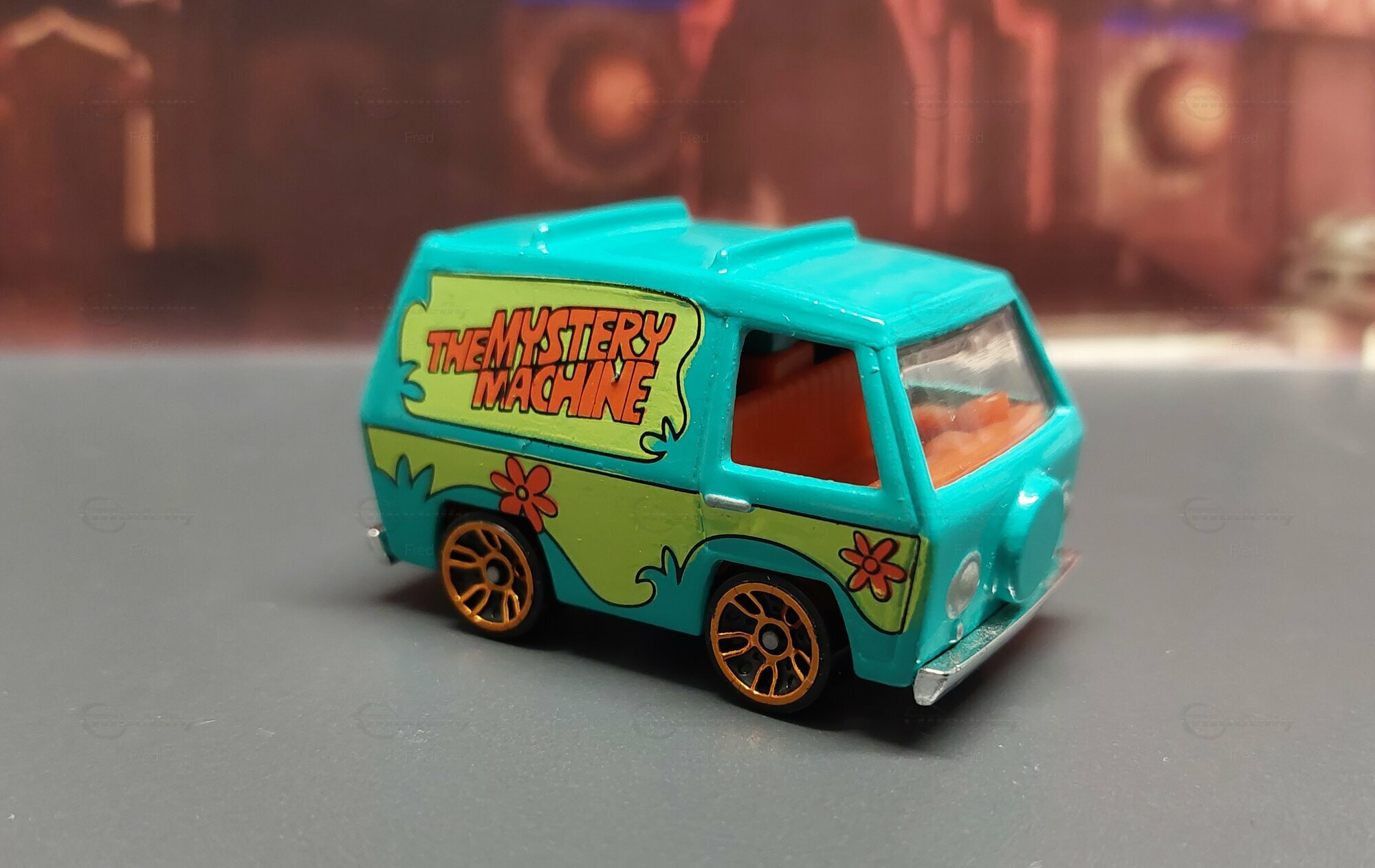 Die Modellierung ist präzise und die Proportionen sind den Originalabmessungen sehr genau nachempfunden. Betrachtet man die Seitenansicht, fällt sofort das berühmte „THE MYSTERY MACHINE“-Emblem sowie die blumigen Verzierungen ins Auge, die die Serie so berühmt gemacht haben. Dieses 1:64-Modell von Hot Wheels zeigt beispielhaft, wie ein kleines Modell so viele nostalgische Details enthalten kann. Die Liebe zum Detail macht dieses Diecast-Modell zu einem wertvollen Sammlerstück für Enthusiasten und Fans der Scooby-Doo Serie.